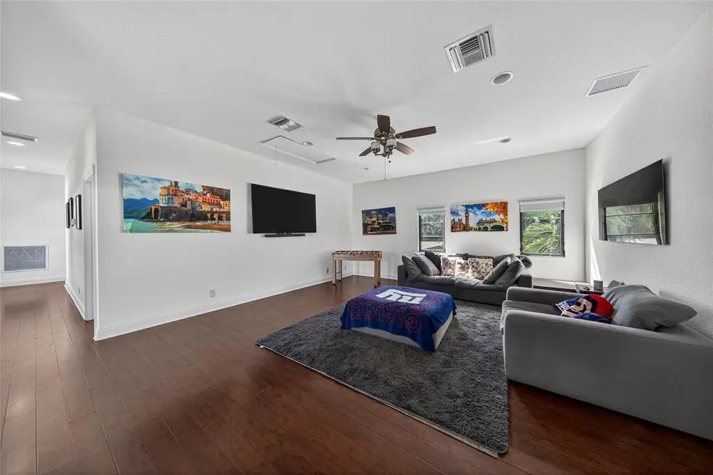 Spectacular renovated 6BD/6BA estate on an oversized lot just minutes from the beach! This modern home features a bright, open floor plan with an updated, first-floor primary suite, office, and junior suite on the main level plus three en-suite bedrooms, a loft, and a huge screened terrace upstairs. The bedrooms offer generous space, custom closets, and beautifully updated bathrooms. Impact windows fill the home with natural light throughout. The brand-new kitchen boasts white shaker cabinets, quartz counters, a center island with wine storage, a farmhouse sink, stainless steel appliances, and a wraparound breakfast bar. Enjoy entertaining in your private backyard oasis with a covered living area, tropical pool, and fully fenced yard — perfect for the South Florida lifestyle!