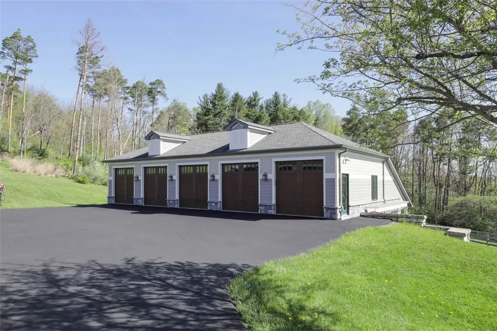 Ligonier hunt country estate for the discerning buyer! Situated on 3 parcels of 44 +/- AC is a luxurious main residence with separate 2 BR guest house, 5 bay detached garage for the car enthusiast, equipment garage and barn facilities ready for 5 stalls and a tack room. A small frame church sits on the corner of the property and is not in use at this time. Mature trees and a large pond enhance the natural beauty of the property and the in-ground pool is a refreshing oasis from the hustle and bustle of life. All of this is approached by a gated private lane with the main residence looking out across the landscaping east to sweeping views of Laurel Mountain. The generously proportioned chef's kitchen includes a sunny breakfast nook, large island, wet bar area and plenty of storage with full height cabinets. There are two owner suites, both with private baths and dressing rooms, while two family rooms and a second floor theatre provide additional spots for gathering and relaxing.