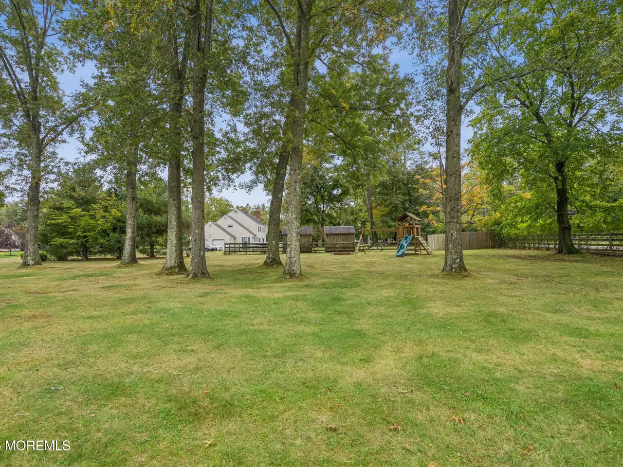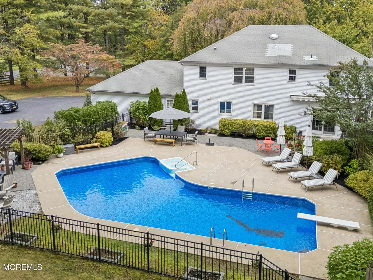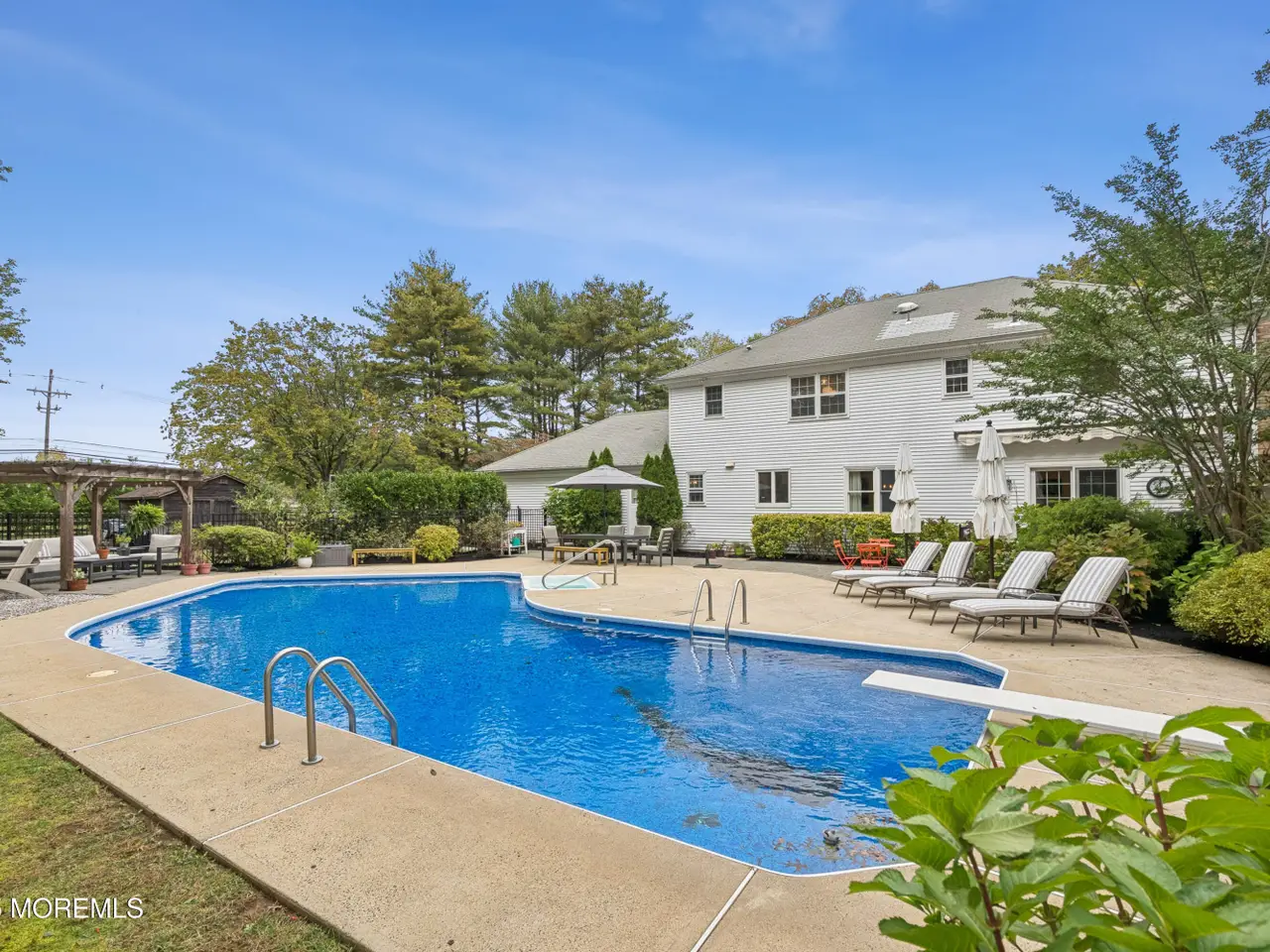 Welcome to this 4-bedroom, 2.5-bath Center Hall Colonial situated on over an acre of park-like property. This home offers a spacious living room, formal dining room, and an eat-in kitchen that opens to a cozy family room with a fireplace perfect for gatherings. The primary suite features a newer full bathroom with a soaking tub, shower stall, and a walk-in closet/dressing room. Enjoy the full finished basement, ideal for recreation or home office space. Step outside to your private backyard oasis with an in-ground heated saltwater pool. Additional highlights include a 2-car garage, ample storage, and a prime location near schools, transportation, major routes, shopping, dining, parks, and the Jersey Shore beaches. A must-see!