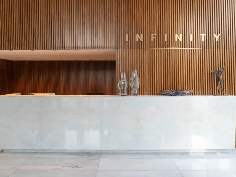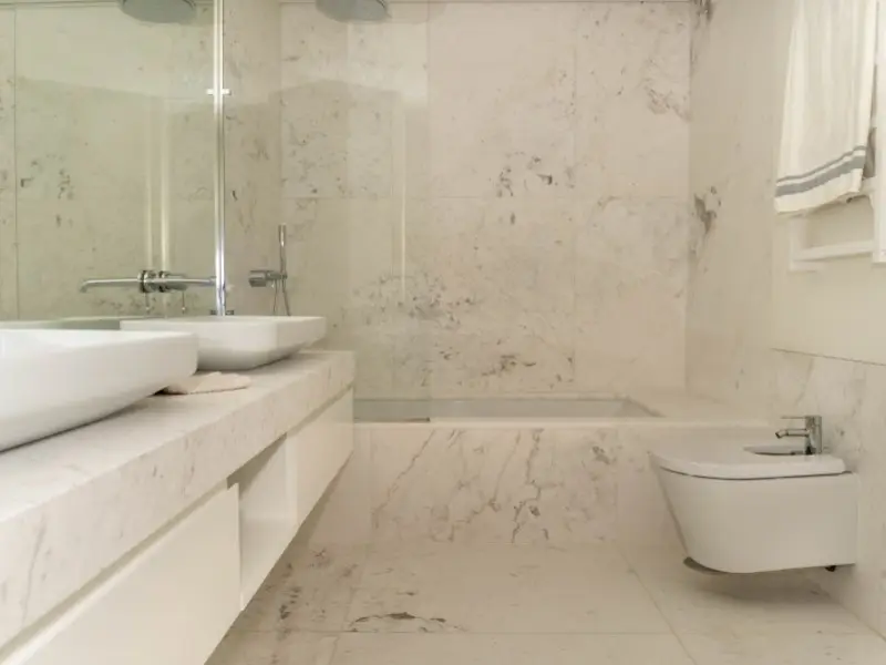 Cozinha gourmet com pavimento em mármore
