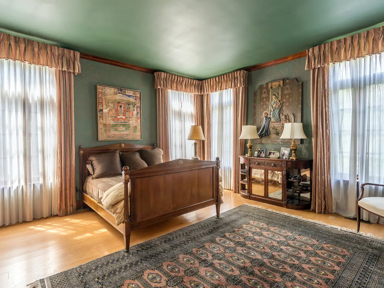 Stone terrace with western views Luxury master suite with built-ins