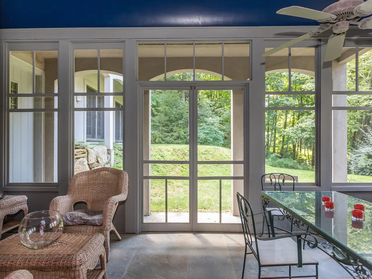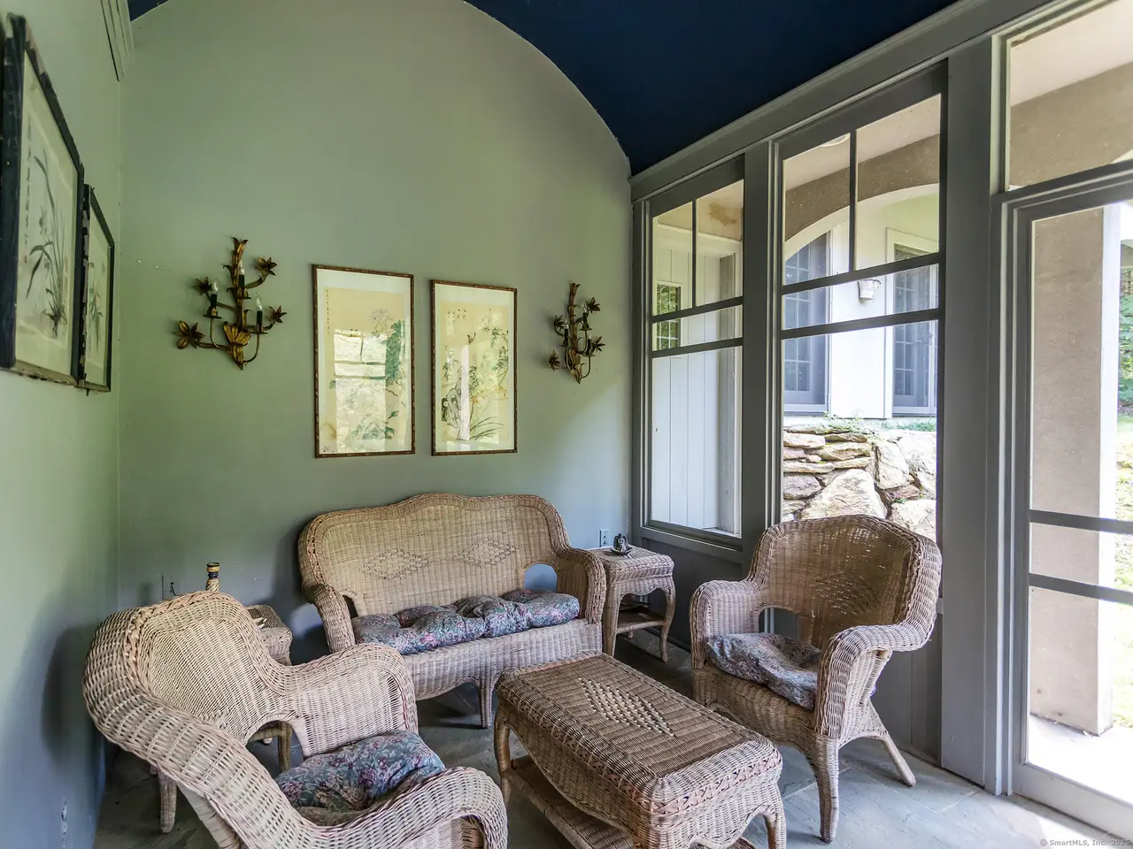 Perfect country home impressively set in private location abutting White Memorial land trust and vineyard. Designed with impeccable taste and style and built of the highest quality and standards. In keeping with its romantic European style, the home boasts lofty ceilings, marble floors, french doors, limestone fireplaces and mahogany millwork throughout. Perfect for entertaining as dining and living spaces open onto stone terrace with western views and overlooking pond and grounds. Established gardens, ivy clad walls and old world stone work. Chef's kitchen with room for eat-in country table. Stainless steel countertops and professional grade appliances. Master suite with beautifully crafted built-ins. Well appointed master bath with marble throughout. Major feature includes a newly built 1 bedroom attached in-law apartment that can be rented. One owner, very well maintained and exactly one mile from the Litchfield town Green. Perfect for full time OR weekends. Co-agent related to owner.