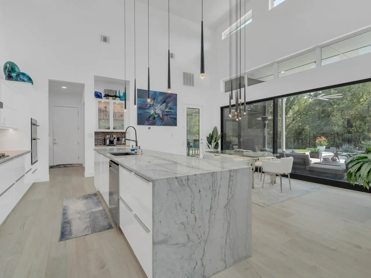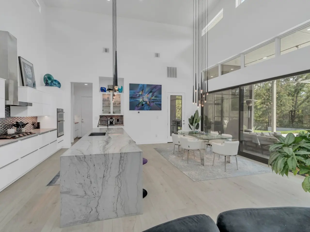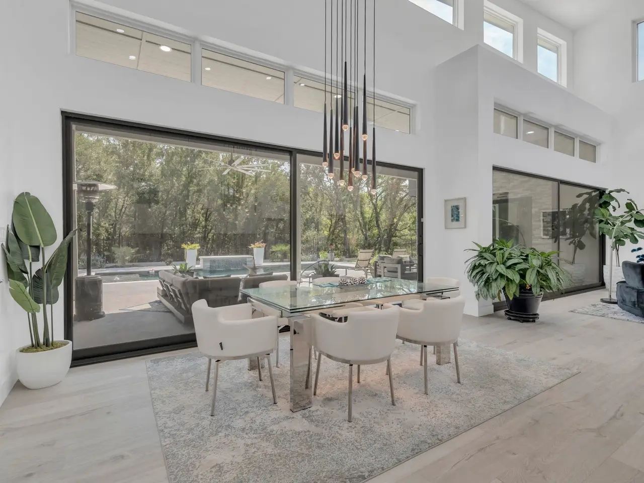 CONTEMPORARY LIVING AT ITS FINEST. Quietly tucked away on a 1+ acre wooded corner lot near the lake in Sunrise Bay, you will find all of the boxes checked. Home boasts superior finishes and detail at every turn. Inside, youll find spacious living areas, generously sized bedrooms, and flexible spaces ideal for entertaining or relaxing. This show-stopping kitchen features a high-end design. Custom cabinetry, whisper close cabinet doors and drawers. designer pendant lighting adds warmth and sophistication. The space is anchored by an oversized island with a gleaming waterfall style quartzite top, abundant prep space, casual seating, a natural gathering spot for family and friends. Sleek SS appliances, elegant tile backsplash, and thoughtfully chosen finishes complete the look, creating a kitchen that is as stylish as it is practical. Unbelievable views from the homes interior to your backyard wooded oasis including pool with waterfall, extended cvrd patio with firepit, adjacent Outdoor Screened Dining area with ceiling fan and commercial heating system for cooler months. Special features include Private Owners Suite, Luxury bath with ovrszd dressing area, Spa shower, and large walk-in custom closet system. Beautifully centered fireplace feature brings the Open Family Room to the center of attention. Several sets of Siding doors and Transom windows flood home with light. Majestic Soaring ceilings, Commercial grade windows-doors, DC current HVAC system, FULL FOAM INSULATION. TPO ROOF, Enjoy the vibrant Lakefront District, where you can enjoy sandy beaches & a seasonal water park, live music at amphitheater, boat rentals, kayaking, paddleboarding and Family-friendly events, food trucks, playgrounds. Located just 9 miles from the PGA World Headquarters in Frisco and 12 miles from the upcoming Universal Kids Theme Park. Tranquil lakeside neighborhood is a hidden gem in Little Elm, offering peaceful surroundings while being close to everything N. Texas has to offer.