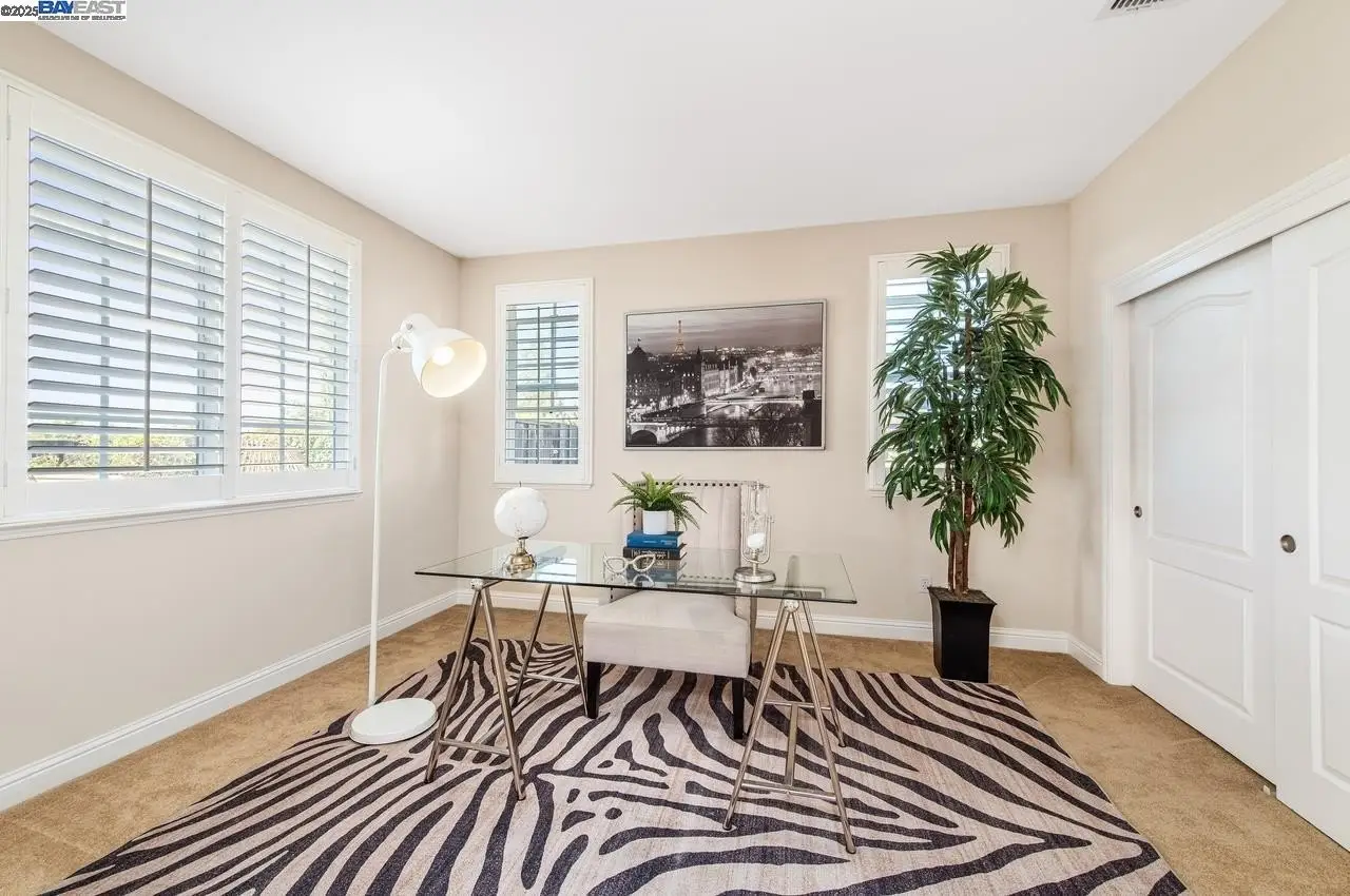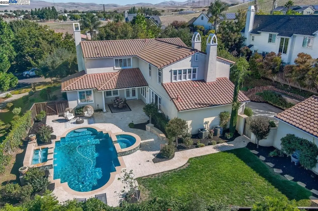 Beautiful 4 bedroom, 4.5 bath, 2 story, 3 car garage, approx. 3,770 sqft, majestically sitting on approximately an 18,000 sqft lot and on an elevated corner lot with no side neighbors, One full bedroom & bath on the first level, panoramic views of greenbelt/park, formal living room w/fireplace, formal dining room w/tile flooring and crown molding, recessed lighting, built-in speakers, crown molding and 14 x 24 inch travertine tile flooring throughout the house, beautiful gourmet eat-in kitchen with island and breakfast bar, ample cabinets for storage, granite counter tops & tile back splash, stainless steel appliances, Built-in Kitchen Aid refrigerator, 6 burner stainless steel gas cooktop, butler pantry, walking closet, crown molding, recessed lighting, family room with gas fireplace, nook for entertainment center and surround sound, large primary bedroom suite with sitting area, fireplace, walk-in closet, primary bathroom with sunken tub, tile counter tops and stall shower and plantation shutters, each bathroom has its own bathroom, upstairs laundry room, built-in bookshelves. resort like backyard, pool/spa & patio with stone decking. Close to wineries, parks, shopping, restaurants, schools, Sandia and Lawrence Livermore Labs, ACE train, Lake Del Valle & downtown Livermore!