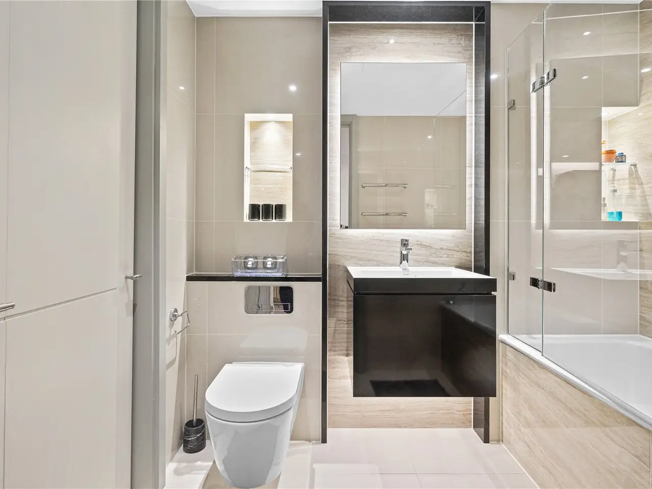 Smart one bedroom apartment in a sought after development Situated on the eight floor of Westmark Tower, this one bedroom flat spreads over 548sqft and presents an excellent and efficient layout. The living and dining room is very spacious and opens into a private balcony. The kitchen is fully fitted with all modern appliances and there is good storage. The principal bedroom offers built in storage cabinets. The bathroom is large and leads to a utility area. The apartment further benefits from a storage room. The entire flat is well lit and has a light outlook. Comfort heating and cooling is thermostatically controlled via fancoil units in living rooms and bedrooms. The flat is equipped with a video entry system viewed by individual apartment handset/screen. Westmark is the tallest of the buildings at West End Gate development and provides nice views towards the City, Regent’s Park and Hyde Park. The Tower offers a sense of arrival created by a sweeping entrance with water features at ground level that transitions into a grand lobby with secluded seating areas providing residents with pockets of privacy. At the base of Westmark is the 24-hour concierge, residents’ private gym and pool, cinema screening room and a business lounge. The tower further offers a dining room for residents’ use for hosting and a small kitchenette for such use. Rising above the vibrant Edgware Road, Westmark Tower is part of the prestigious West End Gate development by Berkeley Group. Residents enjoy easy access to Hyde Park, Marylebone and Little Venice, with boutique shopping, Middle Eastern cafés and world-class dining all within walking distance. Paddington Station (Heathrow Express) and Edgware Road Underground ensure superb connectivity. An elegant base in the heart of Central London’s regeneration corridor. PRICE: £750,000 SIZE : 548sqft BEDROOMS: 1 BATHROOMS: 1 SERVICE CHARGE: £3864 per annum GROUND RENT: £600 per annum PARKING: Nil LEASE TENURE: Leasehold, 993 COUNCIL TAX BAND: E LOCAL AUTHORITY: Westminster EPC: B
