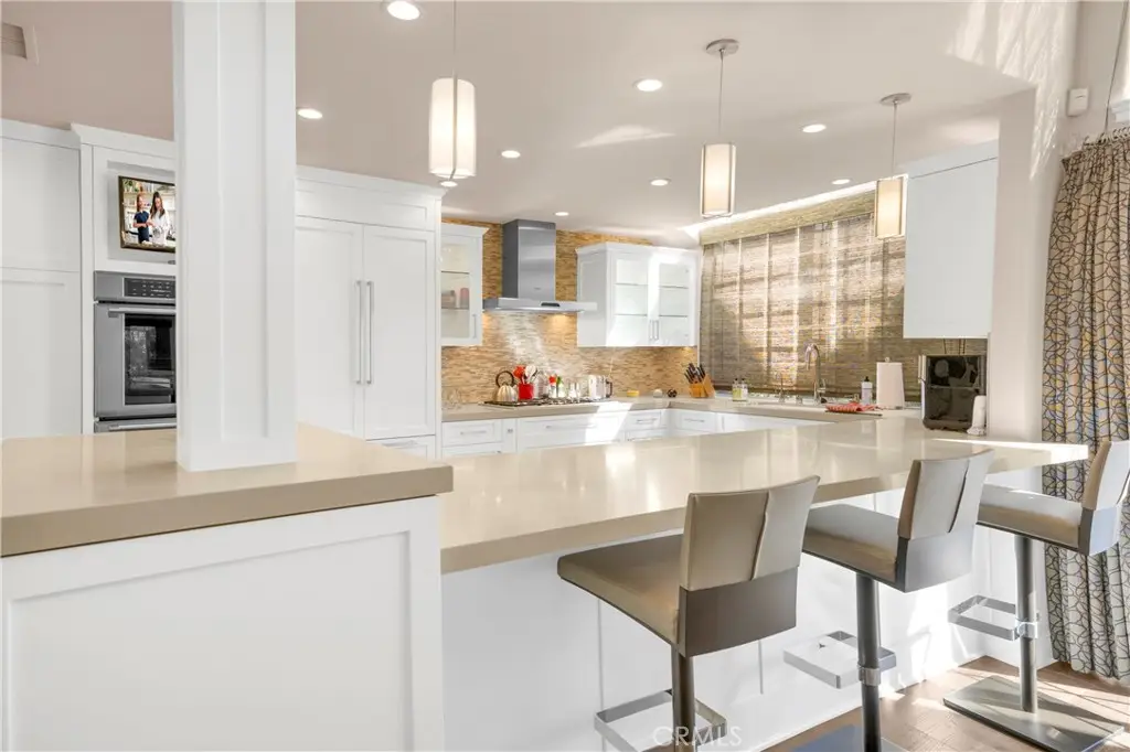 Live the Southern California lifestyle in this amazing home close to everything that costal living has to offer. This upgraded townhome is conveniently located in the coveted Bixby Village community with proximity to freeways, the beach, restaurants, shopping and more. As you enter the home the open concept first floor you will see a chefs kitchen, dining room area with side patio, bathroom, living room with large patio, fire place and built-in bar and Landry room and garage access for your convenience. The amazing redesigned kitchen features a complete Thermador appliance package including a Thermador double oven, a built-in refrigerator and dishwasher with paneling to match the cabinets, a 5 burner cook top, a built-in microwave and Wine fridge. The kitchen also has a large peninsula island with under cabinet led lighting that is open to the rest of the first floor dining and living room area. The dining area has expansive 2 story ceilings showcased with a dramatic lighting feature. Off the dining area is a separate side patio. The Living room has a built-in bar, Gas Fireplace, access to an expansive outdoor patio and lots of natural light while still providing maximum privacy. Stainless steel and glass railings, beautiful moldings and lighting features accent the stairs leading up from the center of the first floor to the 2nd floor as well as separate the dining area and the step-down living room allowing for a truly open layout. The first floor has custom window coverings and features luxury vinyl plank flooring throughout. The complete second floor has vaulted ceilings and recessed lights. The oversized primary bedroom has custom designed closest, plantation shutters, a fireplace, private balcony and a completely remodeled on suite bathroom. The bathroom has a double sink, oversized walk in shower with double shower heads, private water closet with built-in cabinets, vaulted ceilings and skylights. Down the hall are two additional bedrooms, a hall closest for extra storage, a whole-house vacuum system and a large beautiful bathroom. The first bedroom has a built in desk, ample closet space and lots of natural light. It could also be used as an office. The other bedroom is very large and has lots of closet space, windows on 2 sides and vaulted ceilings. This home truly has too many features to list. It has been remodeled with no expense spared. This is must see and is priced to sell.