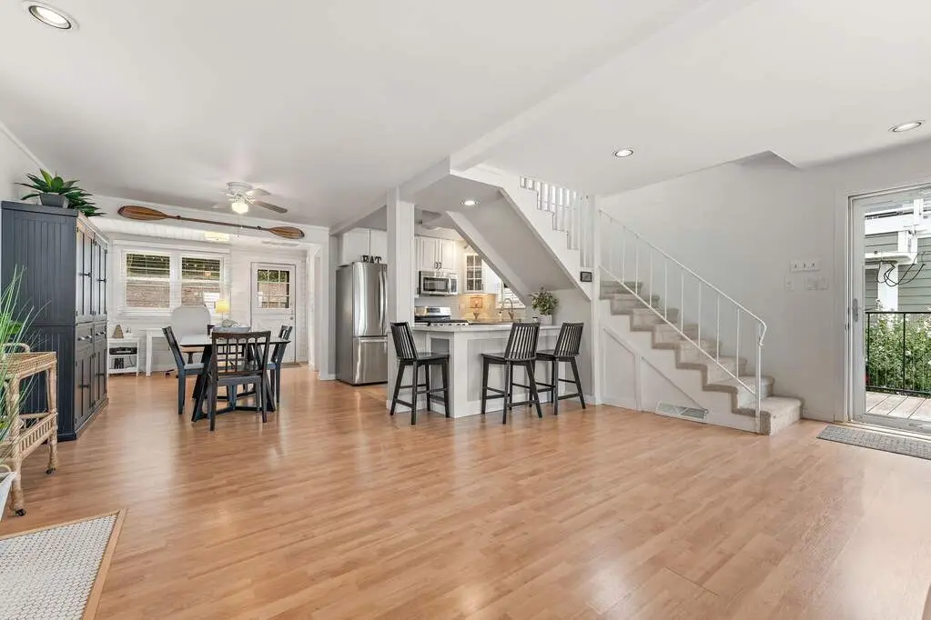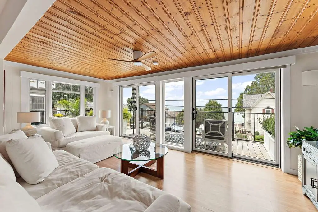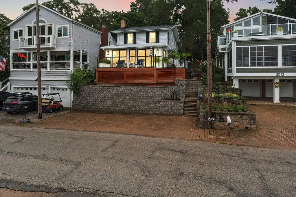 Welcome to lakeside living at Stop 20 on Lake Shore Drive, where every day feels like a weekend getaway! Perched on the hillside with sweeping views of Lake Michigan, this cottage-style retreat is designed for both comfort and charm.Inside, you'll find shiplap-accented walls in the home office, an open-concept layout connecting the Living, Dining, and Kitchen spaces, and LG stainless steel appliance package with a Breakfast Bar perfect for morning coffee before heading off to the beach. The Living Area steals the show with its brick fireplace w/ electric insert, beautiful wood mantel, and double sliding glass doors that lead you directly out to a newly renovated wraparound deck - your front-row seat to breathtaking sunsets and the refreshing lake breeze overlooking Lake Shore Drive.This home offers a main-level full bath and 4 cozy Bedrooms upstairs, and an additional 3/4 bath with a Washer/Dryer. Outside, a new front retaining wall provides rare off-street parking for up to four cars, while the tiered backyard patio creates multiple spaces for entertaining, relaxing, or giving pets their own play area. With a 40x150 lot and a rare hillside backyard, this home combines lakeside charm with everyday functionality. Whether it's sipping wine on the deck, entertaining under the stars, or simply enjoying life along Lake Michigan's shoreline - this is the beach cottage you've been waiting and dreaming of!