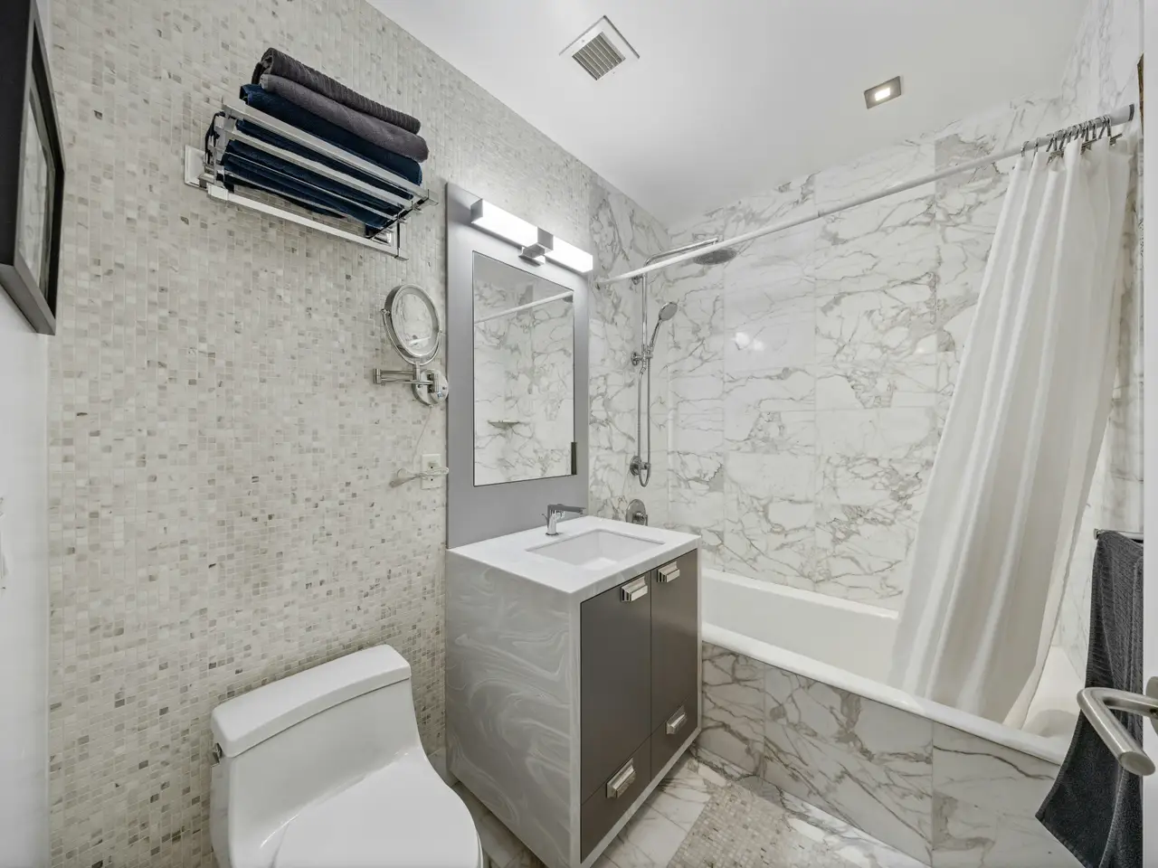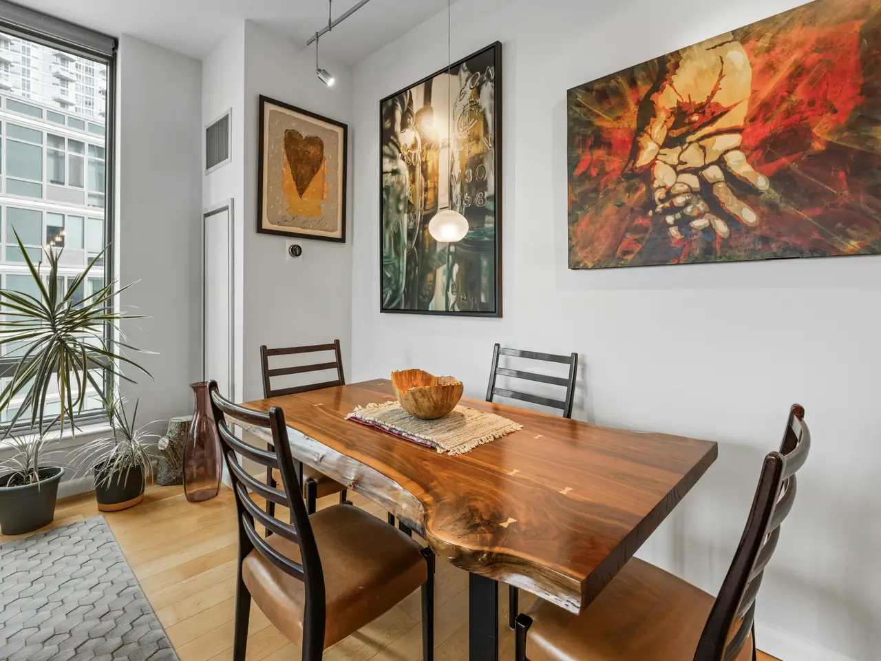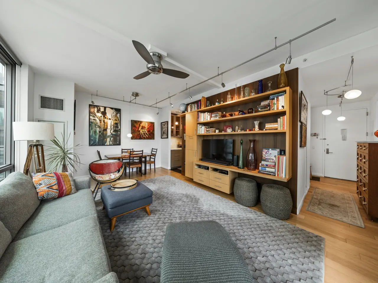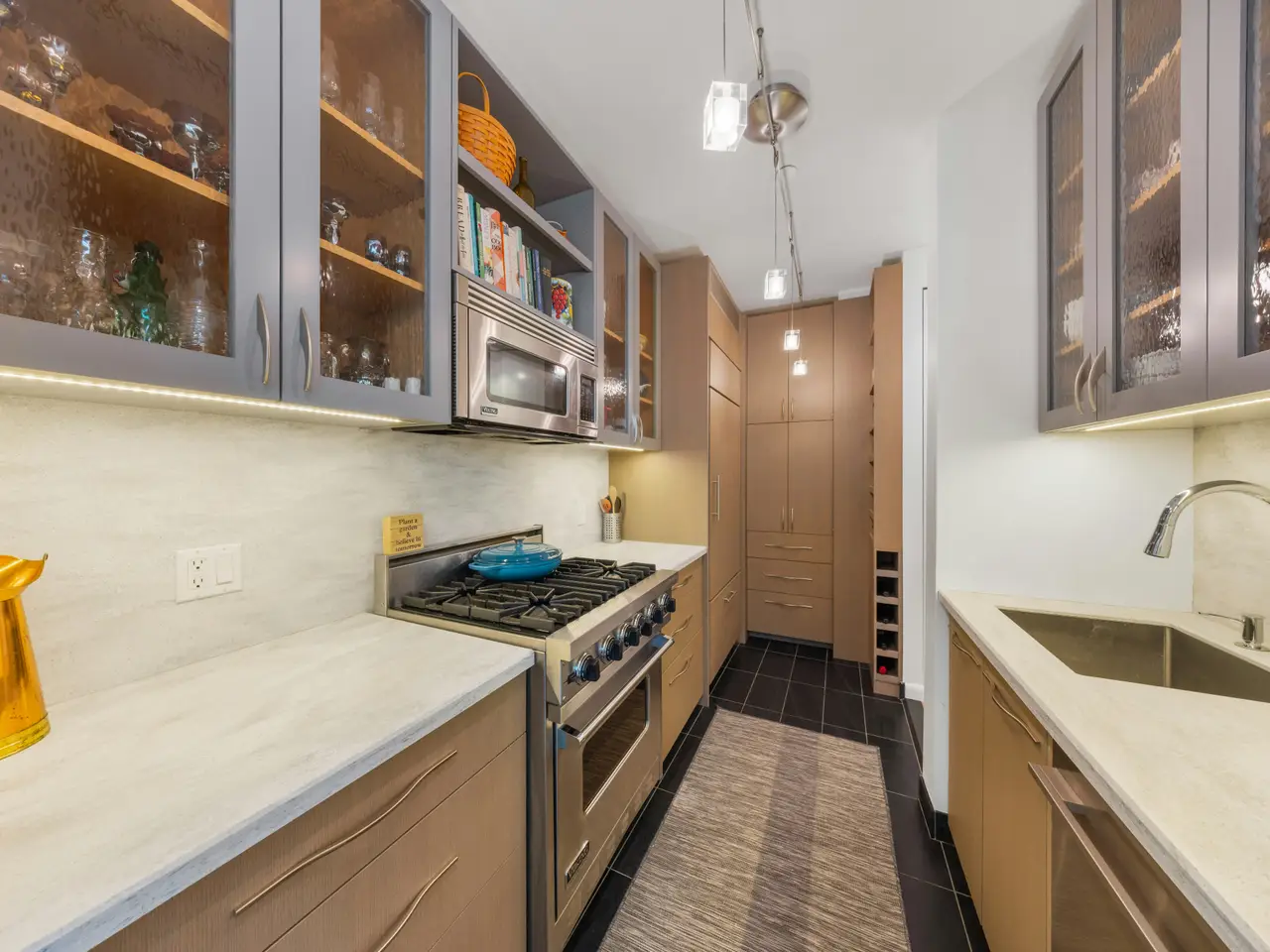 PLEASE NOTE: Sunday, 10/26, Open House from 3:30pm to 4:30pm is BY APPOINTMENT ONLY! Please be sure to schedule. This stunning 1BR/1BA at The View Condominium offers 777 sq.ft. of beautifully renovated space, plus a 66 sq.ft. west-facing balcony with spectacular sunsets over the East River and Manhattan skyline. Every inch of Unit 503 has been thoughtfully upgraded for style, comfort, and functionality, making it one of the most beautiful apartments in LIC on the market right now. The spacious layout features a king-sized bedroom (11'2" x 12'11"), a marble bathroom with soaking tub and shower, and a chef's kitchen equipped with a Viking range and microwave, Sub-Zero fridge, Fisher & Paykel dishwasher, and vented washer/dryer. What's more is the incredible work the owners did to create an even higher level of luxury. Extensive upgrades throughout include: -Custom Kitchen: Rift white oak and lacquer cabinets with art glass doors, built-in spice rack and wine storage, Corian countertops/backsplash, under-cabinet lighting, deep Kraus sink with Kohler fixtures, built-in water filter and soap dispenser, and added pantry space. - Bedroom: Closet space has been transformed! Luxurious custom built-in closet with built-in lighting, nine large drawers, full height shoe storage, pull down wardrobe racks, and more.Custom teak platform bed with six drawers, built-in nightstands, headboard with lighting, and blackout shades. -Living Room & Bath: A fold-down bar unit and liquor storage, as well as a custom floating shelf wall unit in fumed oak and rift white oak, and window treatments. Bathroom upgrades include a Corian and colored lacquer vanity with Kohler sink and faucet, and an extra deep medicine cabinet and mirror. -Throughout: Custom WAC lighting was added in the kitchen, living room, hallway, and foyer. Minka ceiling fans in both living room and bedroom. New HVAC units installed September 2025. The View is a full-service, 24/7 concierge building with one of LIC's best amenity packages: indoor pool, rooftop deck with grills, spa/sauna, fitness center with classes, golf simulator, screening room, game/music/content creating rooms, yoga/cycle/zen studios, and more. Unbeatable location just one stop to Grand Central via the 7 train or minutes by ferry to Manhattan and Brooklyn. Enjoy MoMA PS1, restaurants, shops, state-of-the-art modern library, and LIC's scenic waterfront park right outside your door. This is luxury living at its finest-welcome to The View!