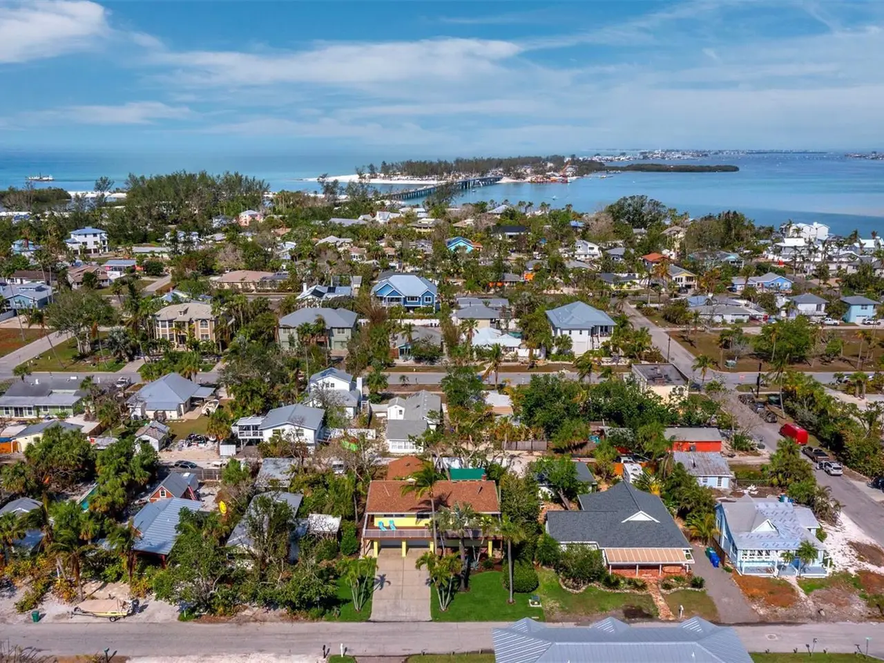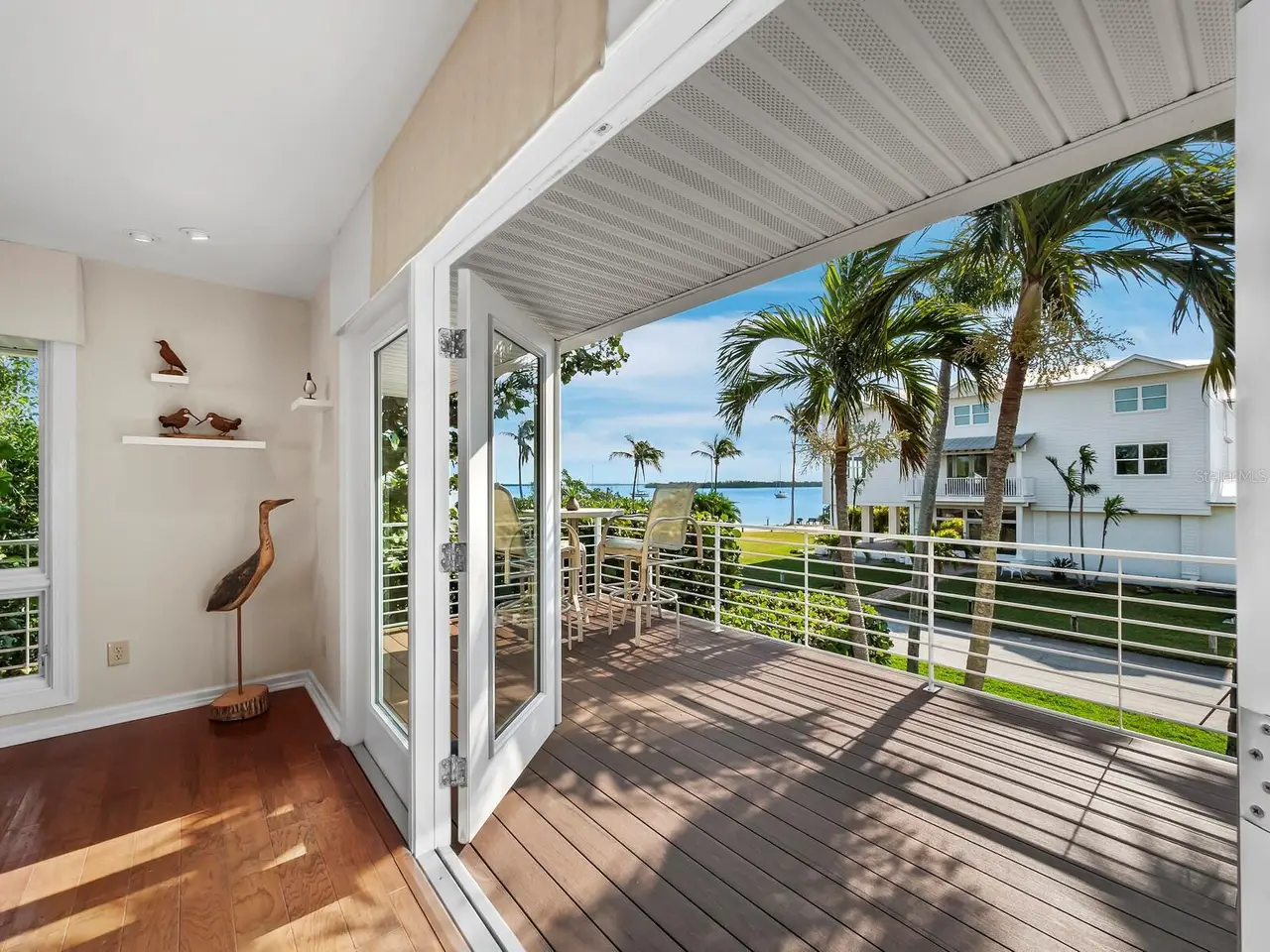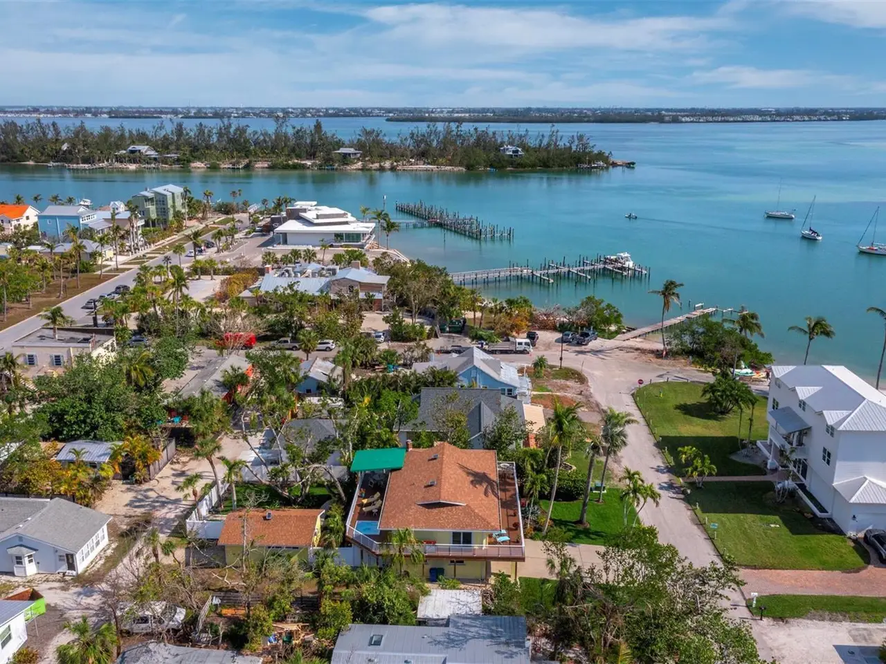 HUGH PRICE REDUCTION!!!Welcome to historic Longbeach Village, the first neighborhood, established on Longboat Key in 1885. As you enter The Village you will notice a variety of architectural home styles from the 1930s to the present day reflecting the diversity of the folks who live here. This wonderful home has stunning water views of Sarasota Bay, The Village harbor with its small public beach, the town dock, and the boat ramp all of which serve as community gathering spots to launch your boat, kayaks, canoes, and view sunrises, sunsets, dolphins, manatees, and aquatic birds. Pelicans love this placid harbor. Capture and immerse yourself in these magical surroundings from the spacious elevated second level front deck. The open concept great room with the three sets of French doors and seven windows is flooded with natural light. The kitchen offers bay views and will be the envy of amateur as well as gourmet cooks. Here you will enjoy a Sub-Zero refrigerator, two drawer Sub Zero freezer, Wolf 5 burner range, large Wolf oven, Miele steam oven, Tanzanian granite counter tops, custom German cabinets, large and deep storage drawers, workstation, and travertine floors. The great room includes an abundance of recessed lighting and a free-standing wood burning fireplace on a raised hearth as well as a dining area with a distinctive wood table, benches, and chairs. The primary bedroom has water views, access to the wrap around deck through sliding glass doors, and a large walk-in closet, en-suite bathroom with striking wood vanity and marble-like glass sink and dual rainfall shower heads. The powder room off the great room has high end fixtures. The guest bedroom has twin beds, a ceiling fan and rolling shades to keep the light out. The adjoining room could function as an office, art studio, or an extra bedroom. The bathroom has a shower stall and a walk-in closet. The oversized two car garage has hurricane reinforced doors, windows, a work bench, ample shelving throughout and peg boards for tools. A composite “wood� deck that is impervious to rot and insects, surrounds the entire house creating massive outdoor living space. The back deck, overlooking a beautifully landscaped yard, has a heated hot tub, a dining area which has a new awning, and a staircase leading to the backyard, guest house/studio, and new two-person barrel sauna in 2023. The guest house/studio was totally renovated by current owners in 2015 with new Hardi Board siding and insulation. It could also serve as a recreation room with pool table etc. All windows throughout the structures are hurricane compliant. Meticulous and impeccable pride in ownership can be found in every detail throughout! From this lovely home you can walk to the beach, five restaurants, and Whitney Beach shopping center. The Centre Shops with dining, boutiques, hair salon, UPS store are about three miles south. Bradenton Beach, with its multiple attractions, is less than 1 mile north. Famous St. Armands Circle is eleven miles south. The Villagers meet once a month from October to April for socializing and gathering updates on LBK activities. Offered furnished, completely outfitted, and move in ready excluding original artwork and some personal items.