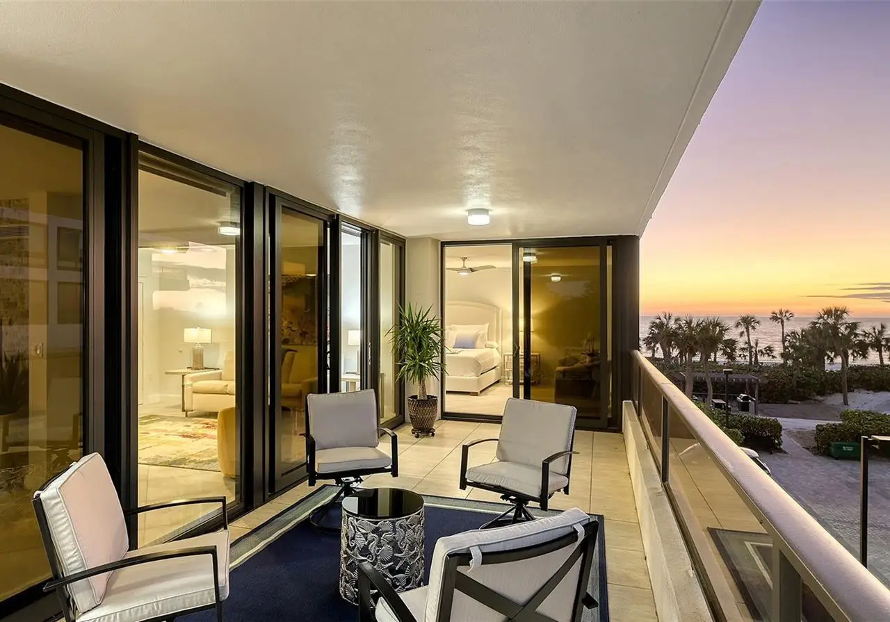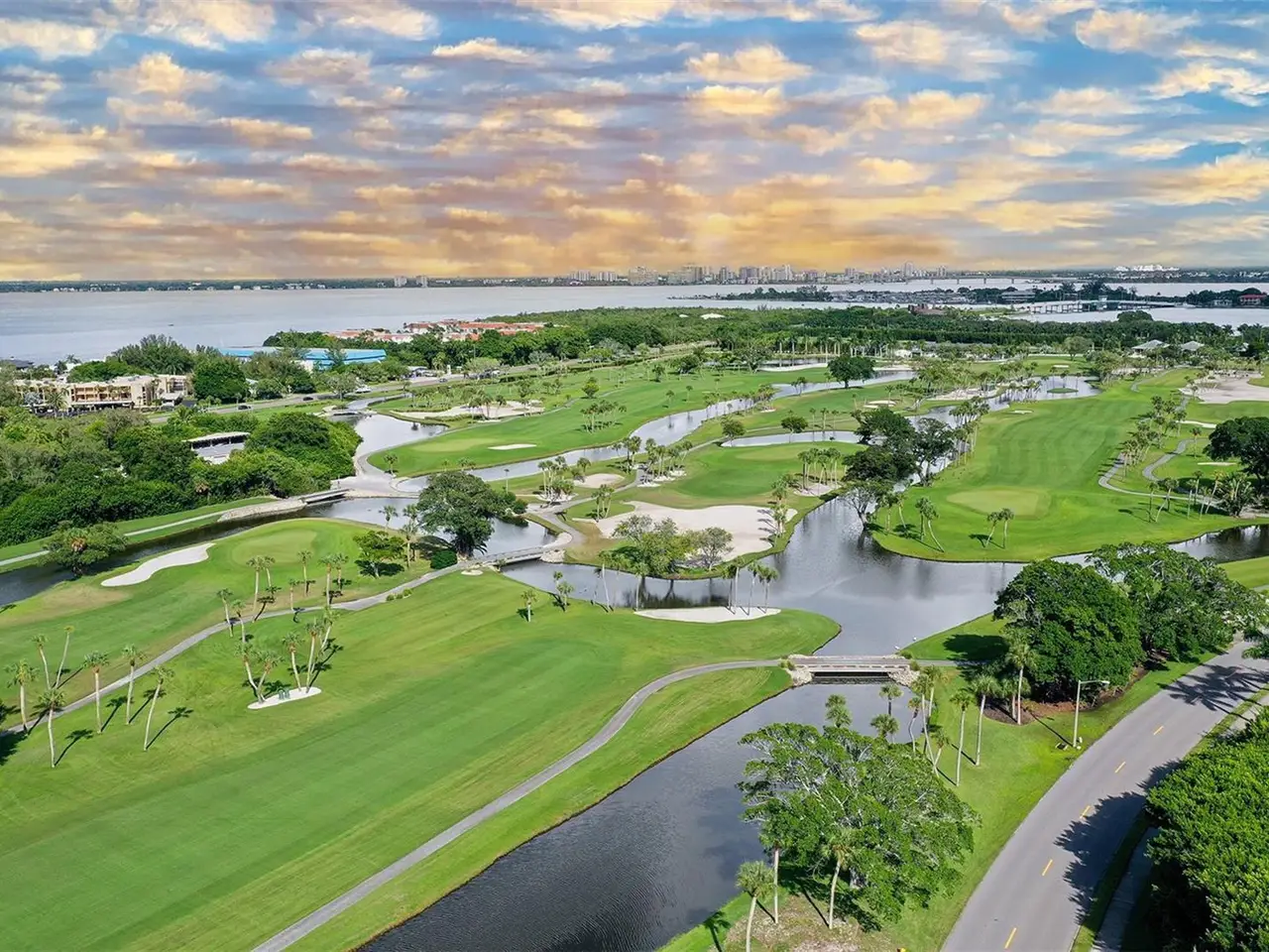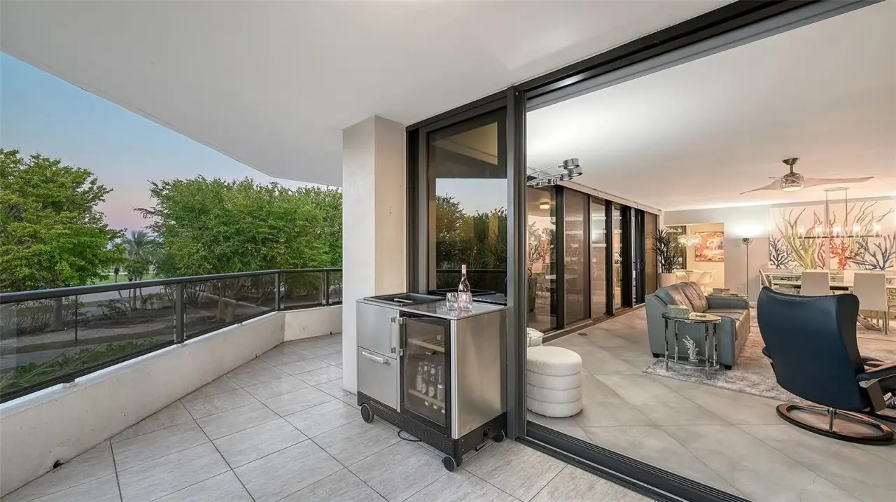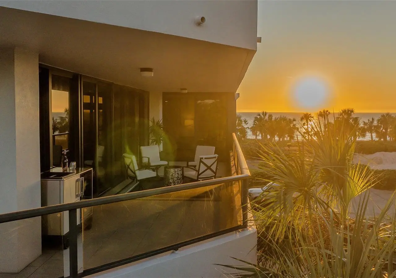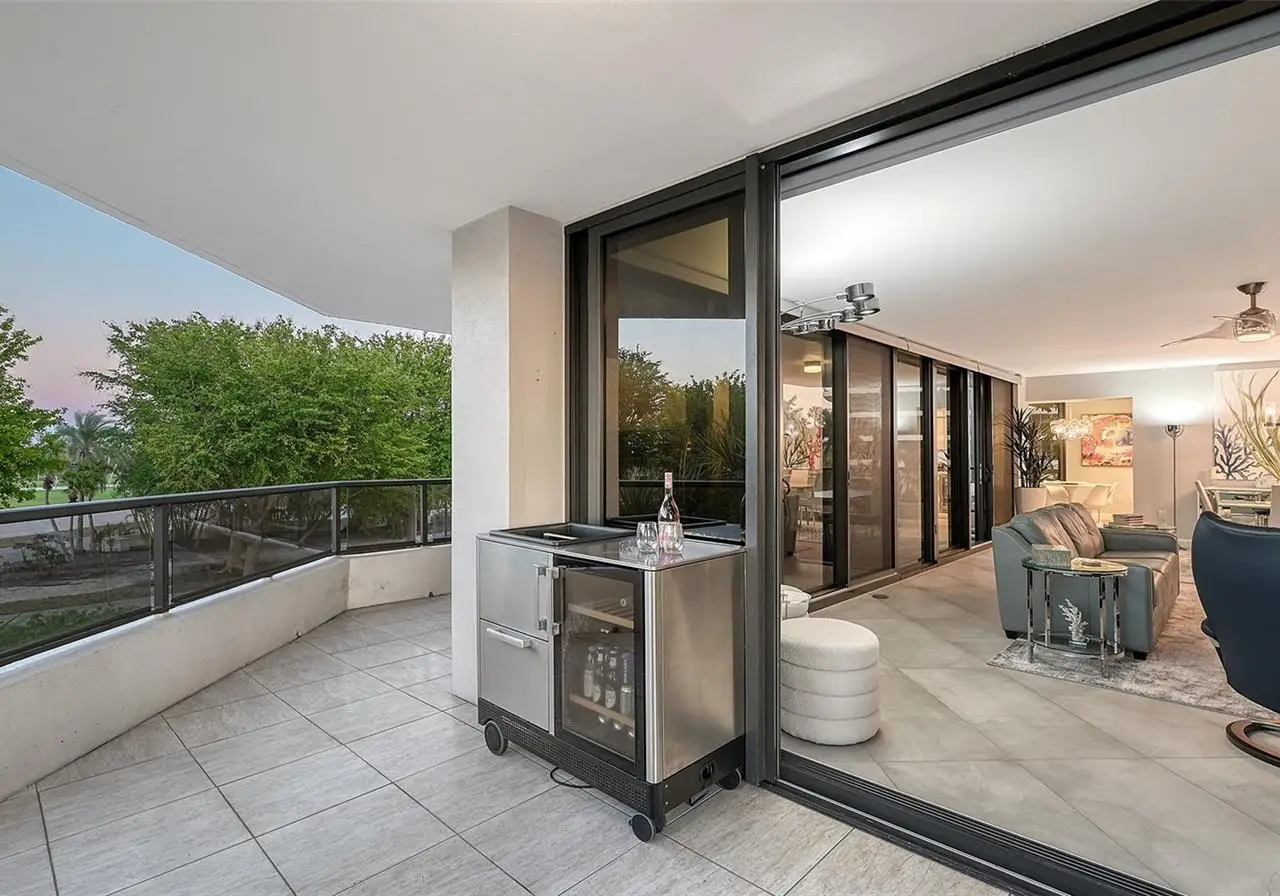 Experience the pinnacle of Gulf Coast living at The Sanctuary, nestled behind the gates of the prestigious Longboat Key Club and Resort on Longboat Key. This exquisitely remodeled three bedroom, three bath property offers a one-of-a-kind living experience with contemporary flair. Enjoy breathtaking, panoramic views of the Longboat Key Club golf course and the Gulf of Mexico from the expansive wrap-around terrace complete with updated tile and PGT impact sliding doors for added protection. The interior of this luxurious residence features neutral, large format porcelain tile floors throughout exuding a sleek, modern aesthetic. Solar screen window coverings are featured in the kitchen, living room, and 3rd bedroom while the primary and main guest bedroom enjoy the elegance of top-down, bottom-up remote controlled custom Roman shades. The expansive great room serves as the heart of the home, offering breathtaking views of the golf course and sunsets every evening. It features a striking 72-inch linear electric fireplace accompanied by a flat-screen TV mounted on a beautiful ledgestone accent wall. The room seamlessly incorporates a spacious dining and entertaining space to host large family get togethers to intimate parties! The chef's kitchen is a culinary dream featuring an integrated dinette area for casual dining and seamlessly blending style with functionality. It's equipped with high-end Monogram appliances, including a French door refrigerator with an internal water dispenser and a versatile freezer/refrigerator drawer. The Monogram oven boasts air fryer capabilities while the Advantium oven offers a range of cooking functions including microwave and convection options providing ultimate flexibility. Additional premium appliances include a Bosch dishwasher for quiet efficiency, a multi-temperature wine cooler to store your collection, and a JennAir induction cooktop for precise cooking control. This kitchen is designed to cater to both everyday meals and gourmet creations. The primary bedroom is a serene, spa-like retreat featuring stunning views of the Gulf and direct access to the expansive patio providing a seamless connection to the outdoors. The adjoining primary bathroom is designed for relaxation and luxury with custom two faucet, trough sink vanity, a separate 'dressing vanity area, a deep soaking tub, and floor-to-ceiling azure tile surrounding both the tub and the shower. This elegant design creates a soothing, indulgent environment perfect for unwinding and enjoying the tranquil atmosphere. The large custom walk-in closet has an abundance of storage & space. The second bedroom is equally stunning, offering picturesque views of the golf course. The ensuite high-end bath features dual vanities and a spacious walk-in shower adorned with wave-shaped tiles perfectly complementing the chic, beach-inspired design. The third bedroom is enjoyed also as a den. The clever seamless pocket doors create smart privacy & easy access to the 3rd bathroom for the ensuite experience but can quickly be transformed into a cozy bedroom offering both short and long-term guests a comfortable retreat. This unit has a separate garage entry and 2 'Townie' bikes to convey. Relax in the luxury and privacy of 24/7 gated security, heated pool/spa with cabanas, beach chaises and umbrellas, Fitness center, 4 Har-Tru tennis courts, Resident only clubhouse for social events or fun card games, it's all here... Perfection in Paradise, move-in ready.