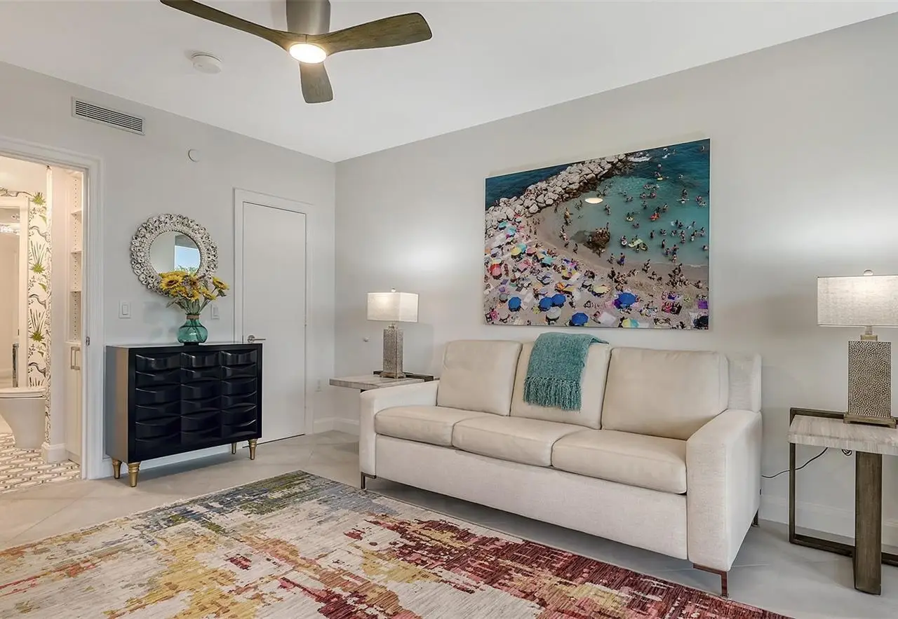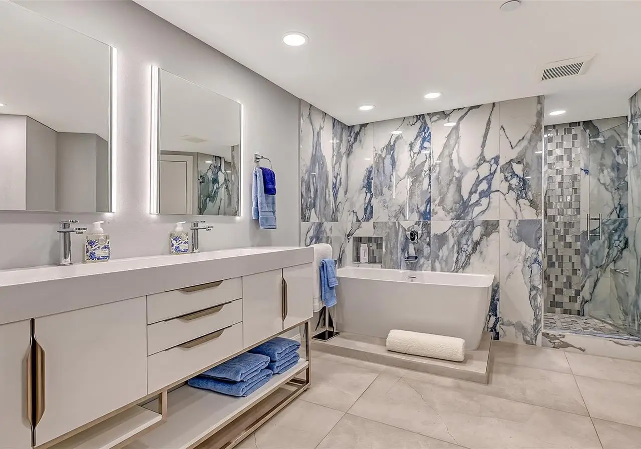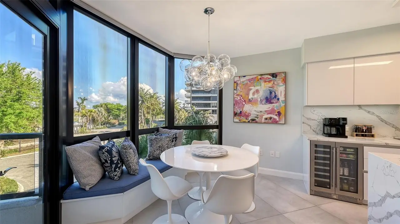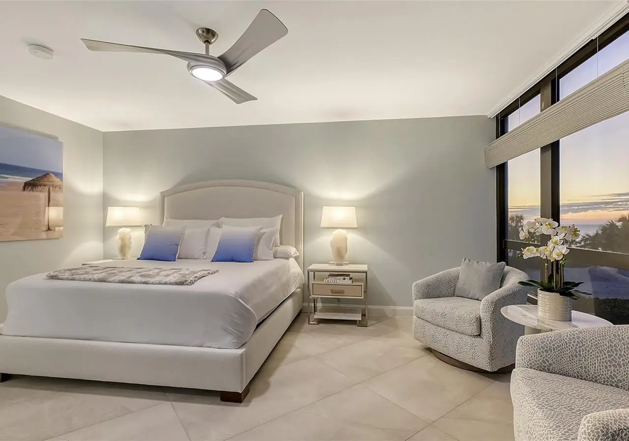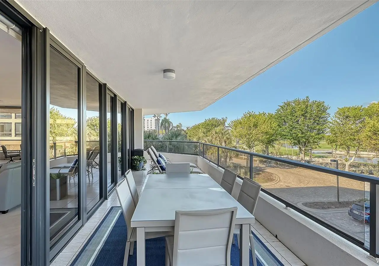 Experience the pinnacle of Gulf Coast living at The Sanctuary, nestled behind the gates of the prestigious Longboat Key Club and Resort on Longboat Key. This exquisitely remodeled three bedroom, three bath property offers a one-of-a-kind living experience with contemporary flair. Enjoy breathtaking, panoramic views of the Longboat Key Club golf course and the Gulf of Mexico from the expansive wrap-around terrace complete with updated tile and PGT impact sliding doors for added protection. The interior of this luxurious residence features neutral, large format porcelain tile floors throughout exuding a sleek, modern aesthetic. Solar screen window coverings are featured in the kitchen, living room, and 3rd bedroom while the primary and main guest bedroom enjoy the elegance of top-down, bottom-up remote controlled custom Roman shades. The expansive great room serves as the heart of the home, offering breathtaking views of the golf course and sunsets every evening. It features a striking 72-inch linear electric fireplace accompanied by a flat-screen TV mounted on a beautiful ledgestone accent wall. The room seamlessly incorporates a spacious dining and entertaining space to host large family get togethers to intimate parties! The chef's kitchen is a culinary dream featuring an integrated dinette area for casual dining and seamlessly blending style with functionality. It's equipped with high-end Monogram appliances, including a French door refrigerator with an internal water dispenser and a versatile freezer/refrigerator drawer. The Monogram oven boasts air fryer capabilities while the Advantium oven offers a range of cooking functions including microwave and convection options providing ultimate flexibility. Additional premium appliances include a Bosch dishwasher for quiet efficiency, a multi-temperature wine cooler to store your collection, and a JennAir induction cooktop for precise cooking control. This kitchen is designed to cater to both everyday meals and gourmet creations. The primary bedroom is a serene, spa-like retreat featuring stunning views of the Gulf and direct access to the expansive patio providing a seamless connection to the outdoors. The adjoining primary bathroom is designed for relaxation and luxury with custom two faucet, trough sink vanity, a separate 'dressing vanity area, a deep soaking tub, and floor-to-ceiling azure tile surrounding both the tub and the shower. This elegant design creates a soothing, indulgent environment perfect for unwinding and enjoying the tranquil atmosphere. The large custom walk-in closet has an abundance of storage & space. The second bedroom is equally stunning, offering picturesque views of the golf course. The ensuite high-end bath features dual vanities and a spacious walk-in shower adorned with wave-shaped tiles perfectly complementing the chic, beach-inspired design. The third bedroom is enjoyed also as a den. The clever seamless pocket doors create smart privacy & easy access to the 3rd bathroom for the ensuite experience but can quickly be transformed into a cozy bedroom offering both short and long-term guests a comfortable retreat. This unit has a separate garage entry and 2 'Townie' bikes to convey. Relax in the luxury and privacy of 24/7 gated security, heated pool/spa with cabanas, beach chaises and umbrellas, Fitness center, 4 Har-Tru tennis courts, Resident only clubhouse for social events or fun card games, it's all here... Perfection in Paradise, move-in ready.