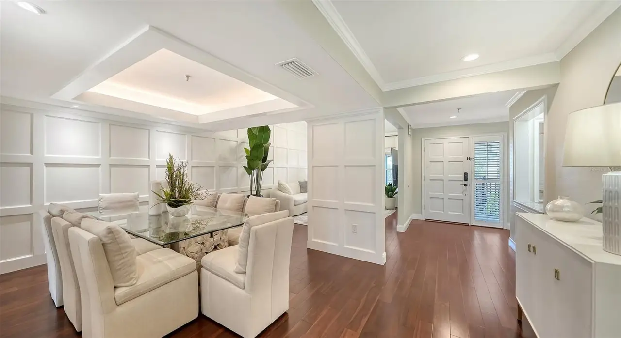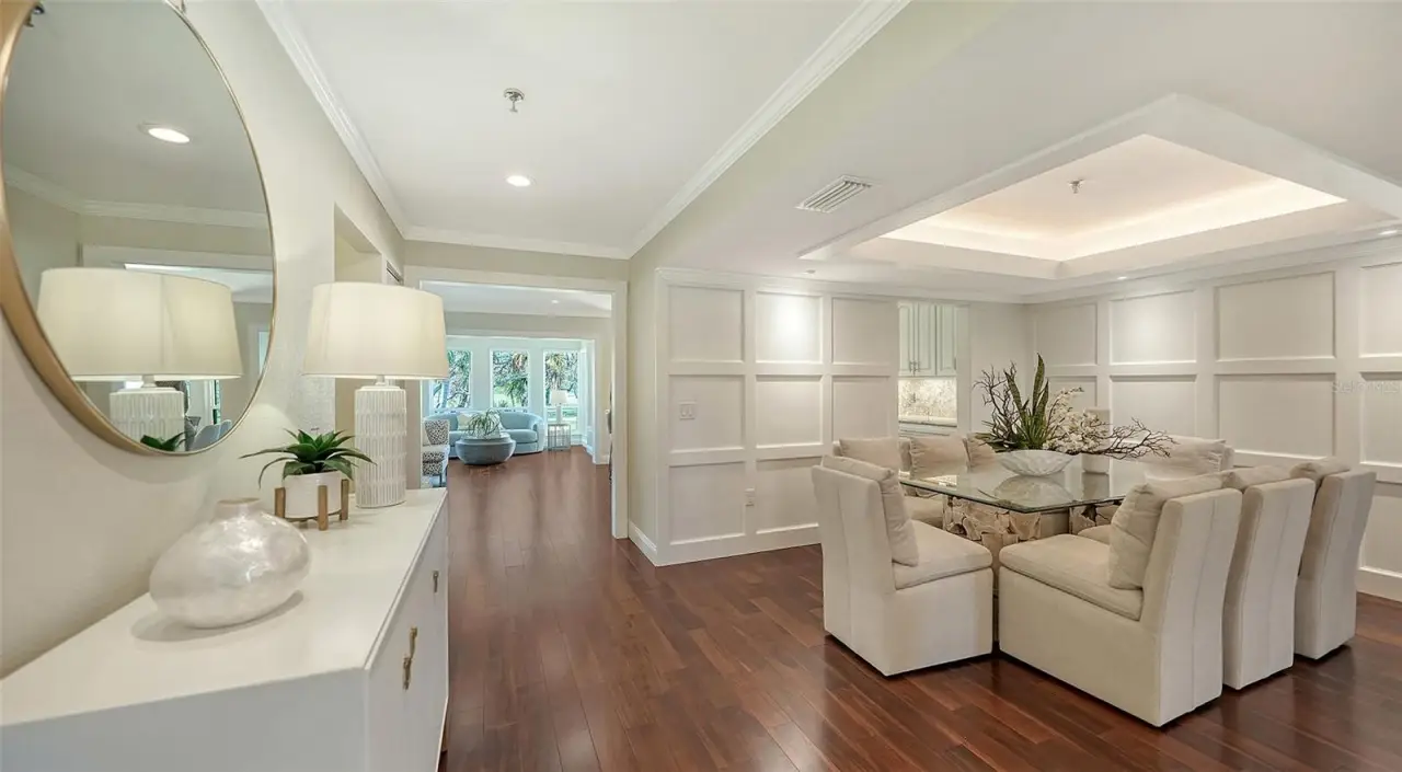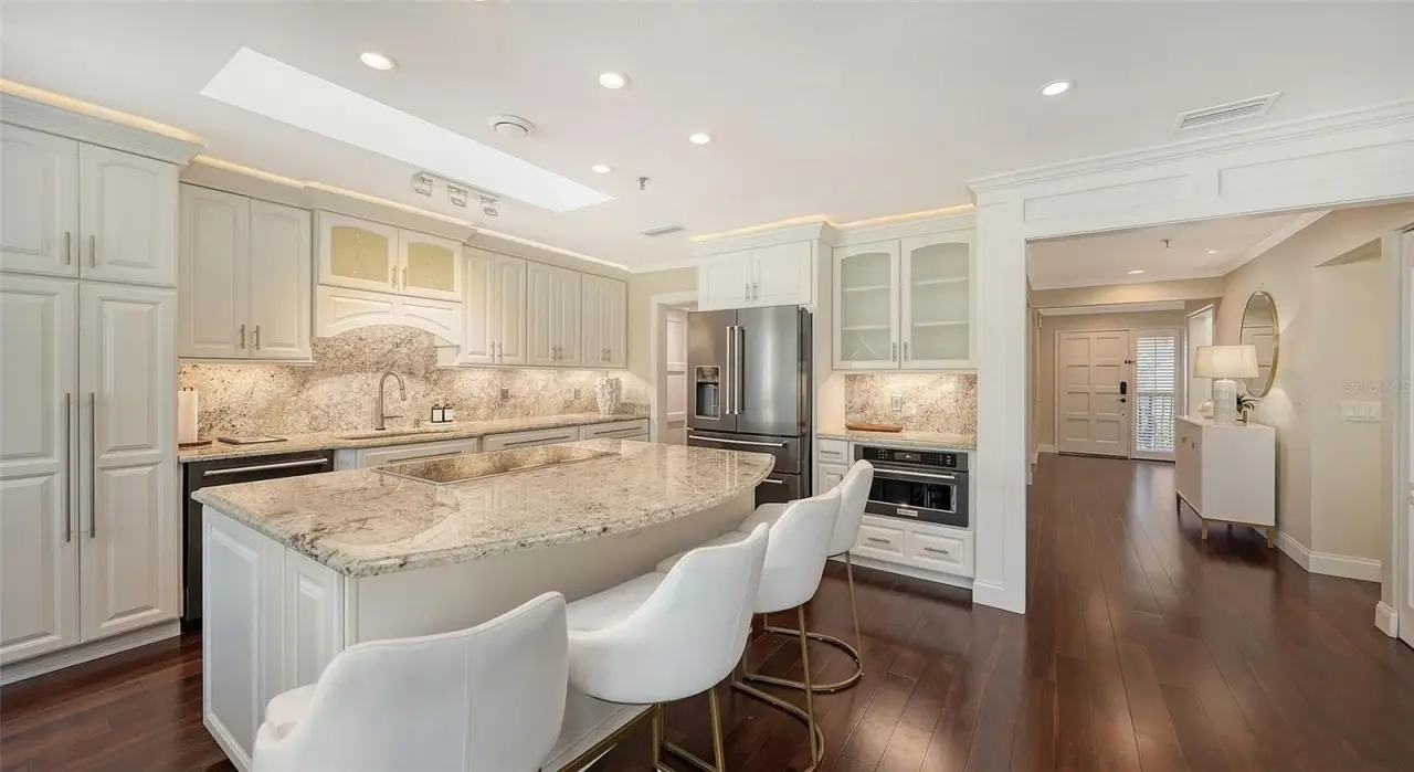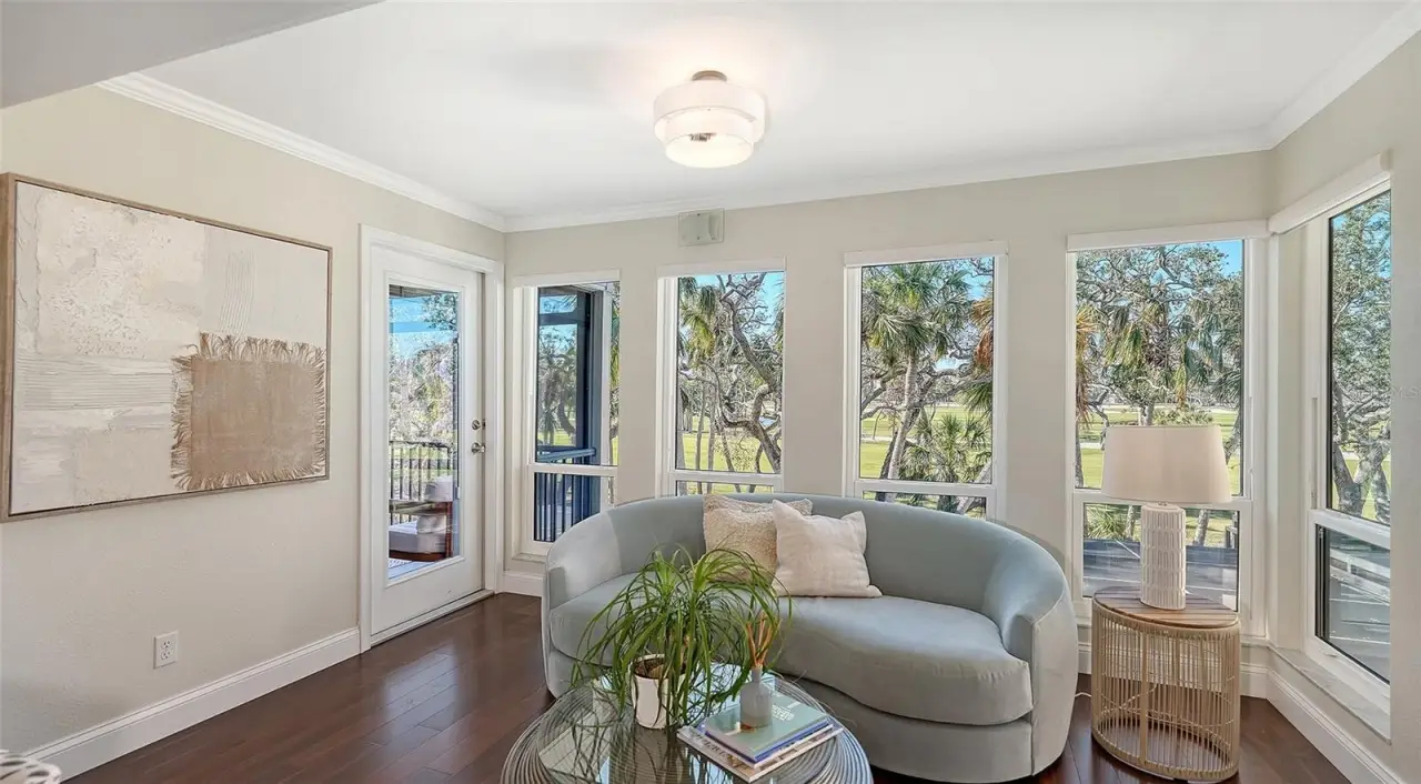 Discover this exquisitely renovated, fully furnished 3-bedroom, 2-bath home in the friendly 'Harbour Oaks' section of the prestigious Bay Isles community on Longboat Key. With just under 2,000 square feet of living space, this residence perfectly combines luxury, comfort, and convenience. This home has been meticulously designed with high-end finishes by an interior designer, offering a sophisticated aesthetic throughout, featuring custom wood paneling, recessed lighting, engineered wood floors, Stark wool carpet in the primary bedroom, and custom draperies. The 2020 upgraded kitchen features premium stainless-steel appliances and an induction range. Additional thoughtful design elements include cove lighting in the dining room and a wood-burning fireplace with custom Carrera Marble surround. The lanai with a motorized no-see-um bug screen overlooks the Longboat Key Club Harbourside Golf Course, providing breathtaking and comfortable sunset views framed by beautiful trees and lush greenery. For safety, durability and financial peace of mind, this gorgeous second floor residence features recently upgraded high-impact sliders and windows, plus community-wide new roofing and siding. Located in the gated Bay Isles community with 24/7 security, this home is within walking or biking distance to the private and newly renovated Bay Isles Beach Club, the Longboat Key Club Moorings Marina and Portofino restaurant, the Longboat Key Club Pickleball and Tennis Courts, Publix, CVS, as well as to the new Longboat Key St. Regis, which offers exceptional dining options and the vibrant St. Regis Monkey Bar, now open to the public. This remarkable turn-key property with a beautiful community pool and spa offers a rare opportunity to embrace the unparalleled Longboat Key lifestyle. Don't miss the chance to make it your own.