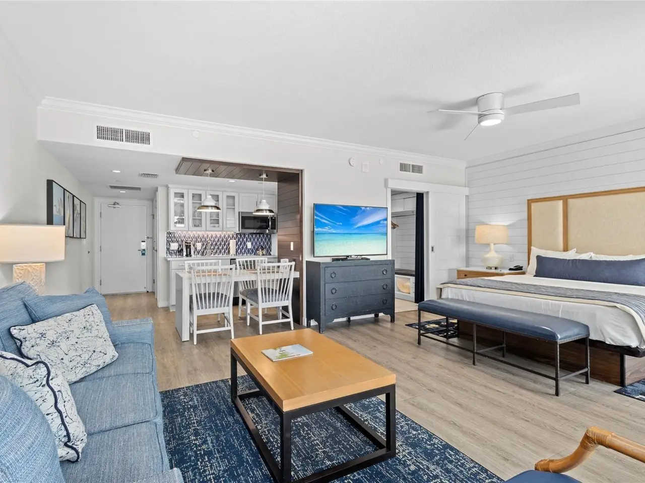 Spectacular Gulf and Sunset views are enjoyed from this west facing Junior Suite in Building 3. The direct beach view through the swaying palms perfectly encompasses the resort lifestyle and the vision guests have of tropical landscapes when making reservations. This completely renovated residence is currently in the hotel program and reported healthy income in 2023 and 2024. As an owner, you are able to take advantage of the amenities offered by the 410 acre member-only Longboat Key Club while using your owner time. These include fine dining in 5 exclusive restaurants, 45 holes of Championship Golf, the award-winning Tennis Gardens, Spa/Wellness Center, white sand beach with umbrellas and waitstaff and a full service marina. The renovated rooms, main dining area, pool and guest services provide an enhanced product and elevated experience to a property that already accumulates a multitude of awards including the AAA Four-Diamond Award and Conde Nast Traveler's Top Florida Resorts. Start your Longboat Life today!