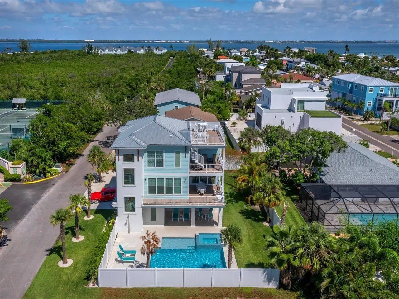What’s better than a newly constructed home (2024) on fabulous Longboat Key? With carefully selected designer finishes, High Impact Sliding Doors and Windows throughout, four bedrooms and four and a half baths, covered balconies on every floor, including an amazing rooftop deck with gorgeous views: this is the epitome of luxury living meets laid back coastal charm! Everything has already been done for you to create the perfect island retreat. The elevated second floor living area features a gorgeous chef's kitchen with a large island that is open to the dining area and great room, all done up in coastal hues. Walls of sliding doors offer abundant light and open to a nice sized outdoor covered deck that overlooks the pool and offers the perfect balance for indoor, outdoor entertaining. One of the 4 bedrooms with an ensuite bath and an additional half bath are on this floor. The third floor living area features 3 more of the bedrooms, and all have their own ensuite bath. A covered porch is here for yet another outdoor moment and is the perfect spot to sit and enjoy the Florida breezes at the end of the day. A winding staircase on this deck leads to the showstopper rooftop balcony with stunning views to Sarasota Bay and partial views to the Gulf of Mexico. From here you can see just how close you are to the gorgeous stretch of beach, with your deeded beach access, just a short walk down the street. Uniquely positioned mid-key on the island, you are surrounded by multiple restaurants, shopping, and a true opportunity for an extraordinary way of life. Whether you are looking for your forever home, a vacation spot to call your own or an investment rental property, this may well be the one for you.