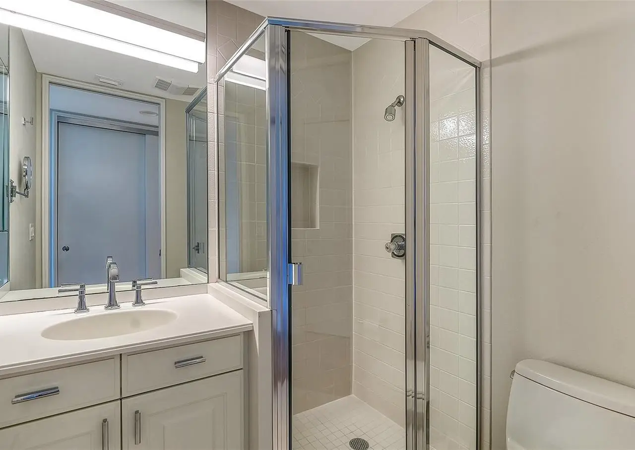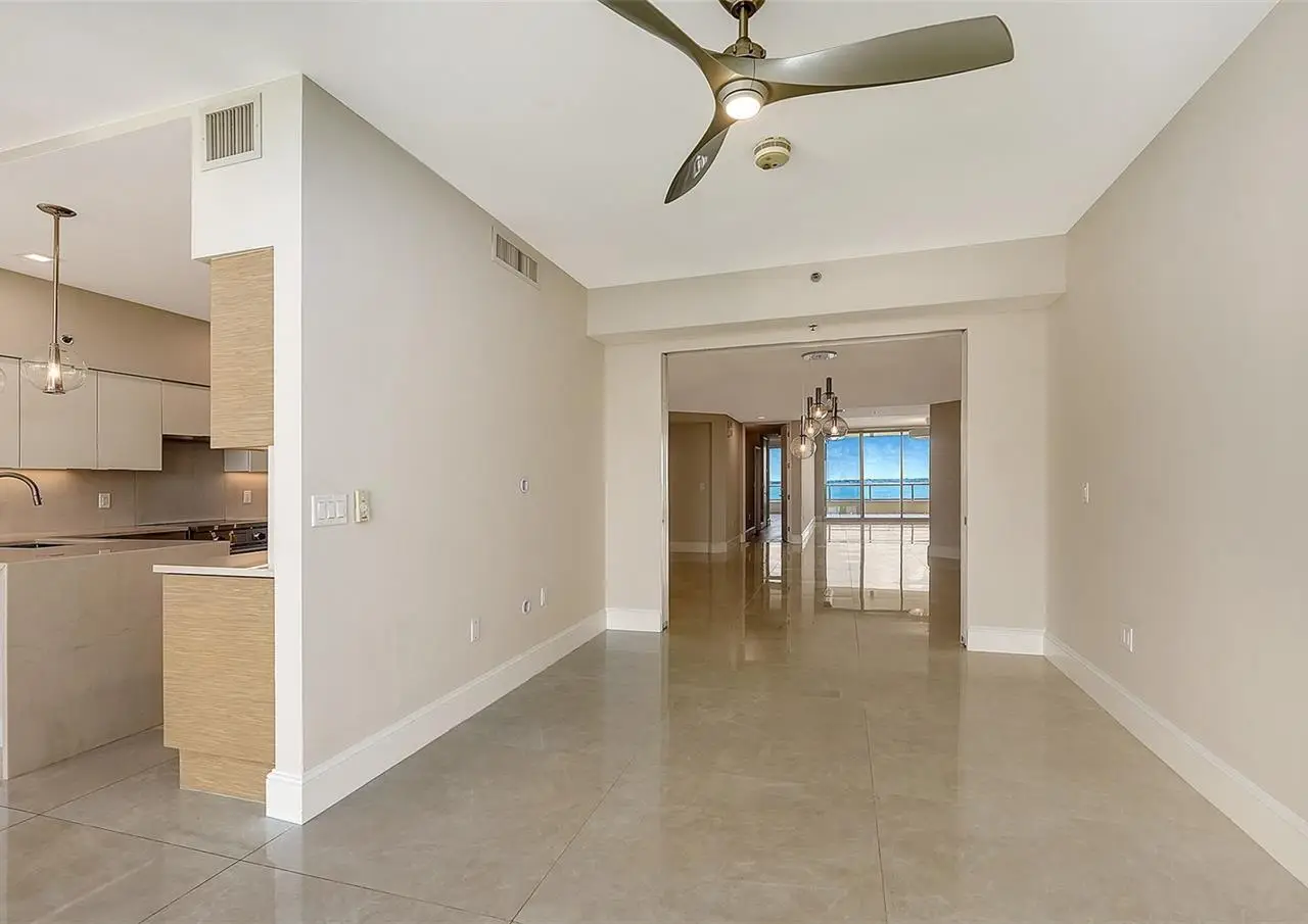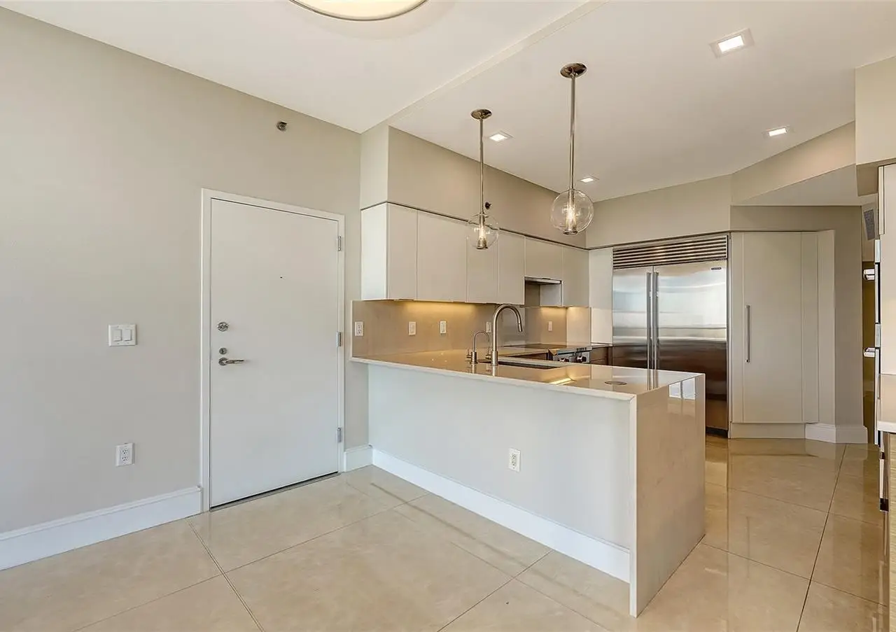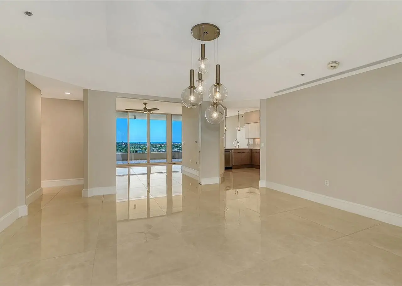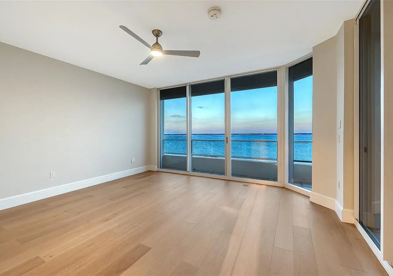 Welcome to Grand Bay. Experience the essence of refined coastal living, where breathtaking panoramic water and city views take center stage. Awaken to the sunrise over Sarasota Bay's skyline with limitless views of the bay and golf course, and unwind with stunning sunsets over the Gulf, an ever-changing display of beauty from every room. Perfectly situated on the 8th floor, this elegant home welcomes you through a private-access, controlled elevator leading to a stunning foyer framed by contemporary glass double doors. The Cayman open floor plan immediately reveals sweeping vistas, while large porcelain tile flooring flows seamlessly through the living areas and onto two outdoor terraces ideal for quiet relaxation. The stunning updated kitchen features two-toned cabinetry, Wolf and Sub-Zero appliances, under-cabinet lighting, quartz countertops, and an inviting breakfast bar. An adjacent eat-in area with floor-to-ceiling sliders opens to a private covered terrace, a perfect setting for entertaining guests and boundless vistas. The primary suite is a lavish retreat, complete with white oak floors, two walk-in closets and a spa-inspired bath showcasing, a soaking tub, glass shower, and dual vanities. The guest suite offers private terrace access for stunning sunset views, complemented by white oak floors and an en-suite bath. Discover versatility with a den/office that doubles as an occasional guest room, providing privacy with elegant pocket doors that separate it from the formal dining room, and a 3rd full bath just steps away. A well thought out conversion has added a built-in office area adding functionality to round out the interior. Residents enjoy various first-rate amenities, including 24-hour guard gates, a clubhouse, two community pools and spas, a large fitness center with saunas, and tennis courts. Stroll the neighborhood's scenic walking paths or enjoy deeded access to the exclusive gated Bay Isles Beach Club offering locker rooms, barbecues, volleyball nets, covered picnic areas and a sandy white beach. Located behind the Bay Isles secure gates, this secluded neighborhood rests on the rolling greens of the Longboat Key Club's golf course. Grand Bay residents find it hard to leave this special community. This residence truly captures the best refined Bay and beach lifestyle - sophisticated, exclusive, and ready to be enjoyed.