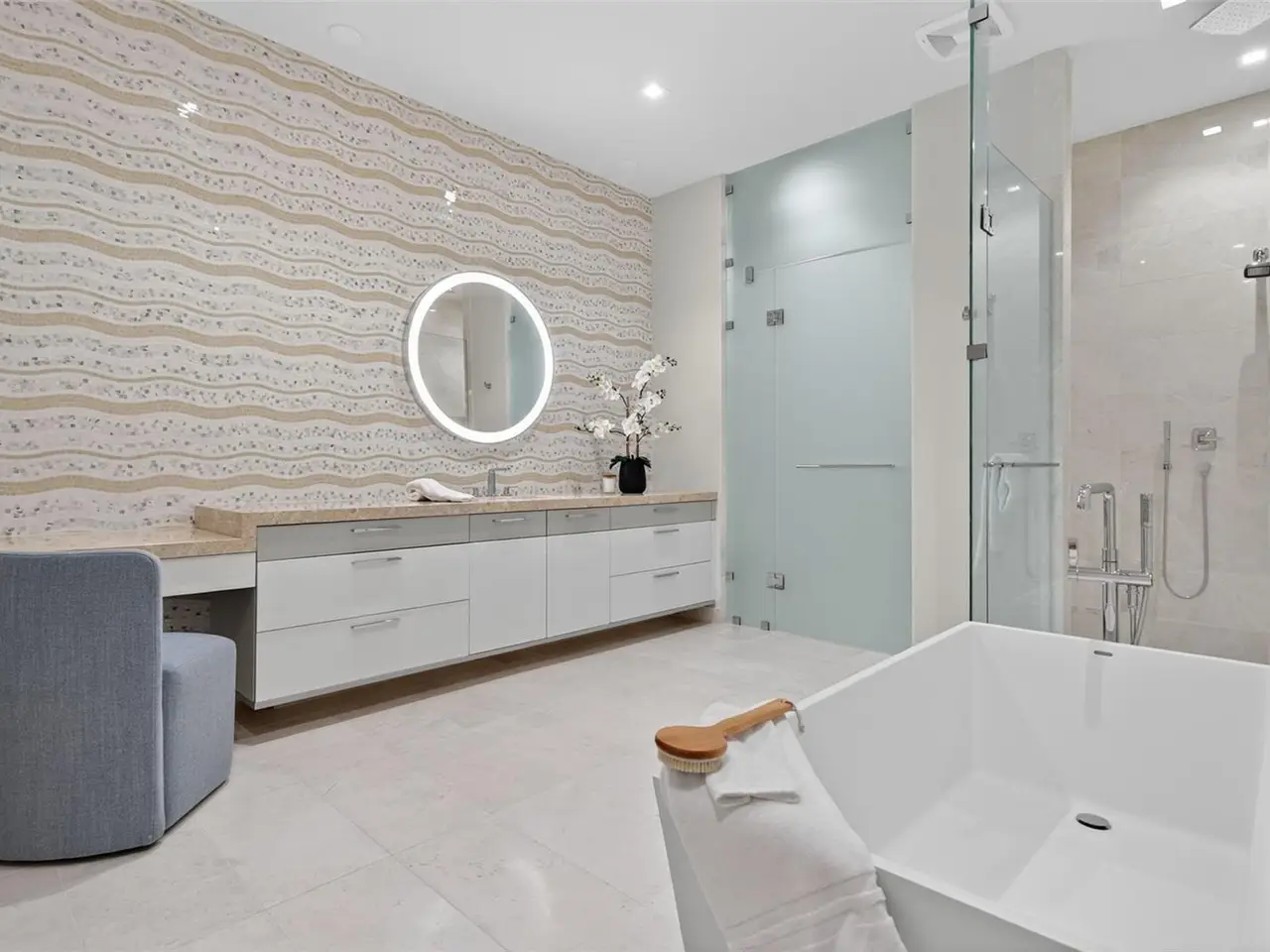 St. Regis Penthouse – Prestige, Privacy, and Panoramic Views of Sarasota Bay. Experience the pinnacle of luxury living at The St. Regis Longboat Key, where prestige meets privacy in this exceptional penthouse—one of only 67 exclusive residences. Offered turnkey furnished with elegant Restoration Hardware pieces, this residence is thoughtfully appointed with smart home lighting and electronic blinds, a premium sound system, and large flat-screen televisions throughout. As a penthouse owner, you’ll enjoy soaring ceilings and the rare privilege of a third, gated private parking garage. This residence is the only two-bedroom layout featuring two full spa-inspired bathrooms attached to the primary suite—an indulgent and highly desirable feature. For those who value complete privacy, this penthouse is uniquely positioned so that its expansive terrace complete with Wolf gas grill and walls of glass, are not visible from any hotel balconies or neighboring residence terraces. You can savor morning coffee in your bathrobe, relax in shaded comfort on your terrace in the afternoon, and enjoy Sarasota Bay’s glittering skyline at night—without ever needing to lower your shades. The gourmet kitchen showcases sleek custom Poggenpohl cabinetry, a Sub-Zero refrigerator, Wolf gas cooktop and double ovens, and a Cove dishwasher—perfectly designed for both culinary creativity and casual entertaining. In the great room, a built-in bar with a wine and beverage refrigerator enhances the effortless flow of indoor-outdoor living, ideal for hosting guests or unwinding after a day by the Gulf. This St. Regis penthouse offers a rare blend of sophistication, seclusion, and scenic beauty—an unparalleled opportunity to own one of Longboat Key’s most distinctive residences. St. Regis Longboat Key offers a distinguished array of amenities meticulously curated for its residents. The Private Resident’s Clubhouse offers an environment of exclusivity, complemented by a state-of-the-art fitness center, as well as a pool and spa area reserved solely for residential use. Residents are granted privileged access to the legendary St. Regis Butler and Concierge services, which exemplify world-class hospitality and attention to detail. An extraordinary oceanfront spa awaits, alongside diverse dining experiences that showcase the highest standards of culinary excellence. Personal cabanas along the shore create private retreats for relaxation, while the family-friendly amenities include a meandering lazy river and a unique saltwater lagoon. This lagoon is home to a vibrant array of tropical fish species, graceful stingrays, and the resort’s resident tortoises, offering a captivating wildlife experience within the lush grounds. Spanning seventeen acres of beachfront on the coveted Longboat Key barrier island, this private oasis is conveniently located only 3.5 miles from St. Armand’s Circle, the region’s premier destination for shopping and dining. Whether seeking tranquil solitude or an active social environment, every aspect of life at St. Regis Longboat Key has been thoughtfully designed to anticipate and fulfill the desires of its residents. This offering represents more than just a residence; it is an invitation to embrace the legendary St. Regis lifestyle, defined by elegance, comfort, and outstanding service. Begin your journey to extraordinary Gulf side living.