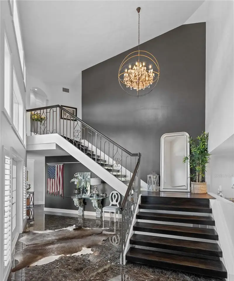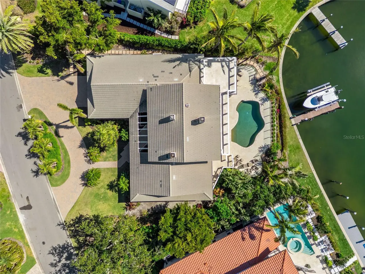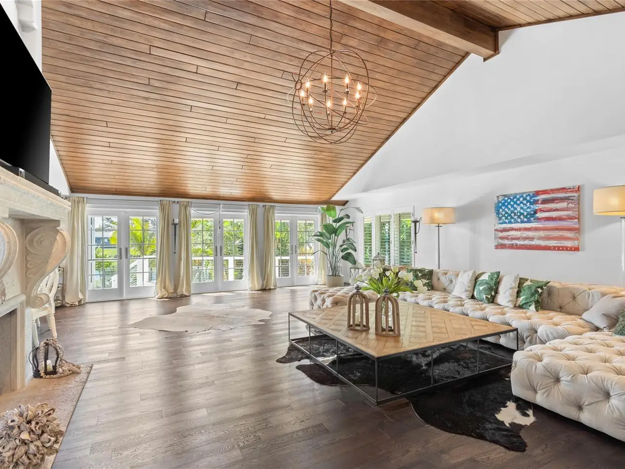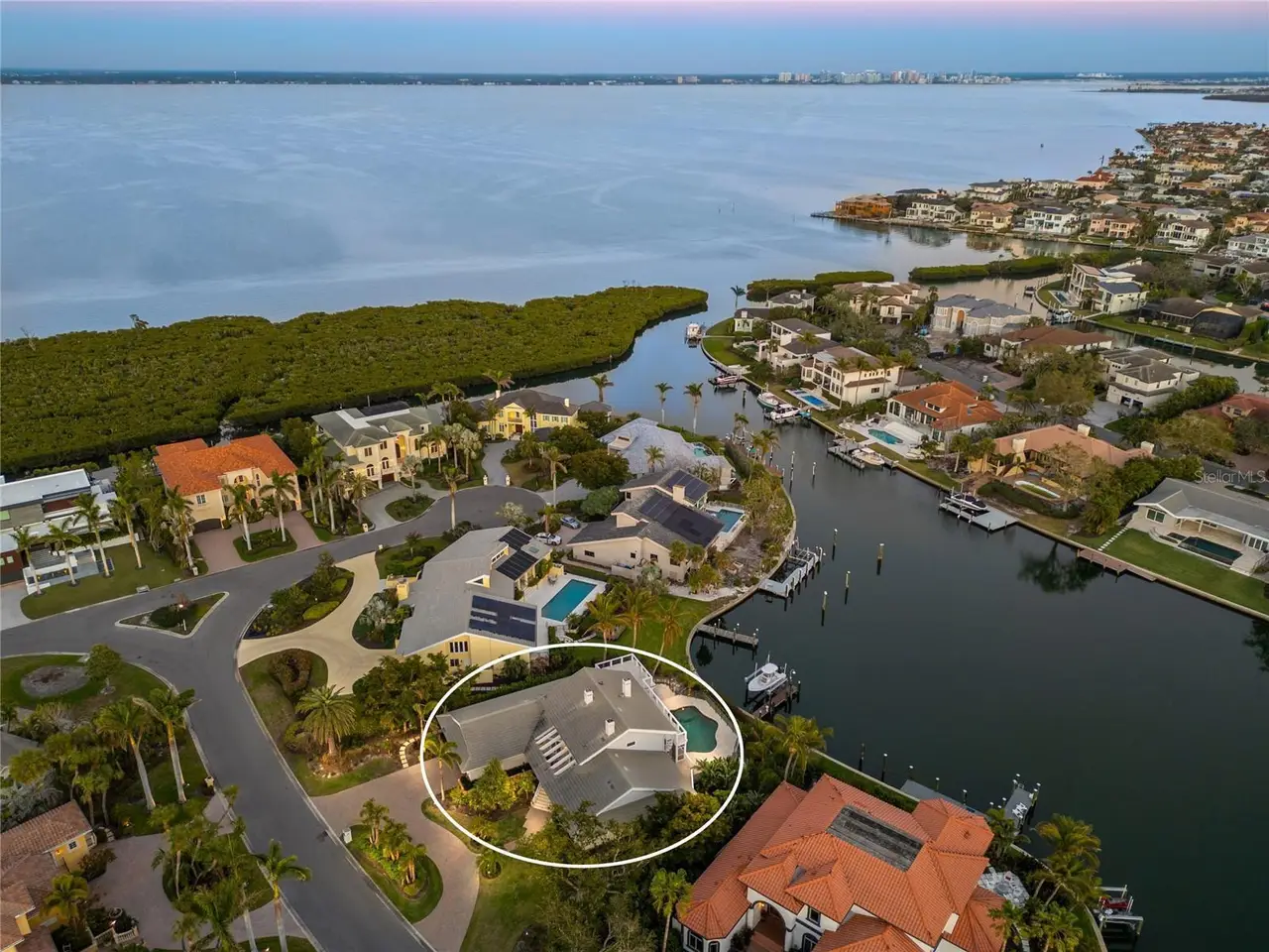 This exquisite two-story waterfront home located in the coveted Harbor section of Bay Isles has been meticulously renovated to embody modern elegance and luxurious coastal living. Surrounded by lush tropical landscaping, the home welcomes you through an elegant French door entrance into the grand foyer, where soaring ceilings, gleaming travertine flooring, and a striking wrought iron floating staircase with rich, dark wood steps set the tone for the refined elegance that unfolds throughout the home. The lower level boasts a bright and airy open space with hardwood floors throughout, creating a welcoming atmosphere that effortlessly combines sophistication with the timeless beauty of natural materials. The spacious family room is anchored by a stunning fireplace with decorative columns and an elegant mantel, complemented by French doors leading to the expansive waterfront lanai, reinforcing the home's seamless connection to its stunning natural surroundings. A culinary enthusiast's dream, the generously sized kitchen features a large island with a waterfall granite countertop, custom cabinetry, ample storage space, and high-end stainless steel appliances, including a six-burner gas range and double ovens. Adjacent to the kitchen, the dining area and great room spaces flow seamlessly into each other. The great room is both grand and inviting, showcasing a dramatic wood-clad cathedral ceiling that adds warmth and character. A second stone fireplace enhances the ambiance, while three sets of French doors that open onto the lanai offer an effortless transition between indoor and outdoor living. Also on this level are two generous guest suites, each with a full bath, one with direct lanai access, and a den with full bath. Upstairs, the primary suite is a true retreat. Floor-to-ceiling windows illuminate the space, and French doors open to a spacious private balcony, offering captivating water views that create a peaceful escape. A cozy fireplace adds to the intimate atmosphere, while the spa-inspired en-suite bath indulges with marble flooring, soaking tub, dual vanities, frameless glass walk-in shower, and water closet, all overlooking the serene waterway. The outdoor living space is equally spectacular, designed for both relaxation and entertaining. The expansive lanai features multiple covered areas with a rich wood-clad ceiling and retractable screens, a sun-drenched open-air section, and a stunning saltwater pool with travertine decking framed by verdant tropical landscaping. Just beyond the pool, a private dock with a boat lift sits on a deep-water basin and wide canal with no bridges to Sarasota Bay, offering quick and direct access for boating enthusiasts. Bay Isles Beach Club membership is included. This extraordinary home seamlessly blends elegance, comfort, and the unparalleled beauty of waterfront living, creating a sanctuary that is as functional as it is breathtaking.