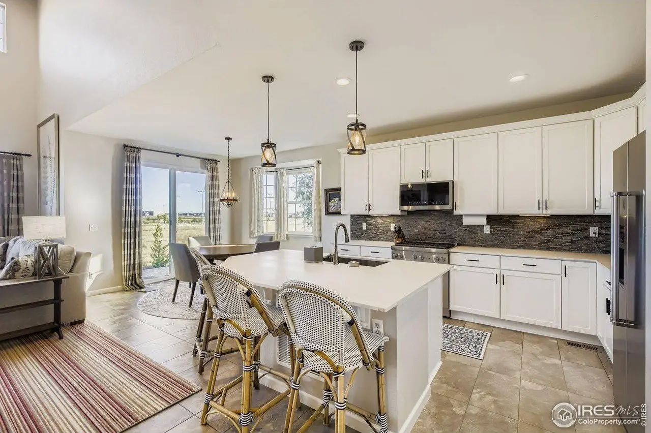 Comfort, convenience, and Colorado living come together. Perfectly situated directly on open space, this stunning two-story home offers peaceful views and a sense of privacy while still being in the heart of a vibrant neighborhood. This 6-bedroom, 5-bathroom home features over 4,000 SF, with an open and versatile floor plan that's ideal for both everyday living and entertaining. The main level boasts a light-filled living room with vaulted ceilings, luxury flooring, and a cozy fireplace, with a modern mantel and custom built in cabinets. The modern kitchen includes stainless steel appliances, Dekton countertops, and an abundance of cabinets, opening to a dining area and family room that flow seamlessly to the backyard. Upstairs, the spacious primary suite includes a five-piece bathroom and walk-in closet, complemented by three additional bedrooms and 2 full baths. The finished basement provides flexible space for a home office, media room, or fitness area. Step outside to enjoy a beautifully landscaped backyard with a stone patio that backs directly to open space-perfect for gatherings, play, or quiet evenings soaking in the view. The location is unbeatable with walking distance to award-winning schools and easy access to downtown Longmont restaurants, shopping and entertainment, - close to hiking and biking trails - this home has it all. A 2-car garage, central air conditioning, and thoughtful updates throughout complete this move-in-ready home. Don't miss the opportunity to own a property that truly checks all the boxes-privacy, location, and style-all in one of Longmont's most desirable neighborhoods.