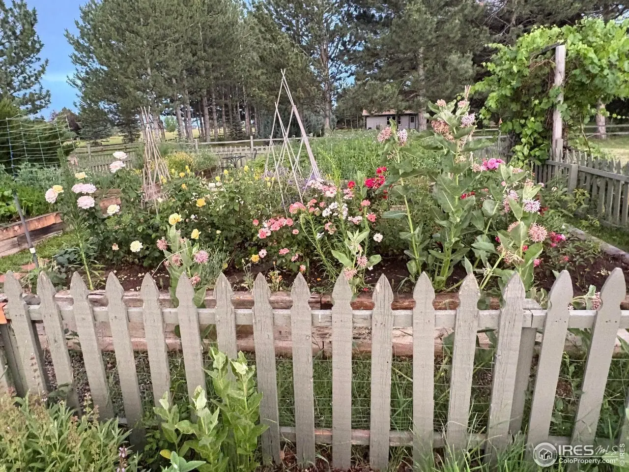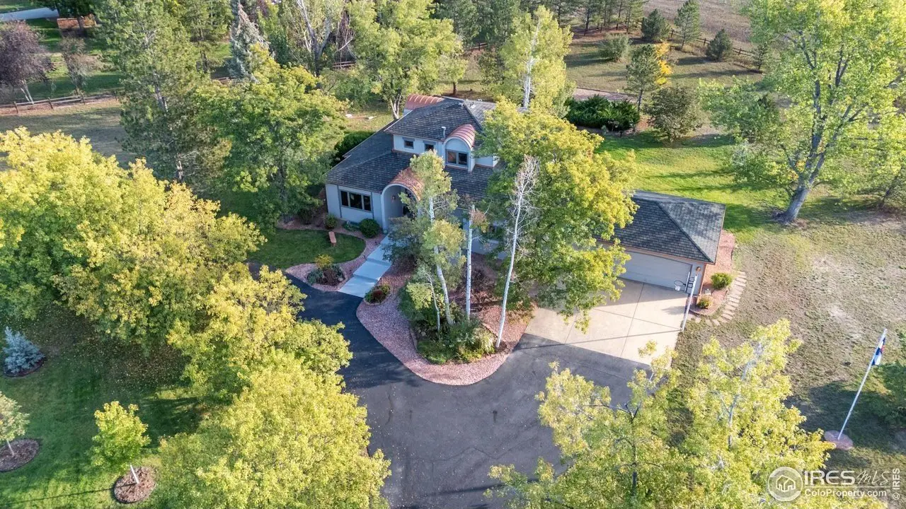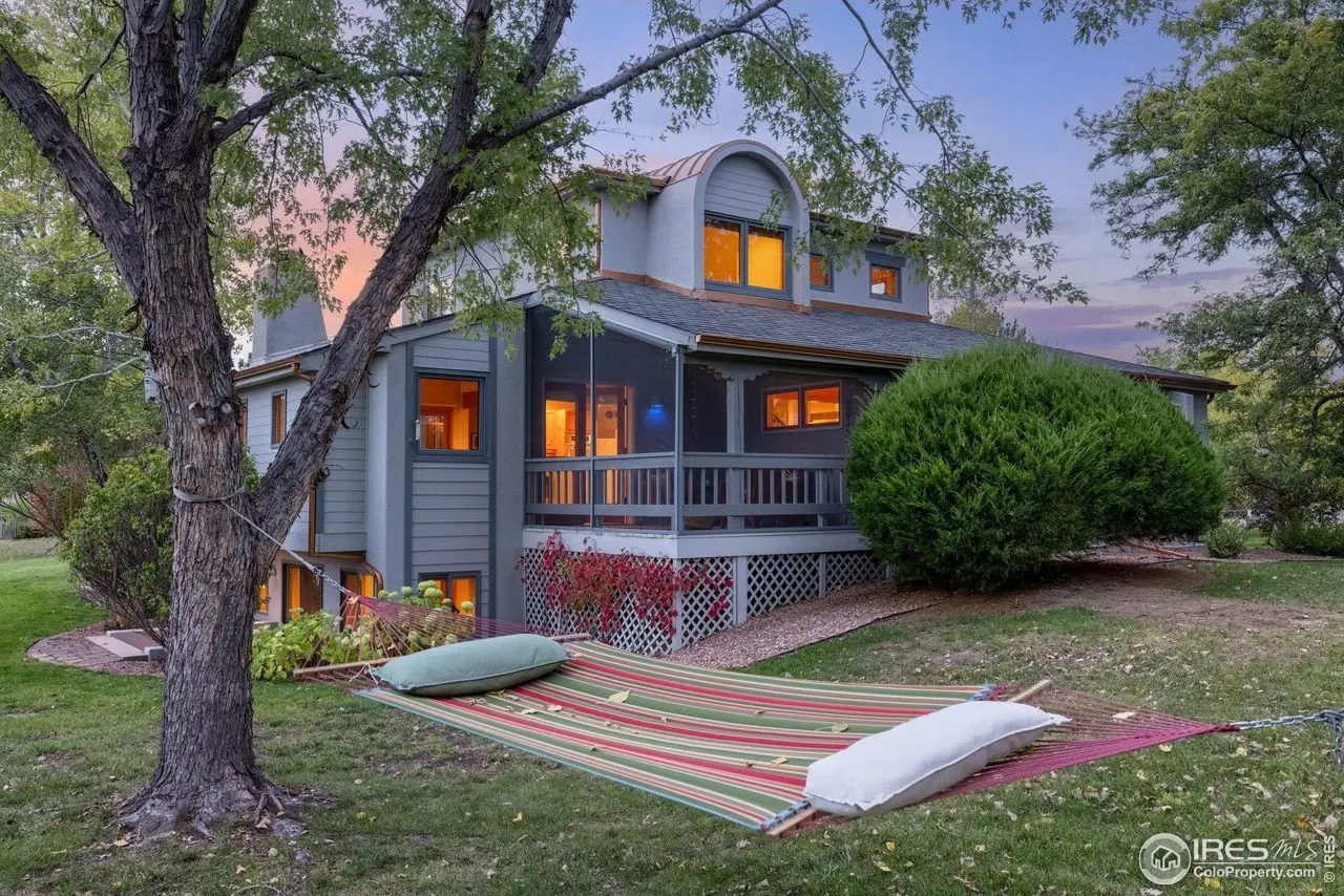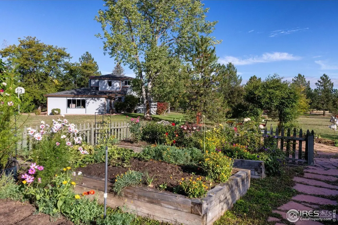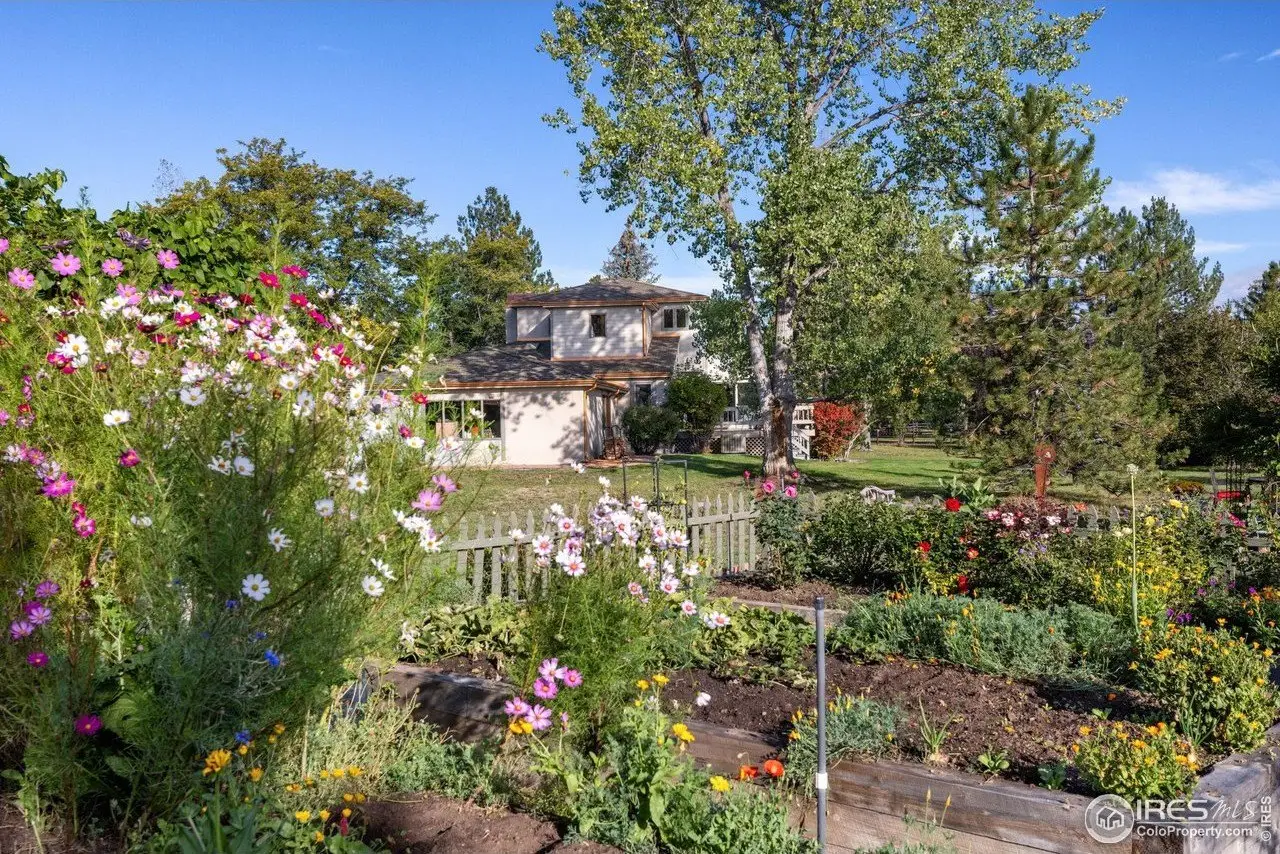 Imagine coming home to your own custom retreat set on two lush acres with a private yard, mature trees, and a six-bed organic garden bursting with vegetables and flowers. Outdoors, there's room for everyone to play, relax, and gather. Multiple spaces - including a horseshoe pit - make the expansive yard perfect for both recreation and entertaining. Gardeners and dog lovers alike will find this property a dream come true. Step inside through striking double doors and you're welcomed by warm Southwestern architecture. Designed with both comfort and entertaining in mind, the home's cozy layout connects a gourmet kitchen, living area, and wood-burning fireplace-an inviting space for family and friends. From here, two decks extend the living areas outdoors, offering peaceful spots to unwind in every season. Upstairs, the primary suite spans the entire second floor, creating a true retreat. A cozy window nook invites you to curl up with a book, while the spacious five-piece bath-with a soaking tub-makes relaxation easy. On the main floor, two additional bedrooms provide comfort and convenience, while a fourth bedroom rests on the lower level. Downstairs also offers a flexible recreation room and office with direct access to the backyard. Located in Southwest Longmont, this property blends privacy, natural beauty, and easy access to shopping, dining, and community in nearby areas. Nestled on a quiet private street, this serene neighborhood feels worlds away yet offers convenient access to the best of Colorado.