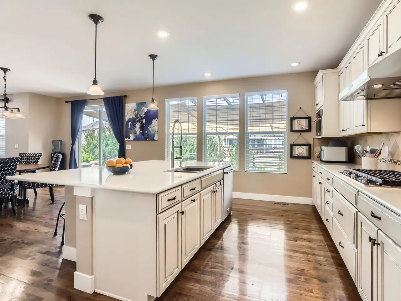 Seller will offer up to $35,000 Concession towards Rate Buydown and/or Closing Costs for this Stunning European Country-style home in Somerset Meadows, Longmont! This upgraded 5-bed, 5-bath offers luxury and comfort in a premier location. The open-concept layout features formal living and dining areas, a dramatic curved staircase, gas fireplace, and dark wood floors. The gourmet kitchen boasts quartz countertops, white cabinetry, stainless appliances, a walk-in pantry, and a butler's pantry-perfect for entertaining. Upstairs includes a spacious loft, laundry room, and three bedrooms-two with private en-suites. The elegant primary suite features a spa-like bath with jetted tub and granite counters. A main-level office/bedroom and 3-car garage add flexibility. The finished basement includes a rec/media room, wet bar with full-size fridge, guest suite, bath, storage, and a hidden wine cellar. Enjoy mountain views from the custom patio with extended pergola, designer stonework, and built-in gas line for grilling. Additional perks: dual furnaces and A/C, radon system, top-rated schools, and just 10 minutes to Boulder. Turnkey luxury in a top Longmont neighborhood!