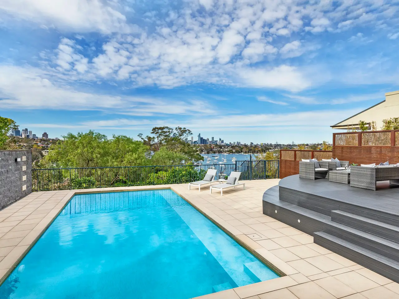 Enjoy Sydney's most celebrated postcard panorama from the comfort of home in this exclusive waterfront reserve residence, where timeless elegance meets uninterrupted views of the Harbour Bridge and city skyline from almost every room. Designed to maximise both luxury and liveability, the 1,500sqm approx. home offers a haven of bayside serenity with bold architectural flair with direct access to the water. Featuring four versatile indoor/outdoor living and dining areas, office and gym, a grand entertainer's terrace, and a series of idyllic decks and courtyards, this property promises a lifestyle as convenient as it is captivating - just minutes to transport links, Riverview College and Lane Cove village. – Prestigious family lifestyle on approx. 1,500sqm waterfront reserve block – Sunlit living with soaring curved ceiling and statement wood fireplace – Multiple living zones including formal lounge, multi-generational living – Expansive wraparound alfresco terraces, landscaped gardens and heated pool – Gourmet kitchen with Caesarstone benchtops and quality appliances, tranquil bamboo courtyard – Luxurious master suite with walk-in robe, private balcony and harbour views – Second kitchen, wine cellar, vast storage, DLUG and secure access