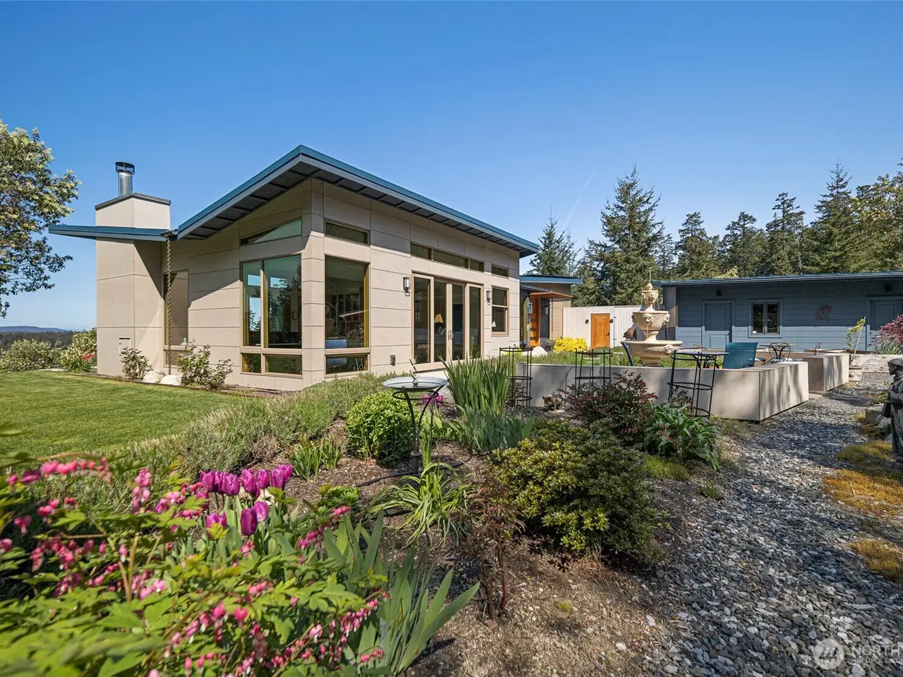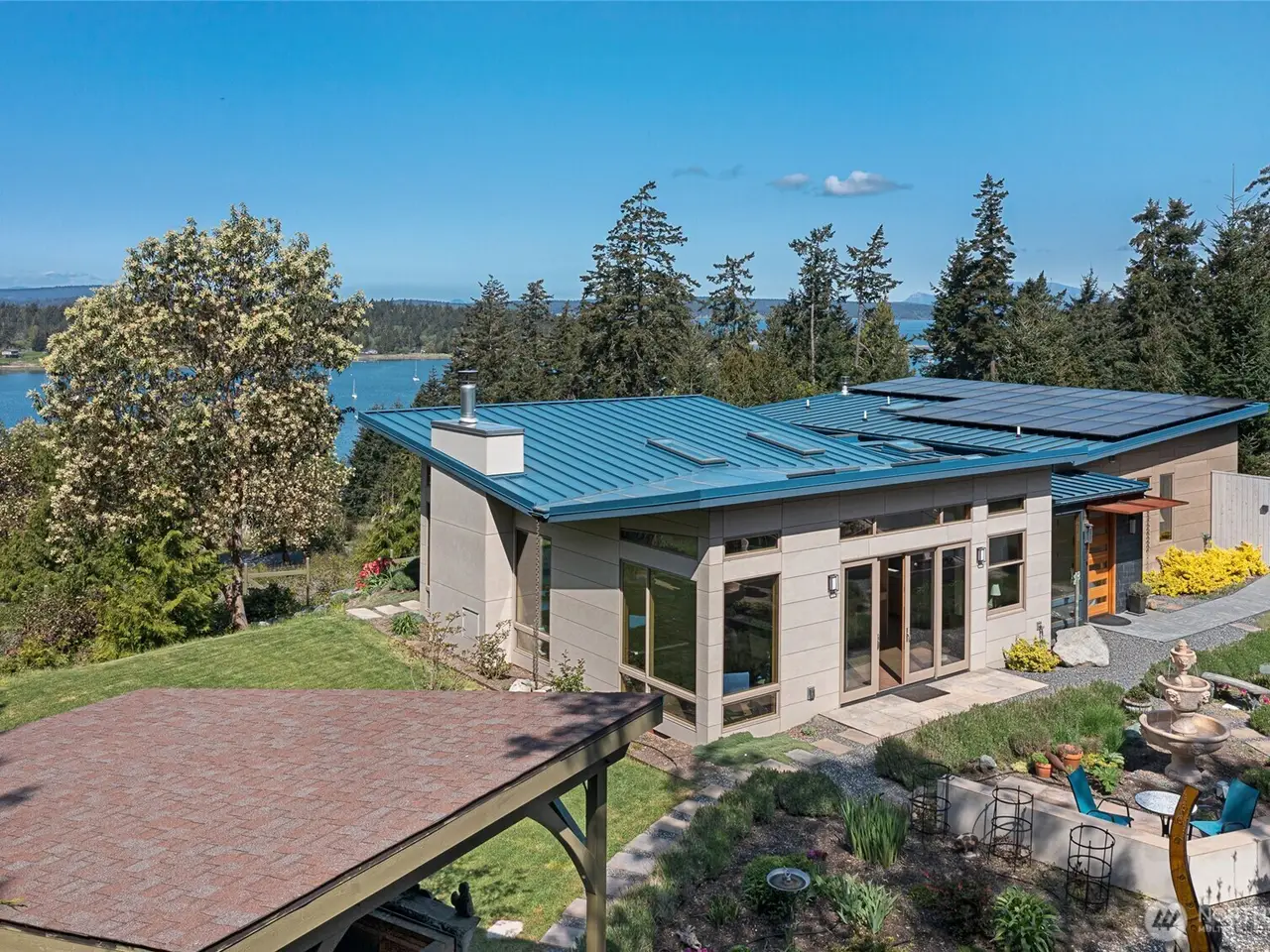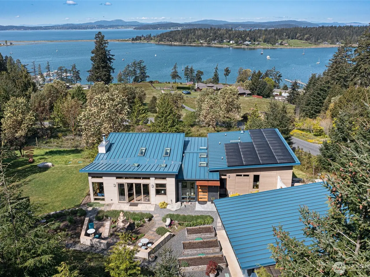 Perched above Fisherman's Bay, with panoramic west-facing views of San Juan, Orcas, and Vancouver Islands, this exceptional newly constructed retreat embodies architectural excellence. Thoughtfully crafted this 3,200-sf residence has 3 ensuite bedrooms, spa-inspired primary suite, a heated soaking tub and a gas fireplace. The chef's kitchen has top-tier Wolf, Cafe, and Miele appliances. A naturally cooled 650-bottle wine cellar, radiant floor heating, fiber-optic, solar panels, EV-ready garage, mature irrigated gardens and fire-resistant building materials complete the offering. Entertain is an outdoor pavilion with a custom wood-fired oven. This is more than a home; it's a sanctuary, a statement, and a rare opportunity on Lopez Island.