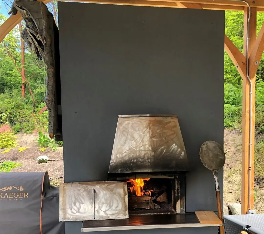 Outdoor pavilion with wood-fired oven