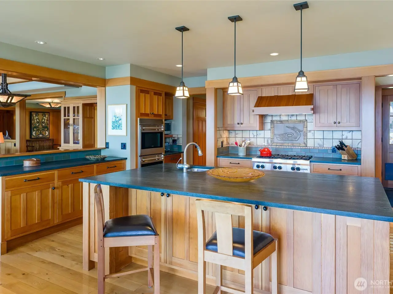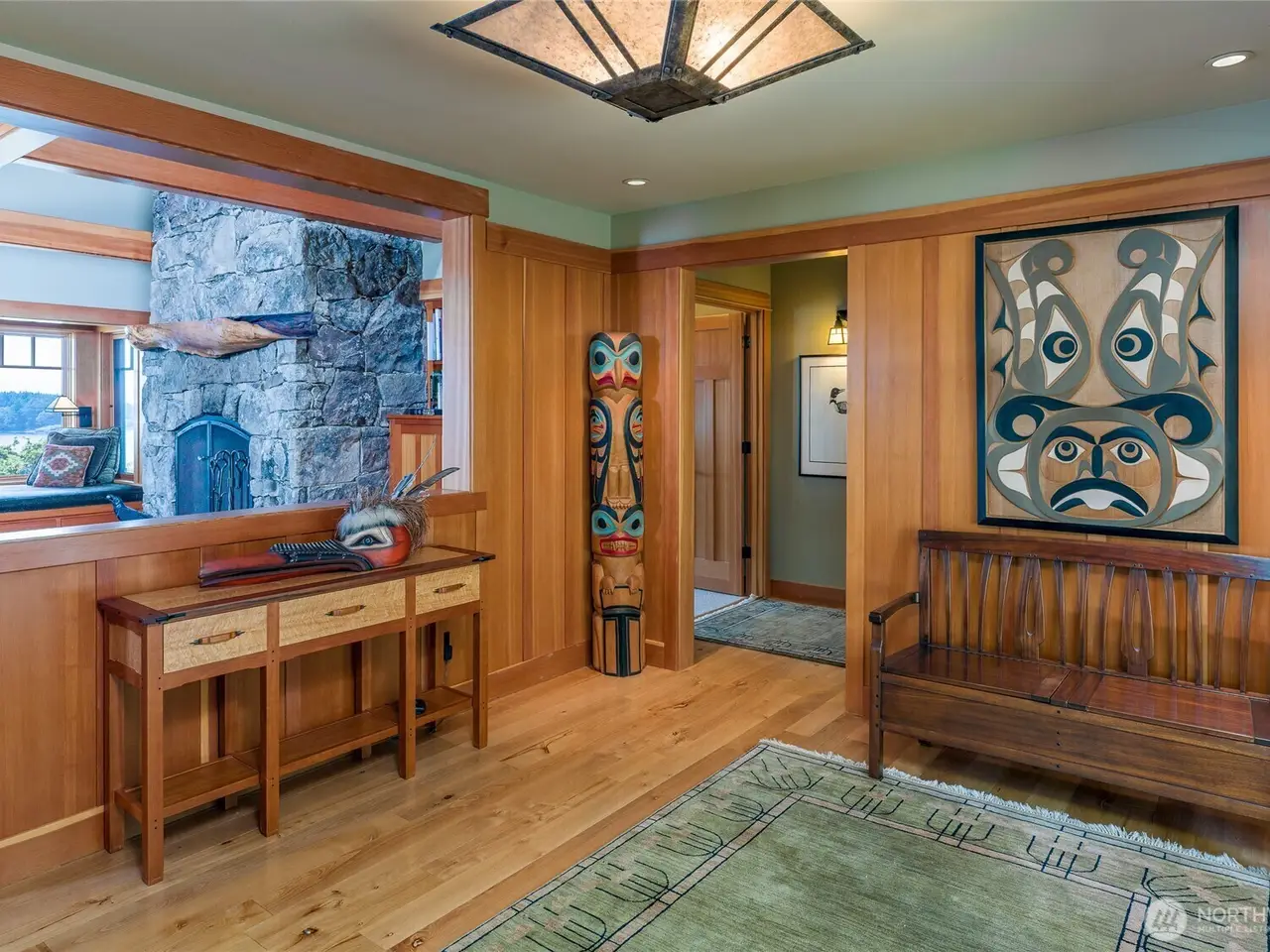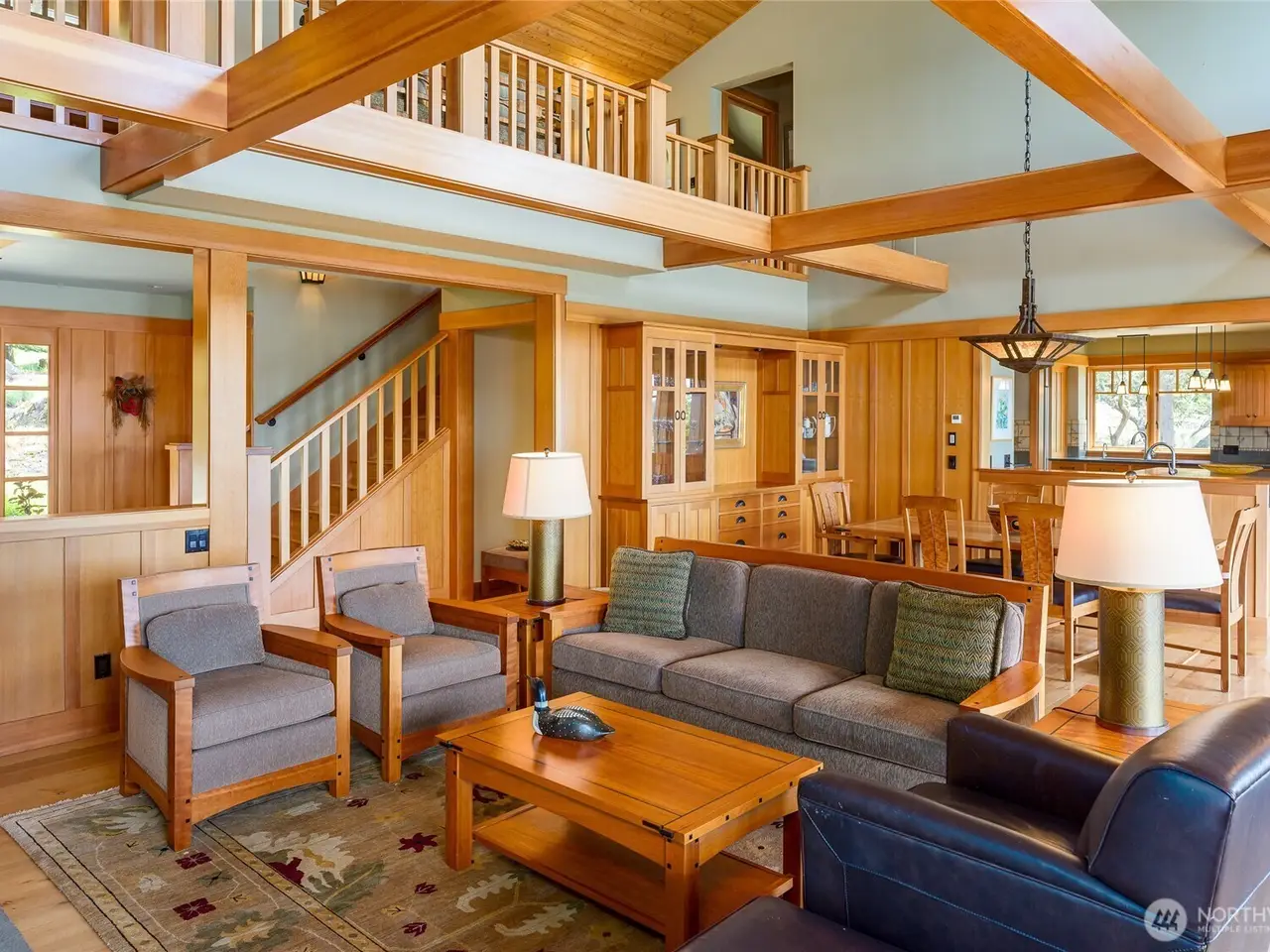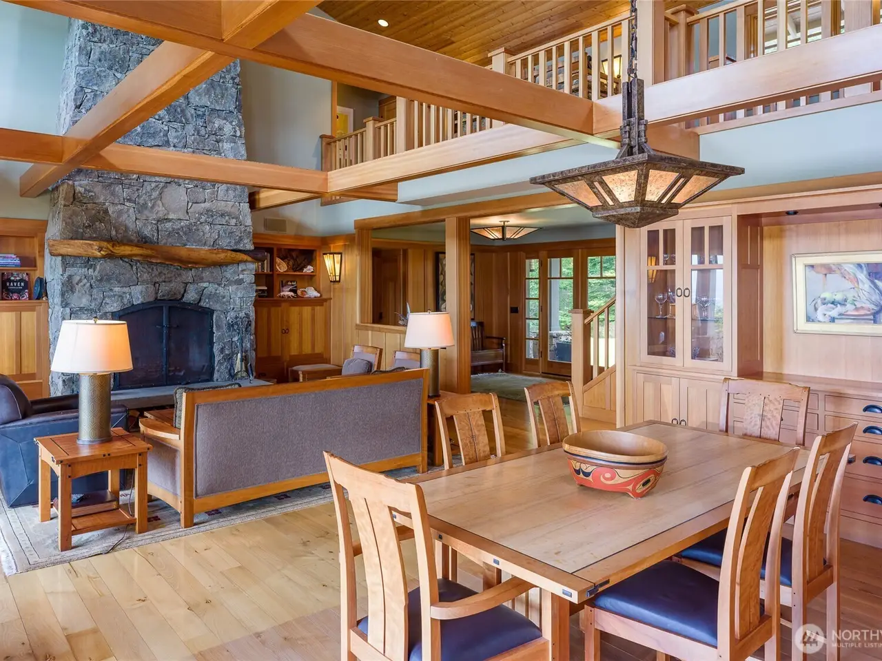 LOPEZ ISLAND LUXURY A rare blend of privacy, distinction & breathtaking views. This custom NW Craftsman sits on 27 waterfront ac overlooking MacKaye Harbor to Vancouver Is & OLympic Mtns. Designed for southern vistas, the 3BD/3BA home features madrona floors, banks of windows & clear fir cabinetry & finishes. Great Room centers on a stone fireplace with built-ins & view daybed. A chef's kitchen offers slate counters, double ovens, Wolf cooktop & breakfast nook. Two ensuite primary bedrooms with walk-in closets, one with covered deck. French doors open to sunny stone patio & eagle-eye views. Detached garage with studio above. Seasonal creek winds thru mature woods & pasture. Large shop/garage, fenced garden, fruit trees, chicken house & more.