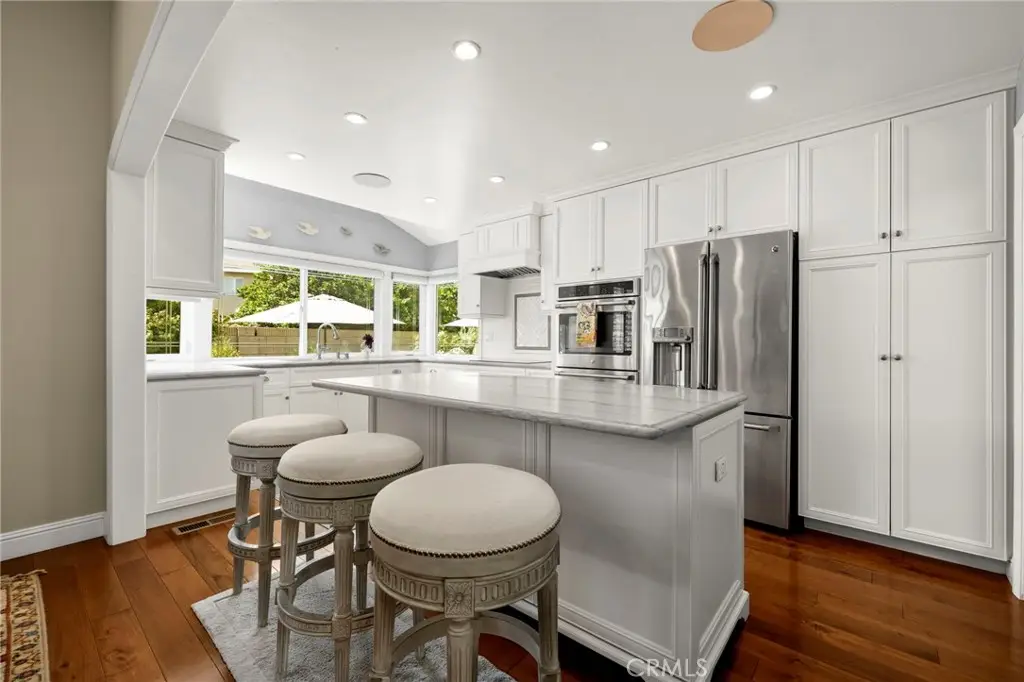 A rare jewel in the heart of Los Alamitos. From the moment you arrive, you're greeted by a professionally designed Huntington-style front yard, featuring elegant slate pathways and a modern drip irrigation system that keeps the landscape pristine year-round. Inside, the home stuns with custom woodwork, designer finishes, and a chef-inspired kitchen that anchors the open, light-filled living spaces. The primary suite offers a spa-like retreat, while every room reflects a thoughtful blend of comfort and style. Step outside into your private backyard oasis, complete with a fully equipped outdoor kitchen, ideal for effortless entertaining and sunset dining. This home isn't just impressive, it's unforgettable. Come experience it for yourself.