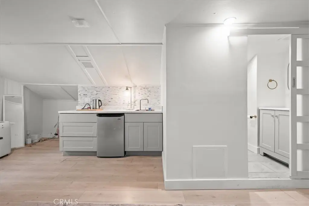 Welcome to this beautifully remodeled and fully fenced single story home, offering 3 bedrooms and 2 bathrooms, plus a private 1 bedroom, 1 bath attic conversion with its own entrance—perfect for guests, extended family, or short term rental income. Step inside to an open, light filled floor plan featuring a spacious living room with a fireplace, an inviting dining area, and an expansive kitchen designed for both style and function. The kitchen boasts a large center island, quartz countertops, abundant cabinetry, and stainless steel appliances including a stove, refrigerator, dishwasher, and microwave. The primary bedroom offers a private ensuite bath, while two additional bedrooms share a full hallway bathroom. Throughout the home, you’ll find durable vinyl plank flooring, recessed lighting, newer windows, central A/C and heat, a tankless water heater, and a convenient laundry closet. The upstairs converted unit provides added versatility with a comfortable living space, bedroom, kitchenette with dishwasher, and a stylish bathroom featuring a barn door. Can easily become part of the main residence. Outdoors, enjoy a private wood deck perfect for relaxing or entertaining, and a gated driveway with parking for up to three cars. Situated in a desirable Mid-Wilshire location, you’ll be minutes from Paramount Studios, Larchmont Village, Hollywood, the Wilshire Country Club, DTLA, Koreatown, and the 101 Freeway. Whether you’re seeking a move-in-ready residence with modern amenities or an investment opportunity with income potential, this home offers exceptional value in a prime location.
