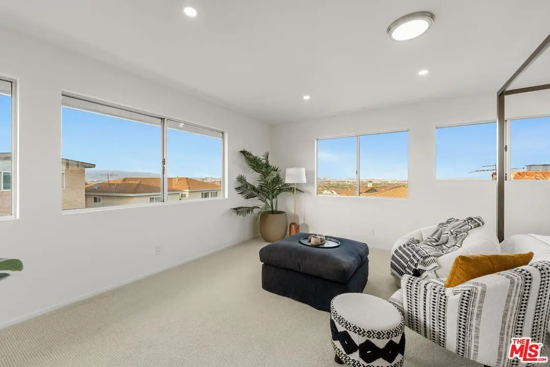 Welcome to this striking Mid-Century Modern residence, thoughtfully updated to blend timeless architecture with today's modern comforts. Perched in a cul-de-sac in the sought-after Baldwin Hills Estates neighborhood, this home showcases expansive use of glass that flood the interior with natural light while framing captivating views of the city and surrounding hillsides. The open-concept kitchen is a true showpiece, featuring brand-new stainless steel appliances, custom solid wood Shaker-style cabinetry, quartz countertops, stainless farm sink, and warm plank flooring. A cozy breakfast area with scenic outlooks offers the perfect start to your day. Flowing seamlessly from the kitchen, the family room boasts soaring vaulted ceilings and a dramatic fireplace, creating an inviting space for both casual living and entertaining. Original refinished hardwood floors highlight the home's character, while the spacious primary suite has been refreshed with designer Berber carpeting, a generous walk-in closet, and sweeping city light views that stretch all the way to Downtown Los Angeles. Two additional bedrooms provide comfort and flexibility, ideal for family, guests, or a home office. Functionality is enhanced with a dedicated laundry room/service porch, two-car attached garage, LED lighting, and abundant storage throughout. Outdoors, the property embraces its Mid-Century spirit with clean lines, natural light, and a sense of indoor-outdoor flow. Adding to its appeal, the home is located just minutes from Kenneth Hahn State Recreation Area and the scenic Baldwin Hills Scenic Overlookperfect for hiking, jogging, or simply enjoying the outdoors. With convenient access to Culver City, the Westside, and DTLA, this property combines style, comfort, and location in one remarkable package. Discover the perfect balance of classic design and modern living!