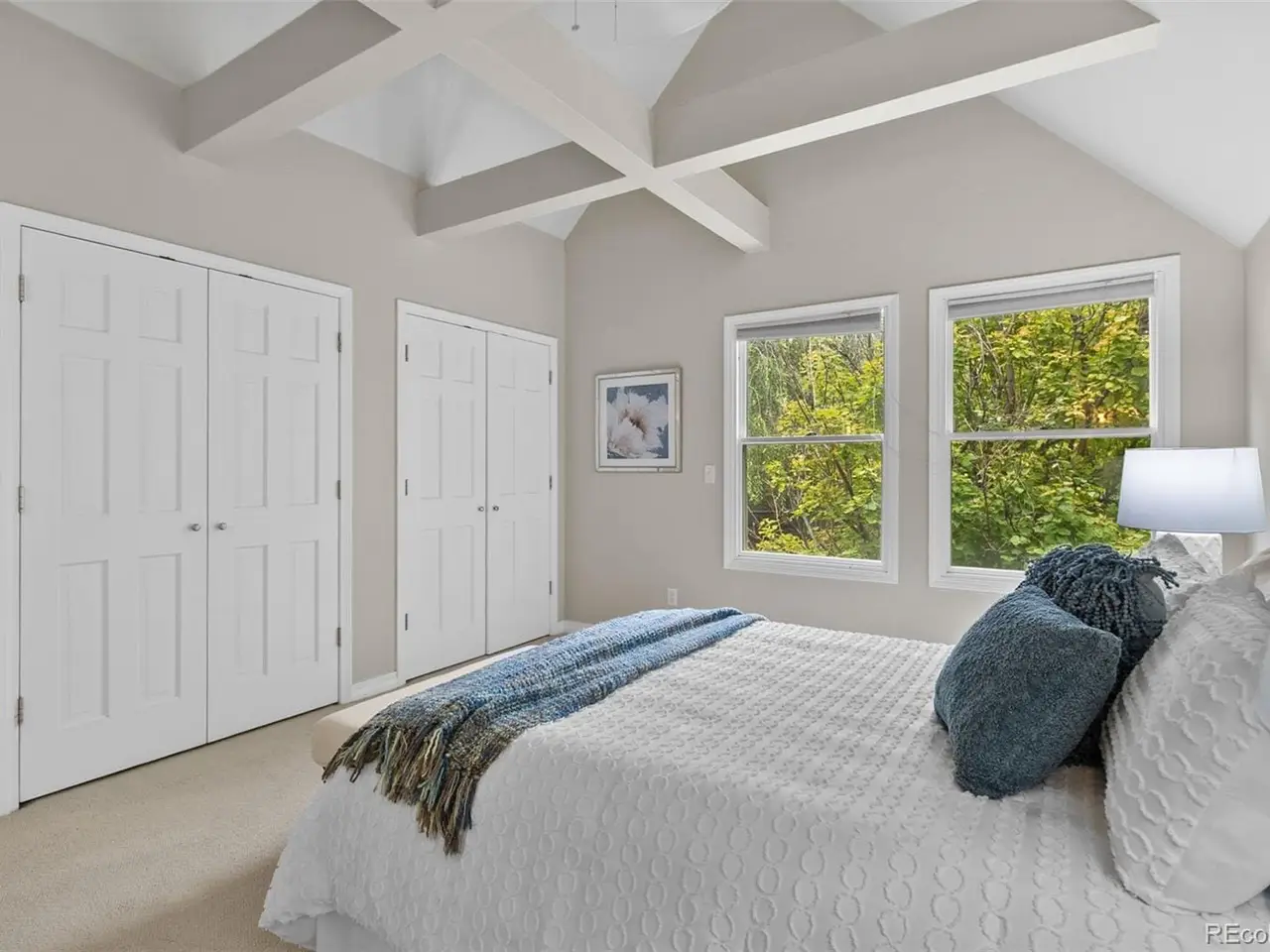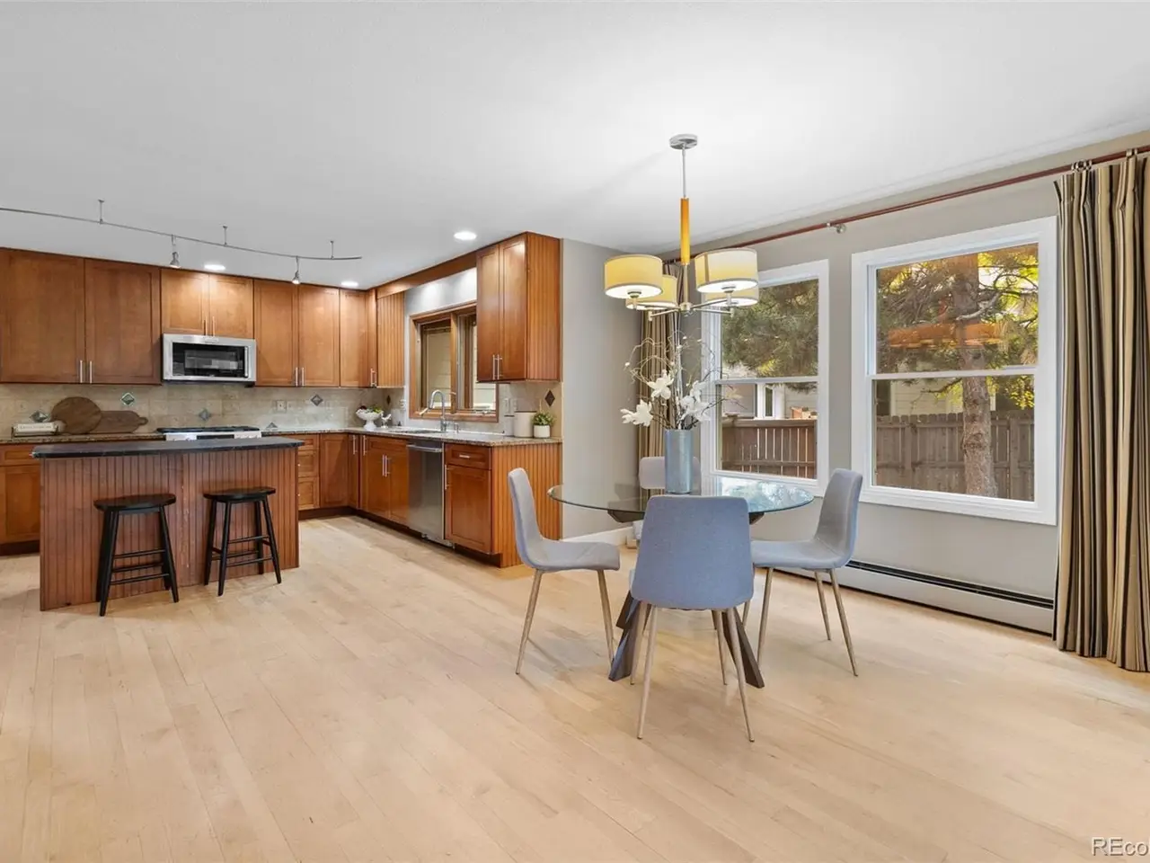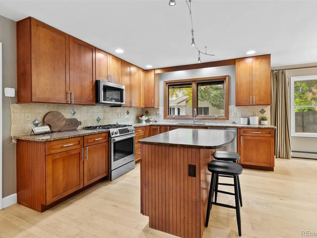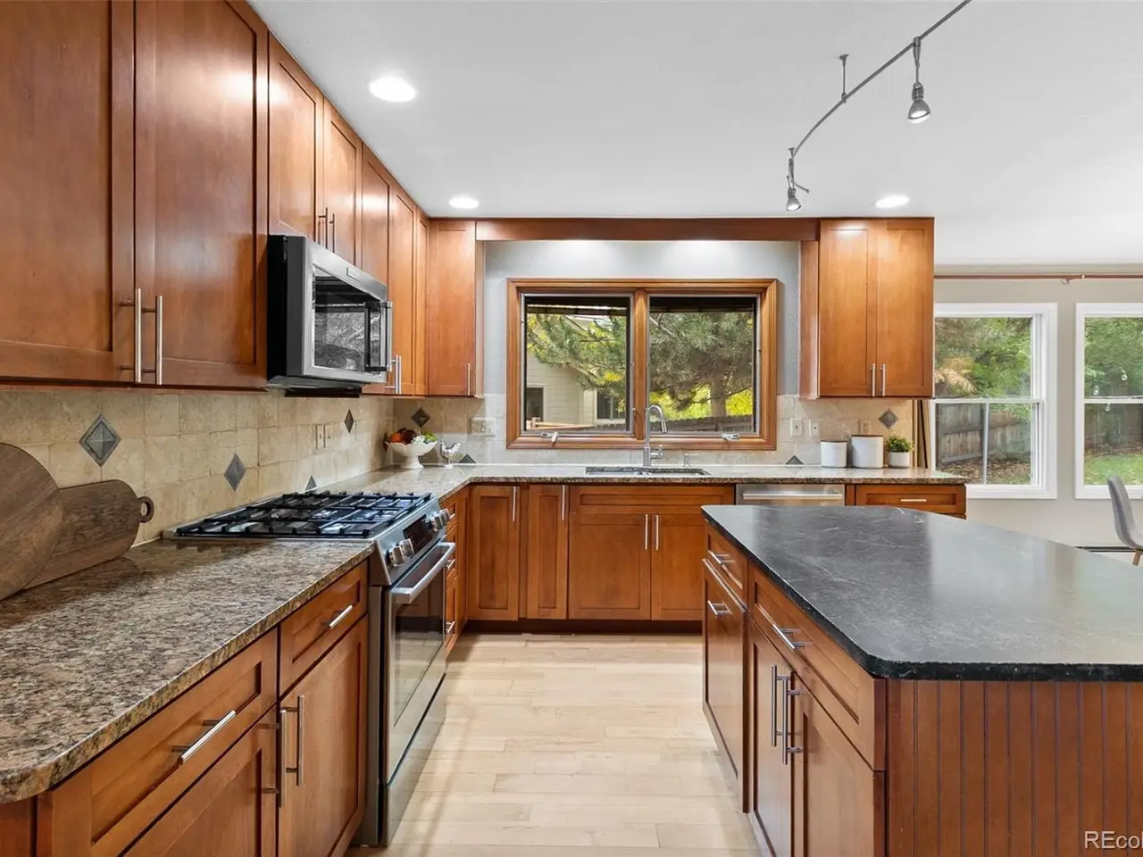 Presenting a distinctive home in a coveted Louisville location. This residence features abundant natural light, highlighted by wood floors, vaulted ceilings, and large windows. The open kitchen is designed for functionality, equipped with custom cabinets, granite countertops, and a central island, seamlessly connecting to the dining area and a spacious living room with a slate fireplace, making it ideal for entertaining.The main level includes a bedroom and bathroom, perfect for guests or as a private office. Upstairs, the primary suite showcases high beamed ceilings and dual closets, offering a comfortable retreat. Two additional bedrooms on this level provide generous space and light, enhanced by dormer windows and unique archways that add character to the home.The finished basement offers a versatile living area, including a cozy living room, a media/bonus space suitable for games or relaxation, and a renovated bathroom and bedroom, providing extra flexibility. Ample storage options are available throughout the home.The attached oversized garage provides space for a workshop and storage for bikes and outdoor equipment. Step outside to enjoy a wraparound deck overlooking a large yard and garden area, perfect for outdoor living and entertaining. Situated on a quiet cul-de-sac, this home offers direct access to trails, ensuring a peaceful environment while maintaining convenience. This is a rare opportunity to own a home in a desirable neighborhood, with no HOA fees, and easy access to Boulder and the many amenities that Louisville has to offer.