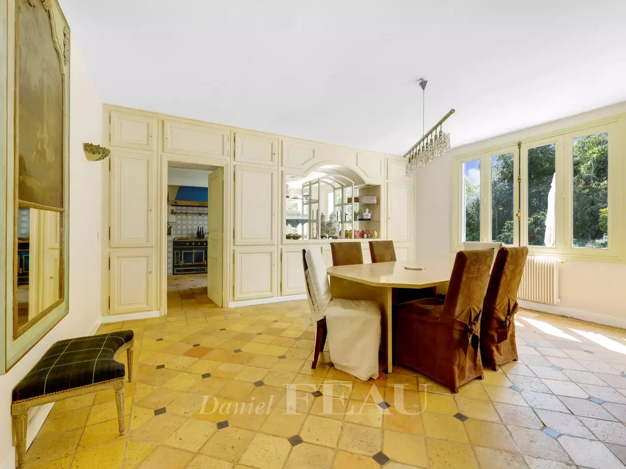This superb 17th century property located near Château de Voisin and Château du Barry was the secondary residence of the Prefect of Paris in the early 20th century and subsequently residence for the Dutch Ambassador, witnessed by the magnificent tulips that bloom in spring. Set in 1500 sqm of walled grounds, it includes a 290 sqm main house with a near 40 sqm living/reception room and library, a kitchen with an adjacent dining room (all opening onto a sunny terrace), and a storage room accessing a wine cellar. Upstairs are six bedrooms and four bath/shower rooms. The property also includes a 30 sqm studio apartment, and a double garage. In a convenient location near the stations, the shops and schools.