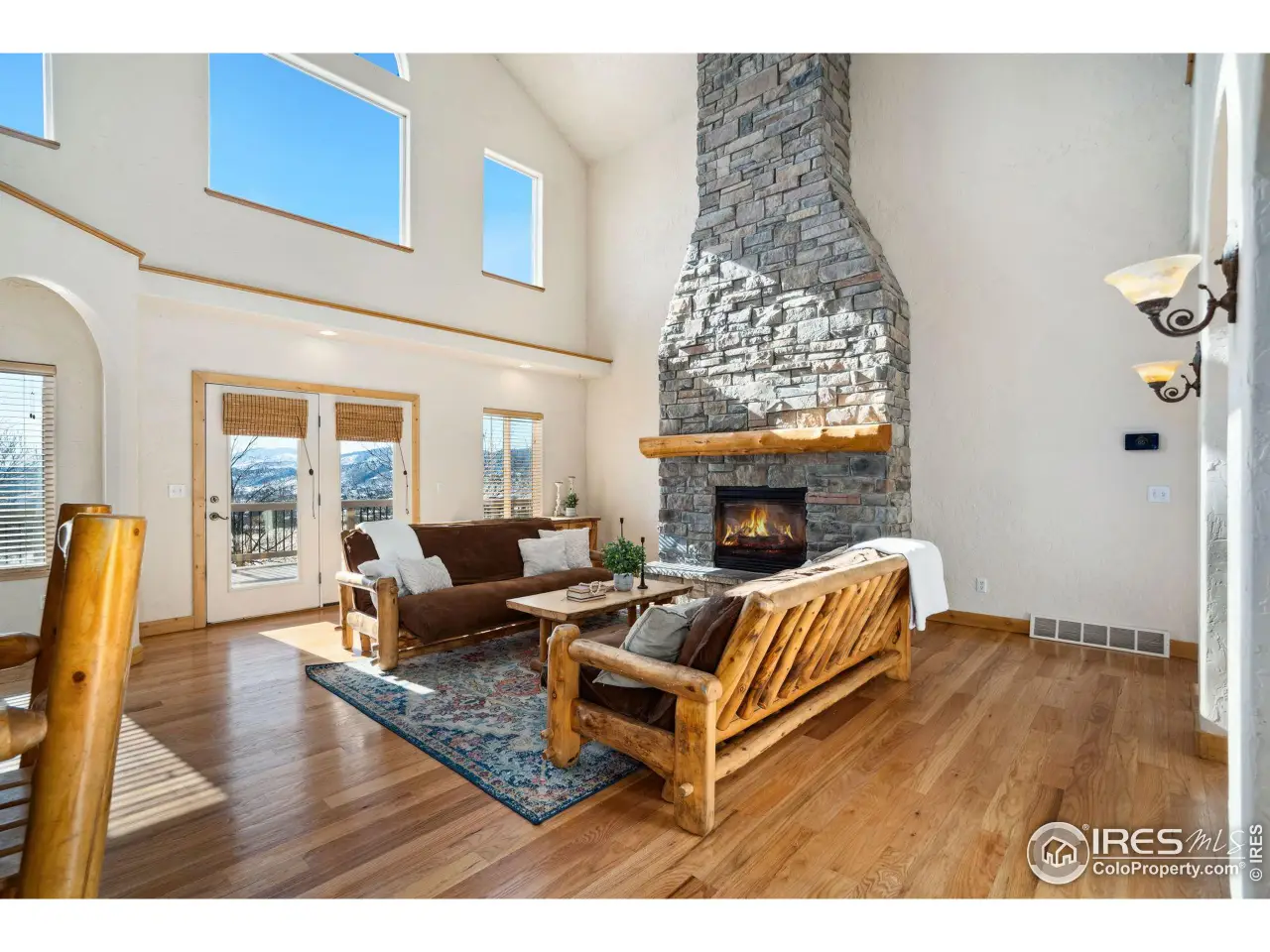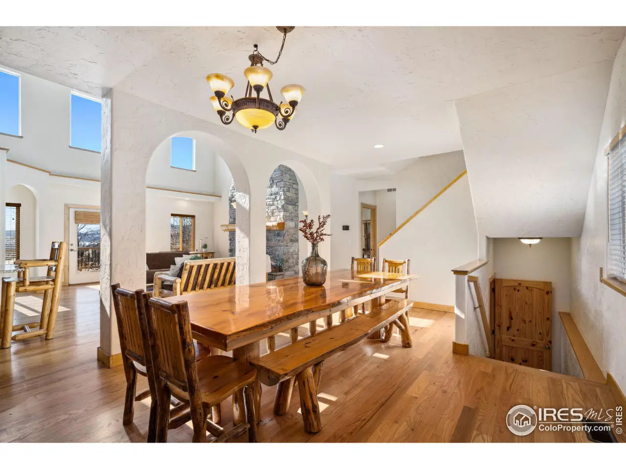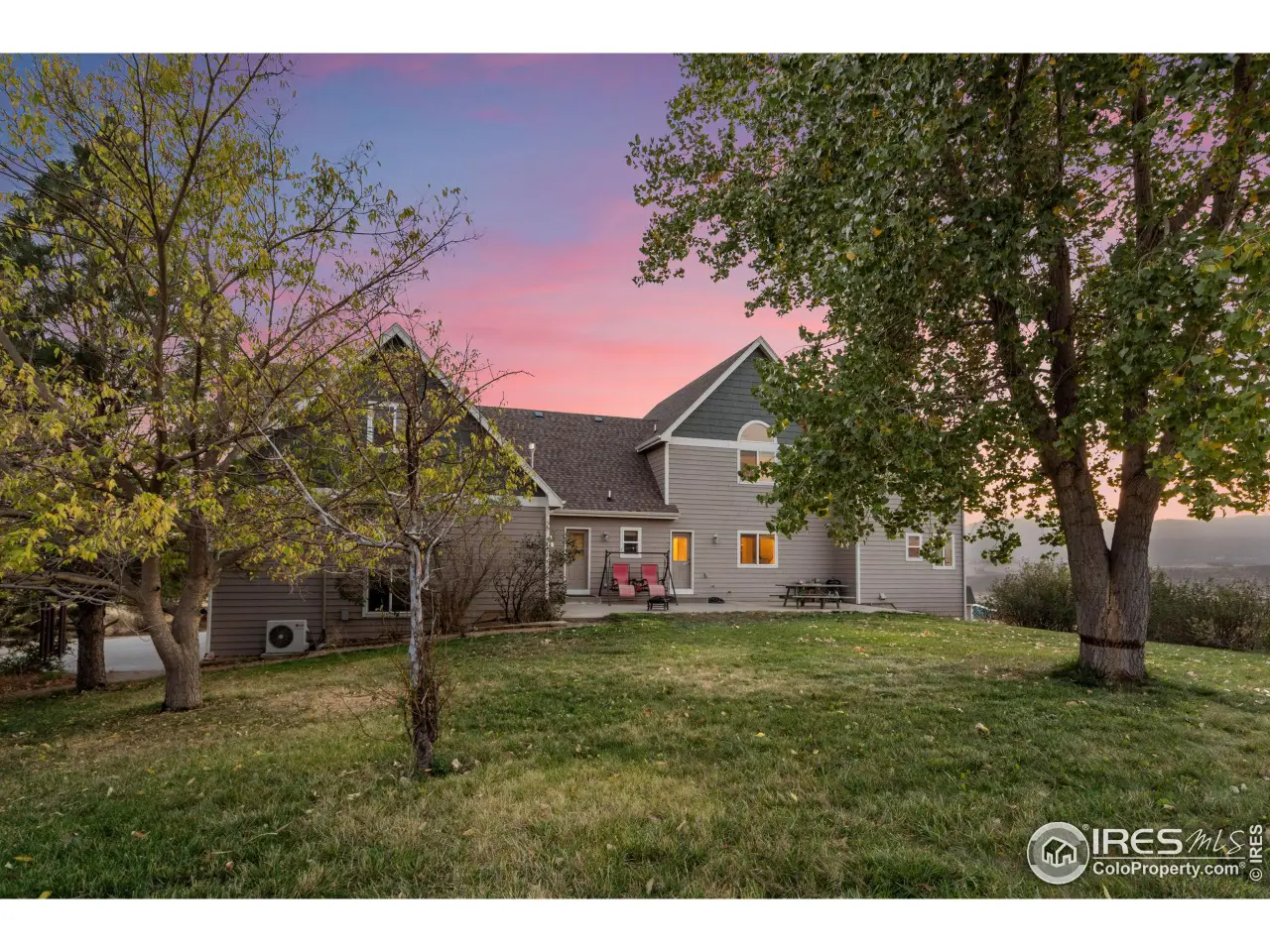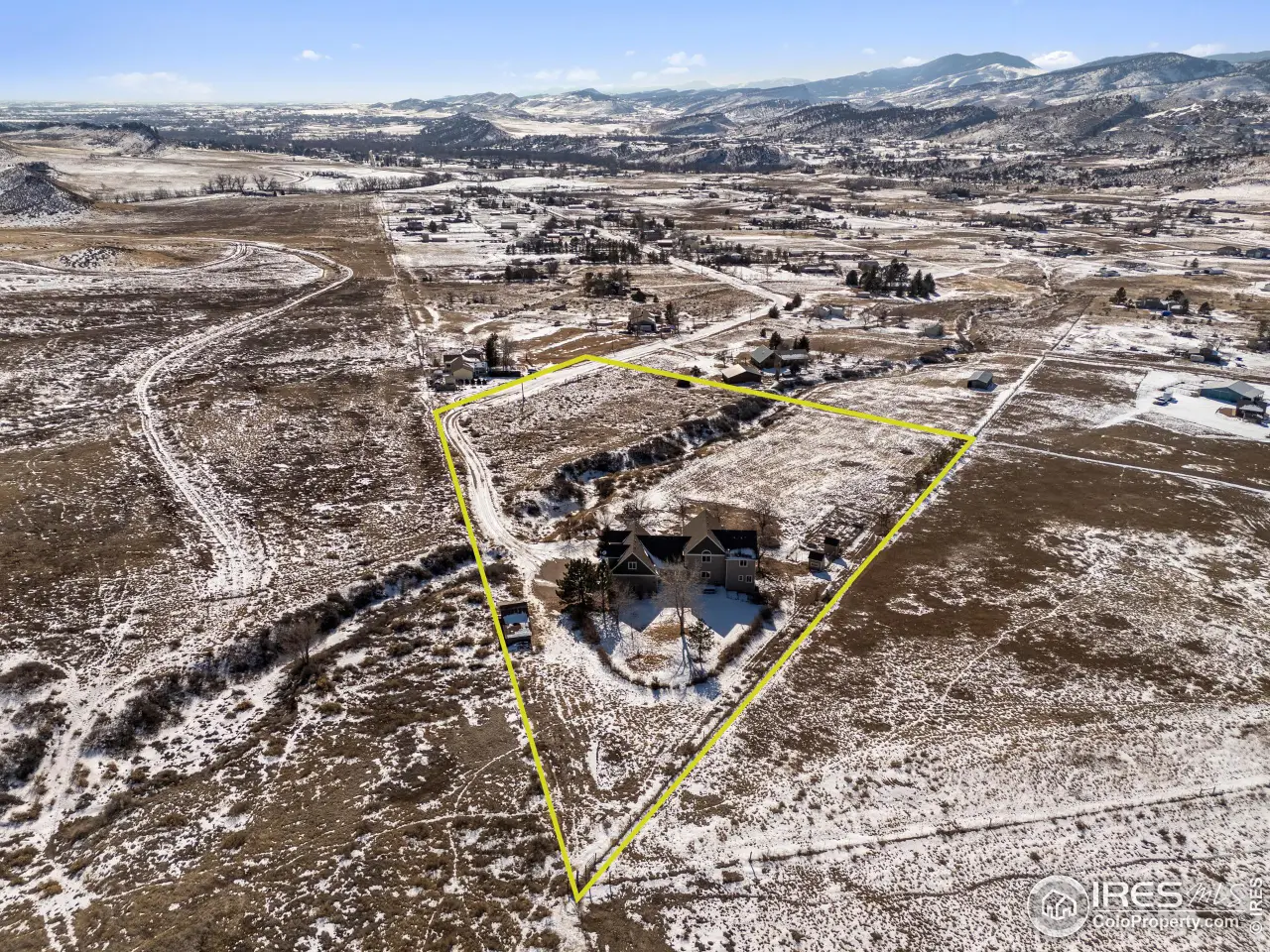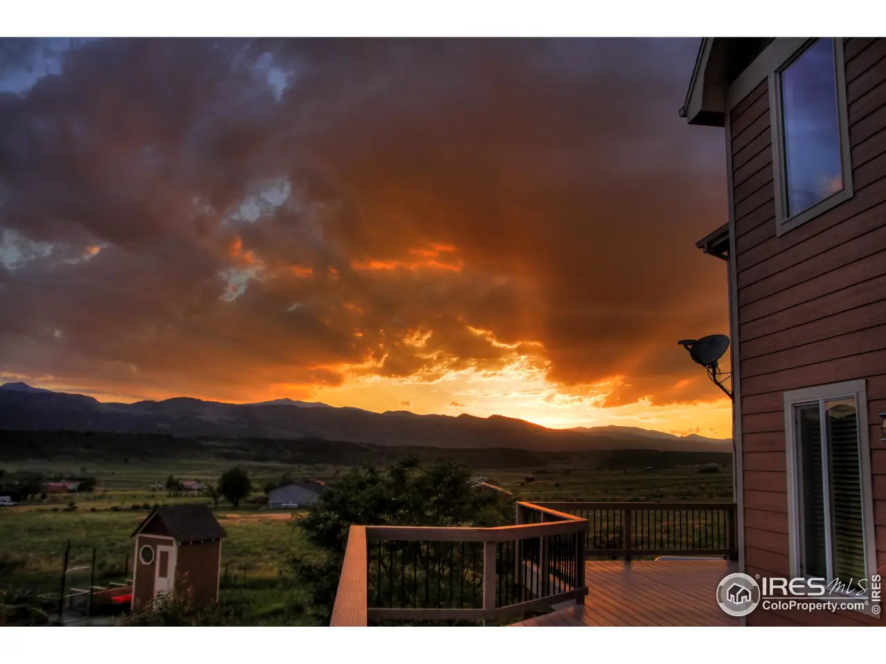 More than a house - this is a lifestyle. Perched on 4.45 acres with sweeping views of the foothills and Devil's Backbone, this 5,000+ sq ft custom home is a sanctuary for dreamers, artists, adventurers, and anyone who feels connected to nature. Every day here feels like a story worth telling. Sunsets paint the sky, and rainbows span the foothills. Great horned owls perch on the rooftop as deer wander through the yard below. From backyard picnics, Nerf battles, and holiday feasts with dozens of friends, to weddings, photo shoots, and peaceful mornings in an art studio - this property will be your backdrop for countless unforgettable memories. With panoramic views of the foothills and Devil's Backbone, you're immersed in beauty from every angle. The county-owned open space directly behind ensures your views and privacy will never be interrupted. In winter, sledding and cross-country skiing. In summer, hiking, biking, and stargazing under spacious skies.The home is designed for both comfort and gathering. A soaring great room centers on a dramatic stone fireplace. The kitchen features granite counters and knotty alder cabinetry. A main-floor primary suite provides a private retreat, while versatile lofts, bonus rooms, and a walk-out basement with Cantina-style bar create space for every need.Bring your horses, keep chickens or goats, launch model rockets, or simply relax in a hammock under the trees. Here, you don't keep up with the Joneses - you live your own story. This is more than a property. This is Colorado living at its finest - inspiring, adventurous, and unforgettable. Brand new roof and Pre-inspected for Buyer's peace of mind.