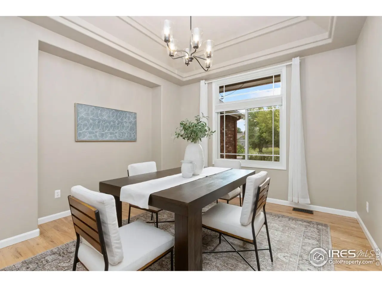 Welcome to this beautifully maintained ranch-style home tucked away on a quiet cul-de-sac in the highly sought-after Mariana Cove neighborhood of West Loveland. Enjoy close access to Boedecker Reservoir and Mariana Butte Golf Course, offering a perfect blend of outdoor recreation and peaceful surroundings. Situated on a generously sized and beautifully landscaped lot, this home features a traditional floor plan that separates living spaces for added privacy and functionality. The main level includes a formal dining room, a comfortable living room, and a bright, functional kitchen. The spacious primary suite features a luxurious 5-piece bathroom and access to a private deck-perfect for quiet mornings or relaxing evenings. Two additional bedrooms, a full bath, and a half bath complete the main level. Fresh interior paint and newly refinished hardwood floors enhance the home's warm and welcoming character. A screened-in porch just off the main living area opens to a wood deck overlooking the lush backyard, offering a perfect space to relax or entertain. The finished walkout basement adds incredible living space, including a large family room, a recreation room with a wet bar, a fourth bedroom, and a 3/4 bathroom. The lower level opens out to a spacious backyard patio, seamlessly connecting indoor and outdoor living. The home also includes a large three-car garage, ideal for vehicles, storage, or hobbies. Set in one of Loveland's most scenic neighborhoods, 5418 Nantucket Ct is a rare opportunity to enjoy comfort, space, and a prime location in the heart of Mariana Cove.