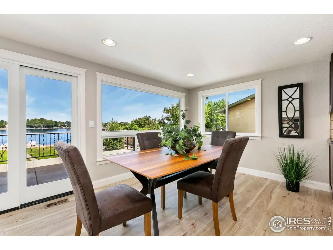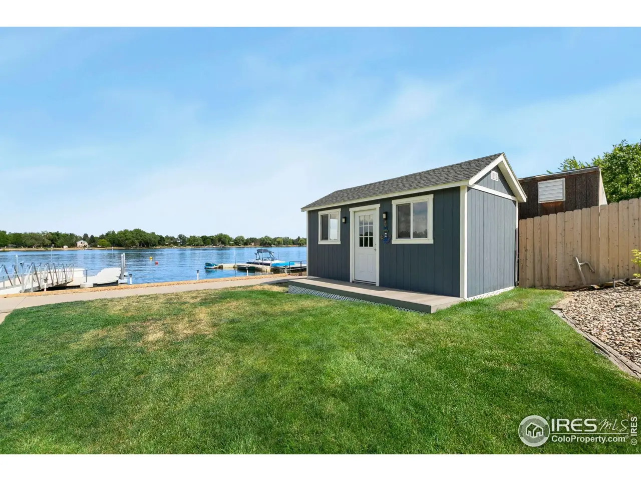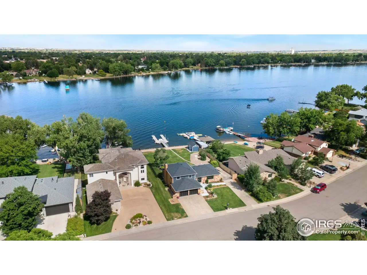 Experience premier lakeside living on the shores of highly coveted Lake Loveland-with no HOA restrictions. This fully remodeled and thoughtfully upgraded home offers a rare opportunity to enjoy direct private lake access, complete with your own personal U-shaped dock -perfect for boating, paddleboarding, or simply relaxing by the water. Set on a spacious lot, the home is designed for both everyday luxury and effortless entertaining. Multiple outdoor spaces-including a screened-in patio, large deck, and a fully fenced yard with remote gate access-offer endless options for gatherings or peaceful retreats. A dedicated storage shed provides room for all your lake and water toys. Inside this home, you'll find an open, light-filled layout highlighted by massive windows that frame unobstructed lake views. The custom-designed kitchen features knotty alder cabinets, gleaming quartz countertops, premium KitchenAid appliances, and elegant finishes throughout. Premium flooring flows across all levels, adding warmth and continuity to the space. The livable walk-out basement is ideal for guests or multi-generational living, complete with a kitchenette, full bath, and heated floors. Multiple levels throughout the home allow for flexible entertaining areas, whether you're hosting a sunset cocktail hour by the lake or a cozy movie night indoors. With top-tier design, unmatched lake access, no HOA, and versatile indoor-outdoor living, this one-of-a-kind Lake Loveland property is the ultimate Colorado lifestyle destination.