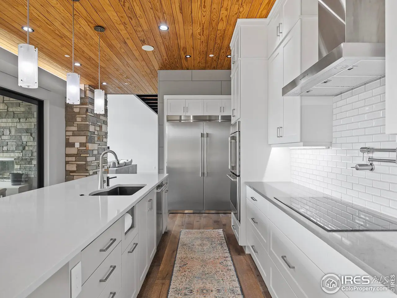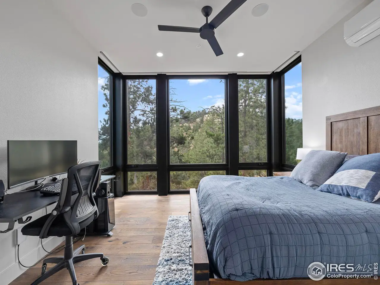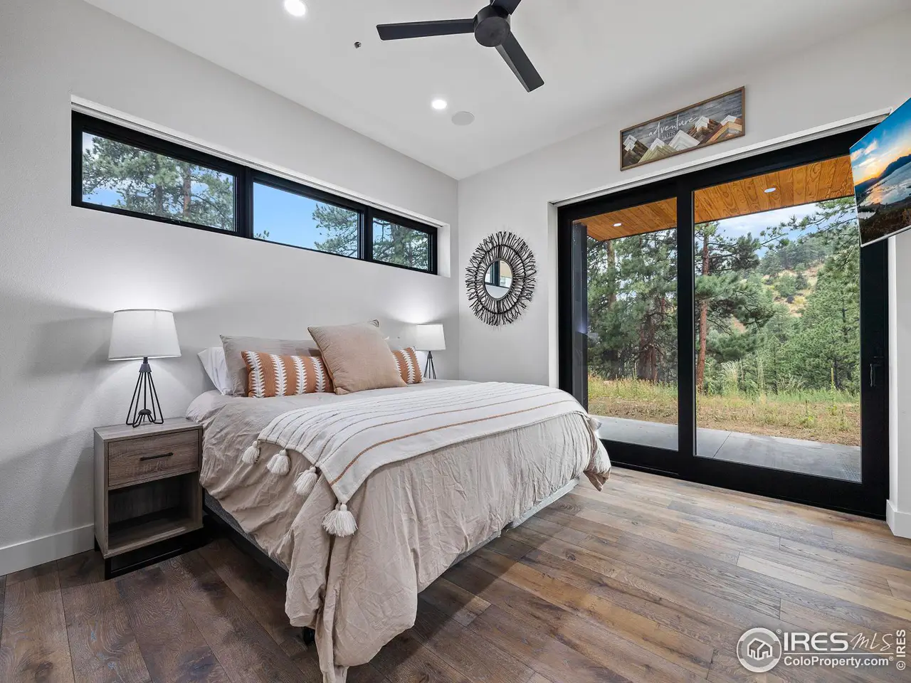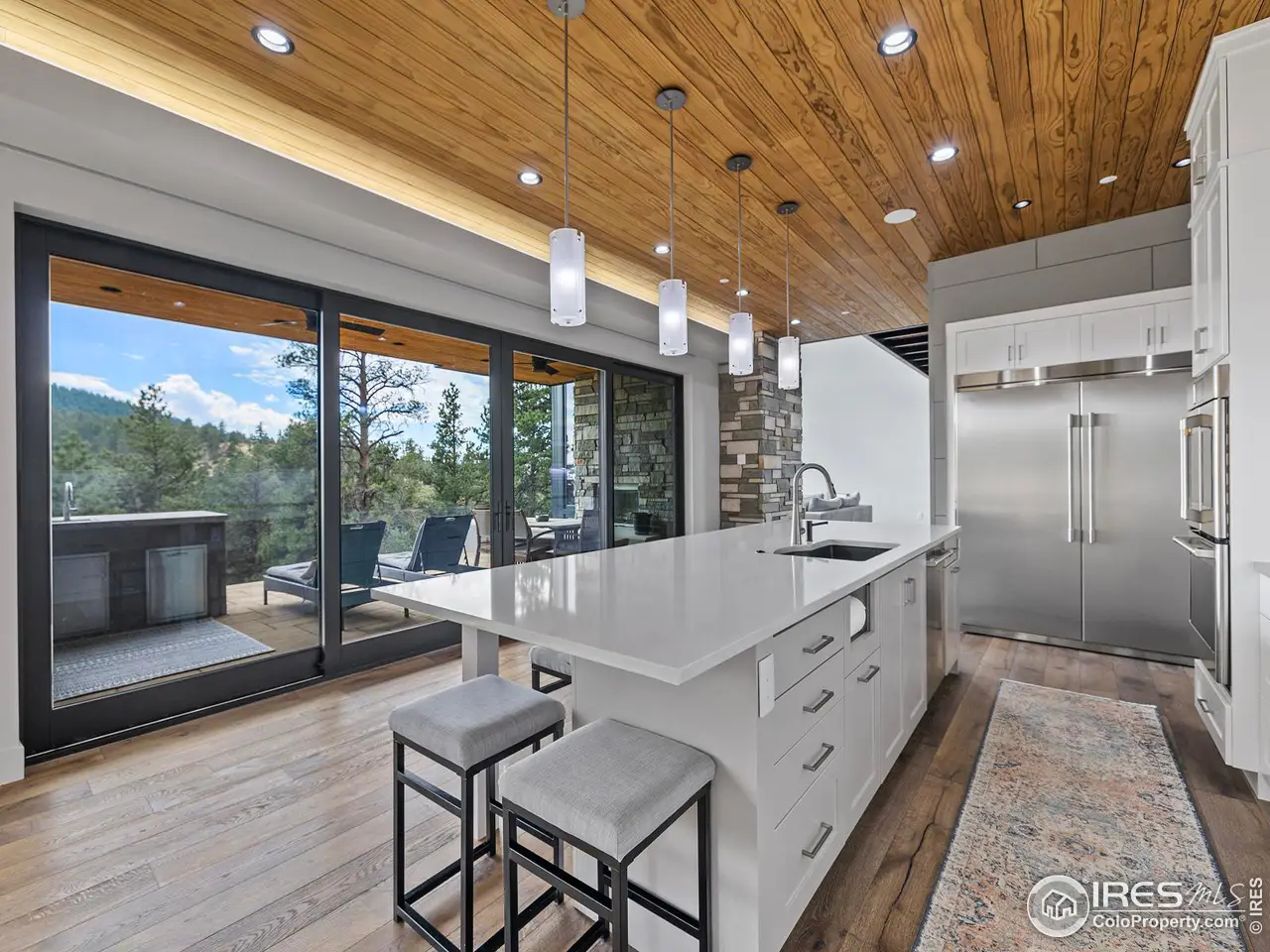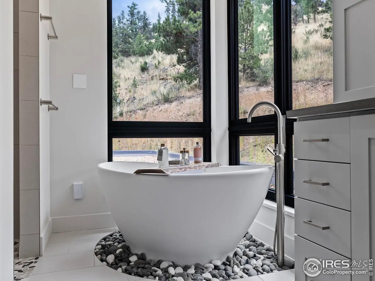 This is your rare chance to own a truly one-of-a-kind 6801 sq ft mountain modern retreat, complete with a brand new 2025 GMC HUMMER EV, on 40 private acres with private trail access to Horsetooth Mountain via Lory State Park, which borders the property on two sides. Whether you're seeking a full-time luxury residence, a high-end second home, or an excellent investment, this property delivers turnkey perfection with trusted service providers already in place. Only 12 miles from Fort Collins, with easy access to Boulder, RMNP, and DIA, this amazing home offers seamless luxury in one of Colorado's most iconic landscapes. Just three years old, impeccably designed, and tucked behind the gates of Redstone Canyon and surrounded by Roosevelt National Forest, this home offers views that go on forever, a profound sense of quiet, and nature in every direction. Floor-to-ceiling windows frame dramatic mountain vistas where passing storms and golden sunsets give way to full rainbows in the valley below - a rare, ever-changing display of Colorado's natural beauty. Crafted by the award-winning Vertical Arts and Hammersmith Structures, the architecture fuses warm materials like steel, stone, and concrete with soaring ceilings and wide-open sightlines. This is a home built for real living - thoughtful storage, durable materials, zero-maintenance and fireproof exterior finishes, and energy-conscious systems including solar/geothermal prep, EV chargers, heat pumps, and a 5,000-gallon water cistern. The home features a chef's kitchen with commercial appliances, a massive island, and a full outdoor kitchen. Thoughtfully designed living spaces include flexible offices, a spa-like main suite, en suite guest quarters, a bar and game room, home theater, and a reinforced safe room. Outdoors, enjoy private trail access and an oversized garage with EV chargers and optional third car bay. Every detail is handled-just move in and enjoy.