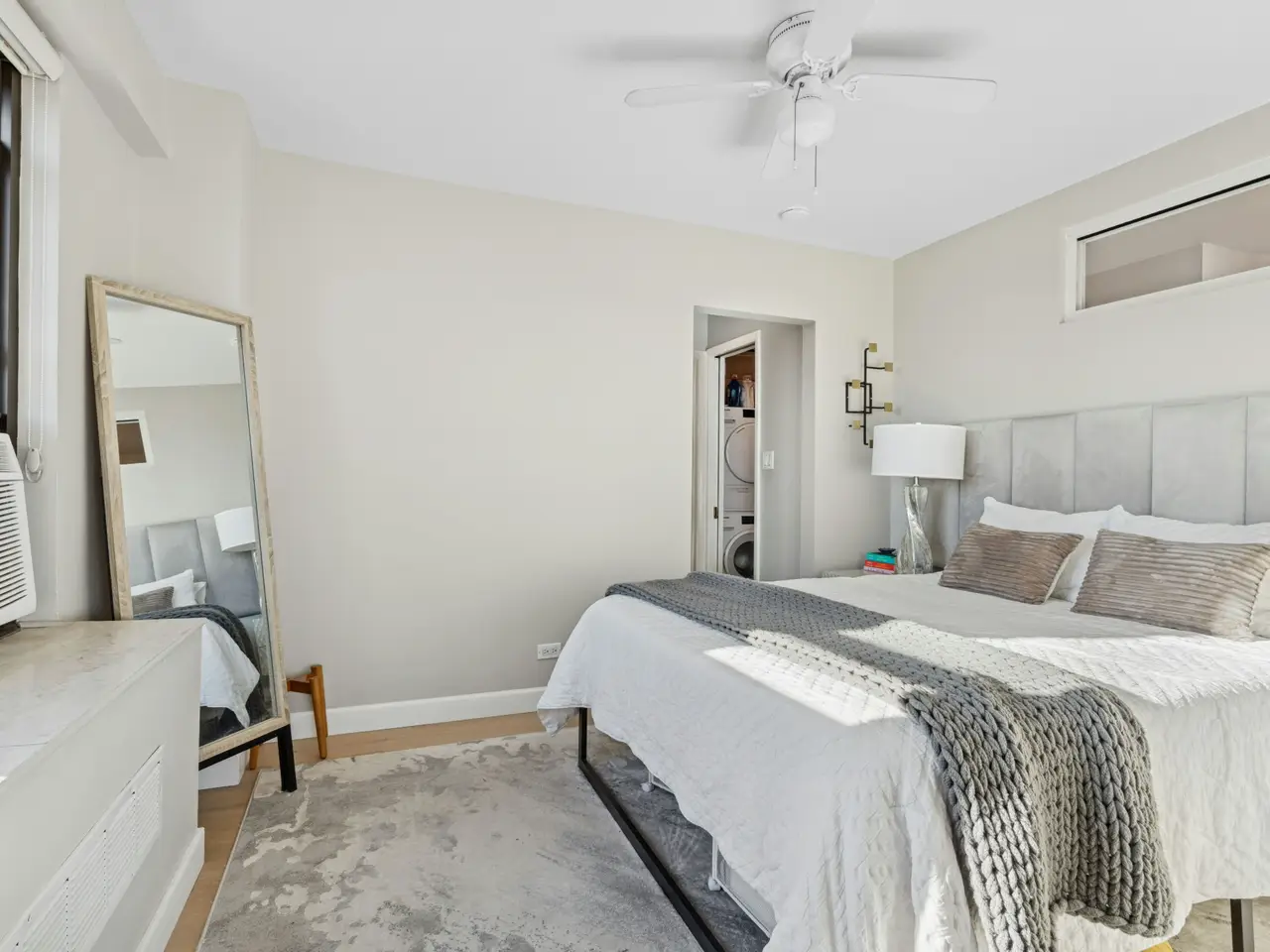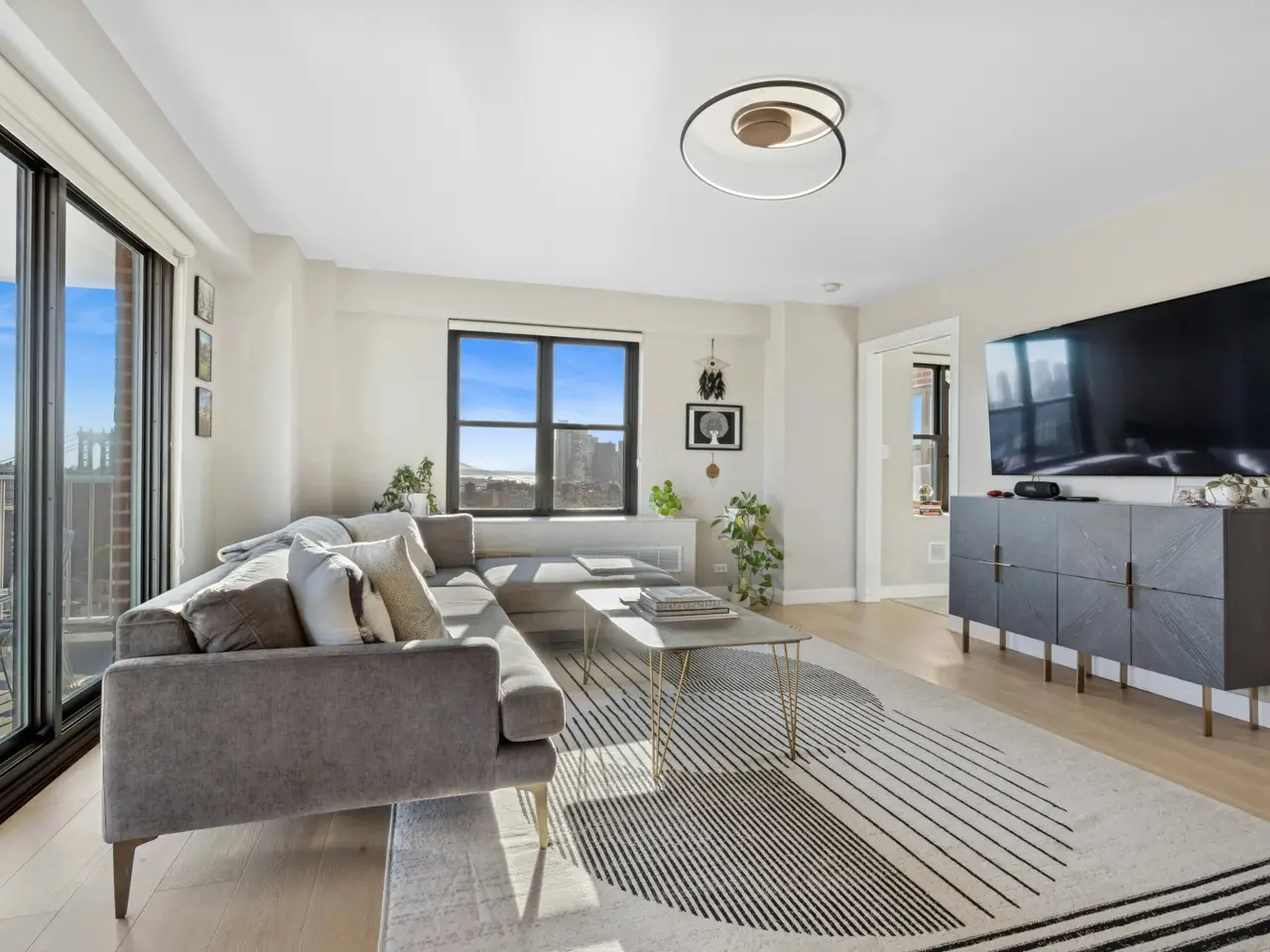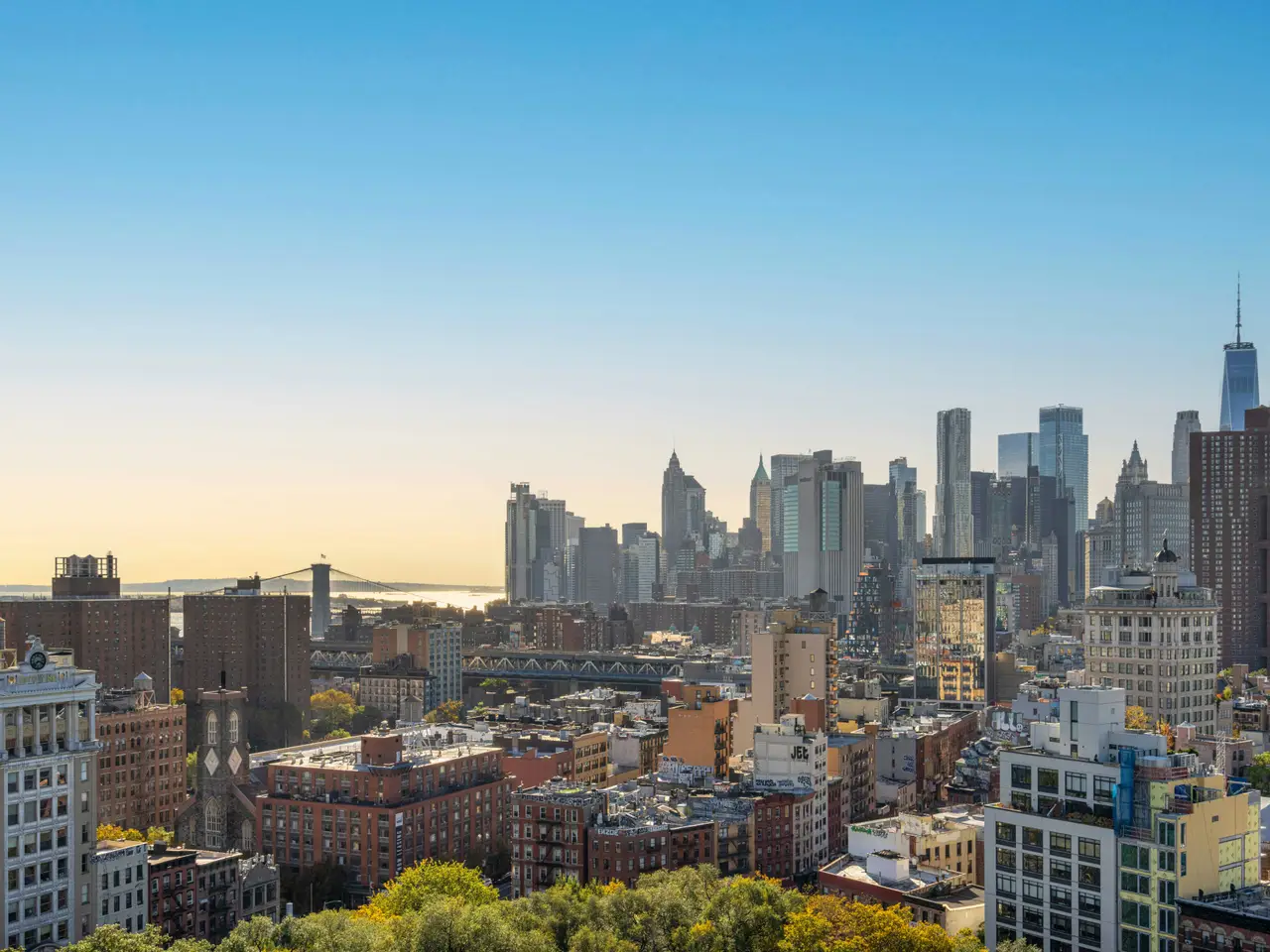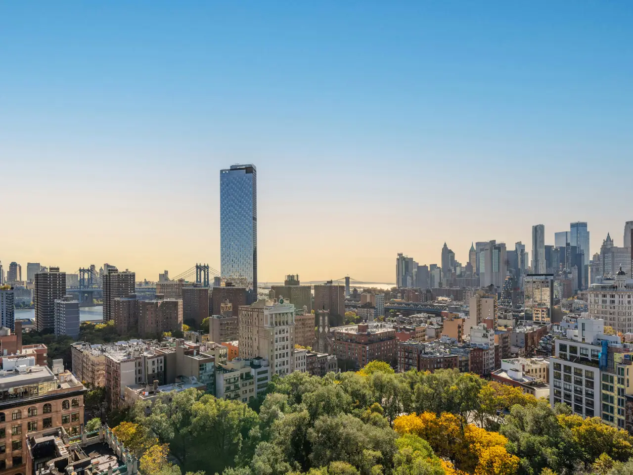 One of a Kind! This fully renovated top floor home features an expansive great room opening to a 125 square foot private terrace with dramatic views to the downtown skyline, East River and beyond! Two walls of outward facing windows serve up southeastern and southwestern exposures for excellent light and air throughout. Daytime views, sunsets and nighttime views are equally breathtaking! Enter via a welcoming foyer (with large coat/storage closet) and be ushered into the modern open concept plan. The windowed kitchen comes complete with an abundance of warm wood cabinetry in maple, a custom dining bar, striking Zodiaq quartz countertops, and a suite of stainless appliances (Frigidaire double door refrigerator with built in water and ice dispenser, LG dishwasher, Kitchen Aid slide in gas range, and LG ThinQ microwave hood). Just beyond is a spacious living/dining with double exposures and open views for gracious entertaining or repose. The primary bedroom with en suite bath includes a huge walk-in closet with your own Miele washer & dryer! The primary bath is done in crisp white subway tile complemented by a striking marble Herringbone mosaic floor and includes a deep soaking tub, rain stytle shower with separate hand held, and a stylish double door vanity. A special bonus room, unique to this design, serves nicely as a separate home office, nursery, or work out space (its current use). Wide plank white oak floors unite the space throughout further accentuating the light and airy feel of this penthouse style home. Seward Park Co-op amenities include a fully equipped gym, two private gated parks, playroom, community room, in building laundry, 24 hour lobby attendant/security, and on site management and maintenance.. Close to great restaurants, cafes, galleries, etc. on Ludlow, Orchard, Division and Broome streets. Steps to Essex Crossing with Trader Joe's, Target, Regal Cinema, Essex Market and more! Super convenient to all transportation with the F,J M, and Z trains just 1.5 blocks away at Delancey/Essex.