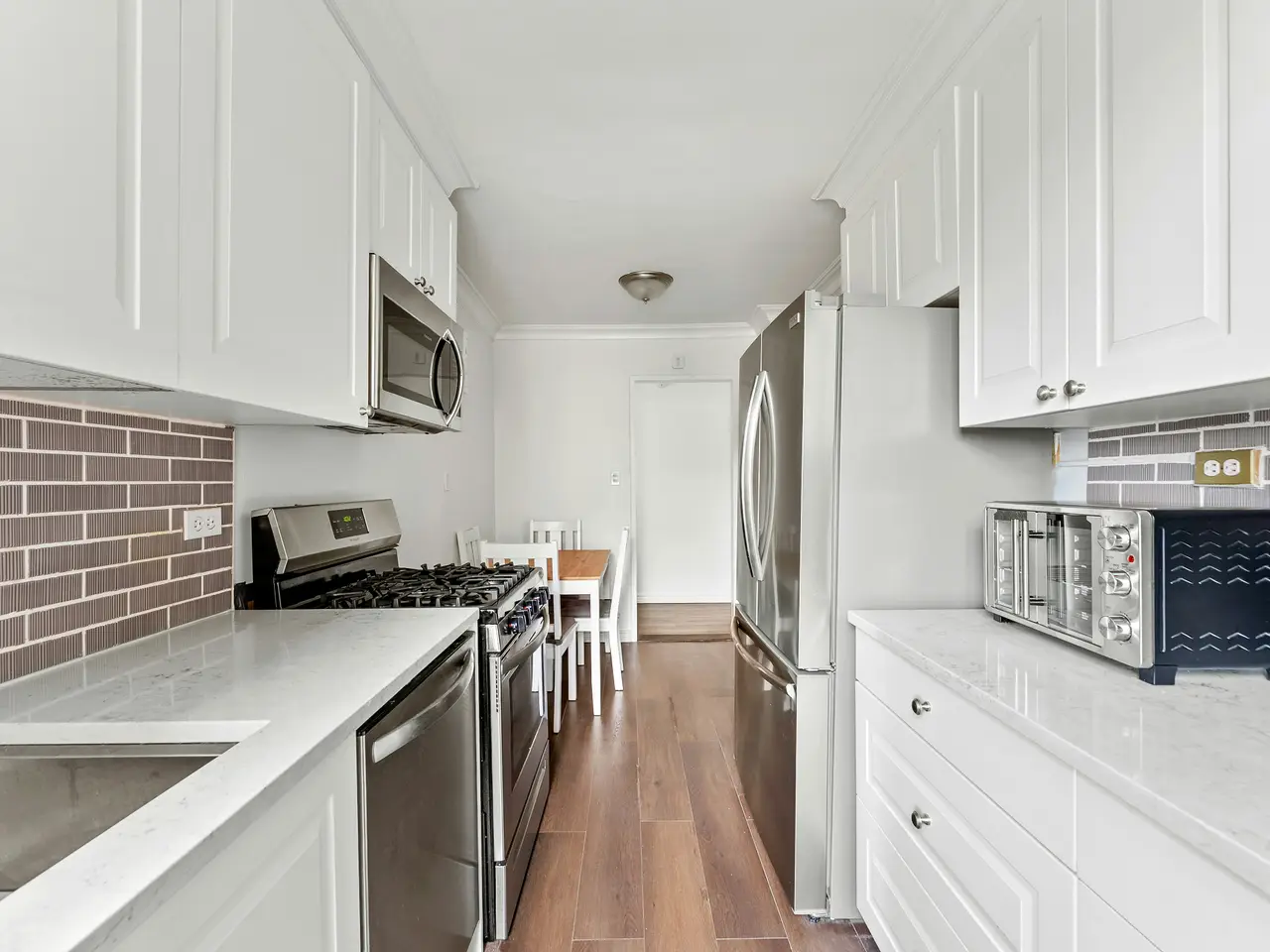 Spacious 3-Bedroom with Skyline Views on the Lower East Side! Make yourself at home and move right into this recently gut-renovated 3-bedroom, 2-bathroom apartment that blends modern comfort with vibrant downtown living. With its generous layout and fresh renovations this apartment offers the space and comfort you've been looking for in the city. The heart of the home is the large, light-filled living room, where you can gather for movie nights or enjoy the skyline views. The windowed eat-in kitchen offers plenty of space for shared meals, homework at the table, or casual morning coffee. Each of the three well-sized bedrooms offers great light and views. The two full bathrooms have been stylishly renovated with contemporary fixtures and finishes. There are new wide-planked floors throughout the apartment as well as plenty of closets. The Seward Park Co-op is a vibrant community on 13 landscaped acres in Manhattan's Lower East Side. Four 20-story residential buildings surround gated green spaces featuring playgrounds, flower and vegetable gardens, and grassy areas for lounge and play. The lobbies are attended 24 hours a day; access is secured by an electronic key fob system. Each building has a state-of-the-art laundry room on the ground floor that is open 24/7 and monitored continuously with security cameras. A fully equipped gym is also open and monitored 24/7 and offers cable television and WiFi while you exercise on the range of modern equipment. The playroom is stocked with new toys, books, and play structures and can be rented out for parties and playgroups. Also on the premises are a community room and a club room for all types of gatherings and events. A shared office space provides users with an area outside the home to conduct business, use office equipment, and reserve one of the two conference rooms. Valet parking in the attended underground garage is available by the hour; shareholders can join a waitlist for access to monthly parking in either the indoor or outdoor parking areas. Located in one of Manhattan's most dynamic neighborhoods, you'll be surrounded by world-class dining, shopping, and cultural destinations, all while enjoying the convenience of nearby transit options.