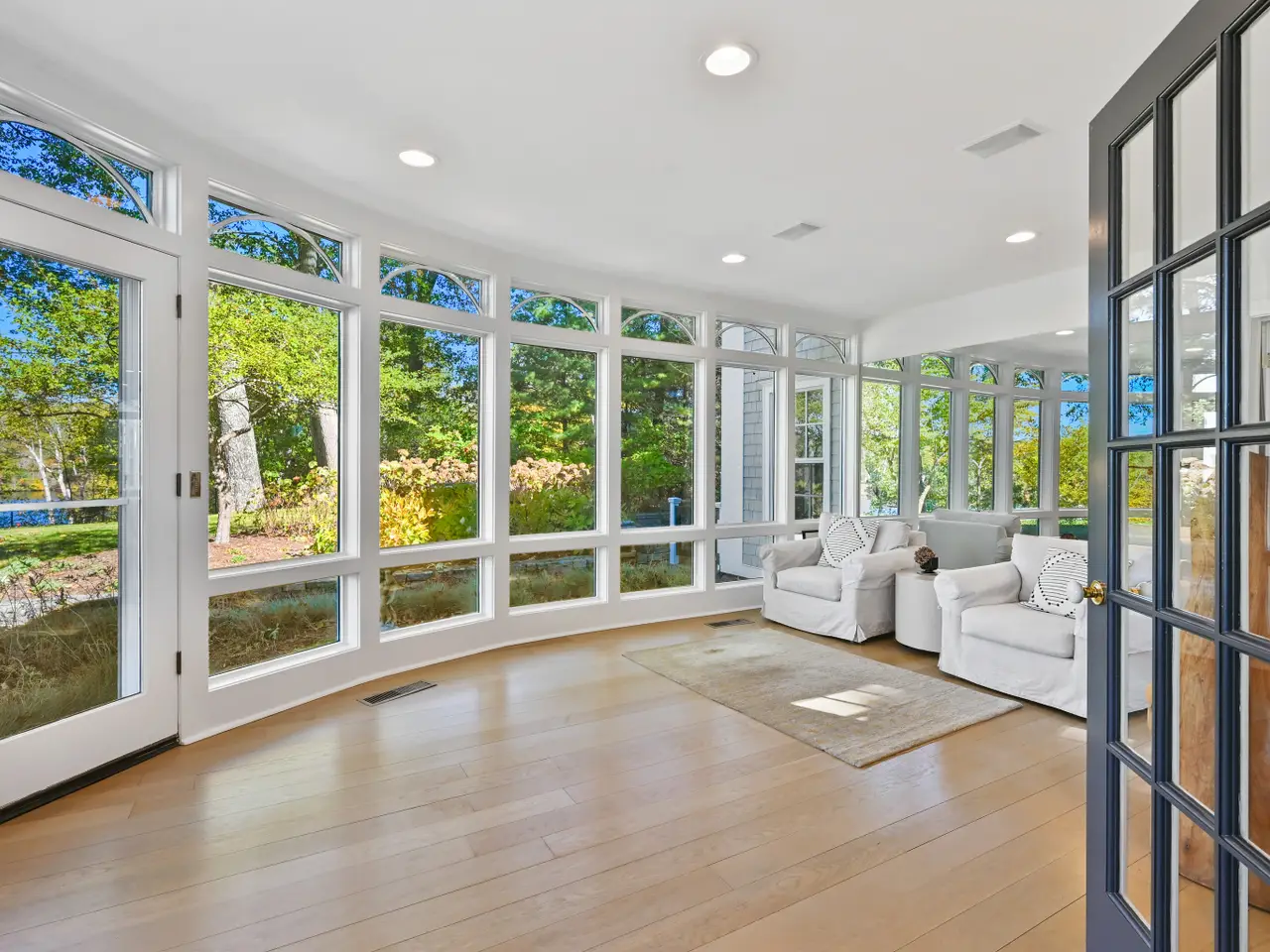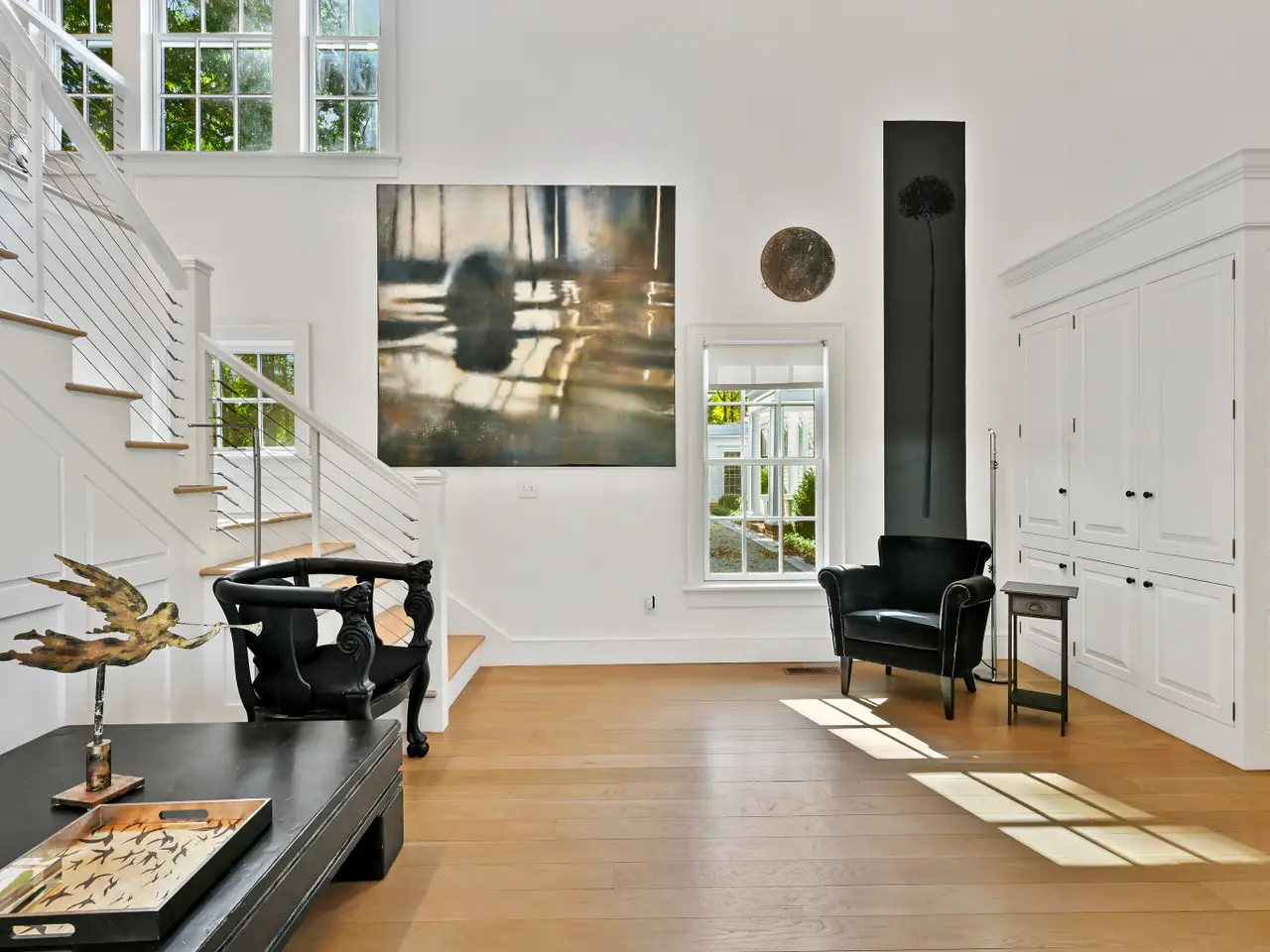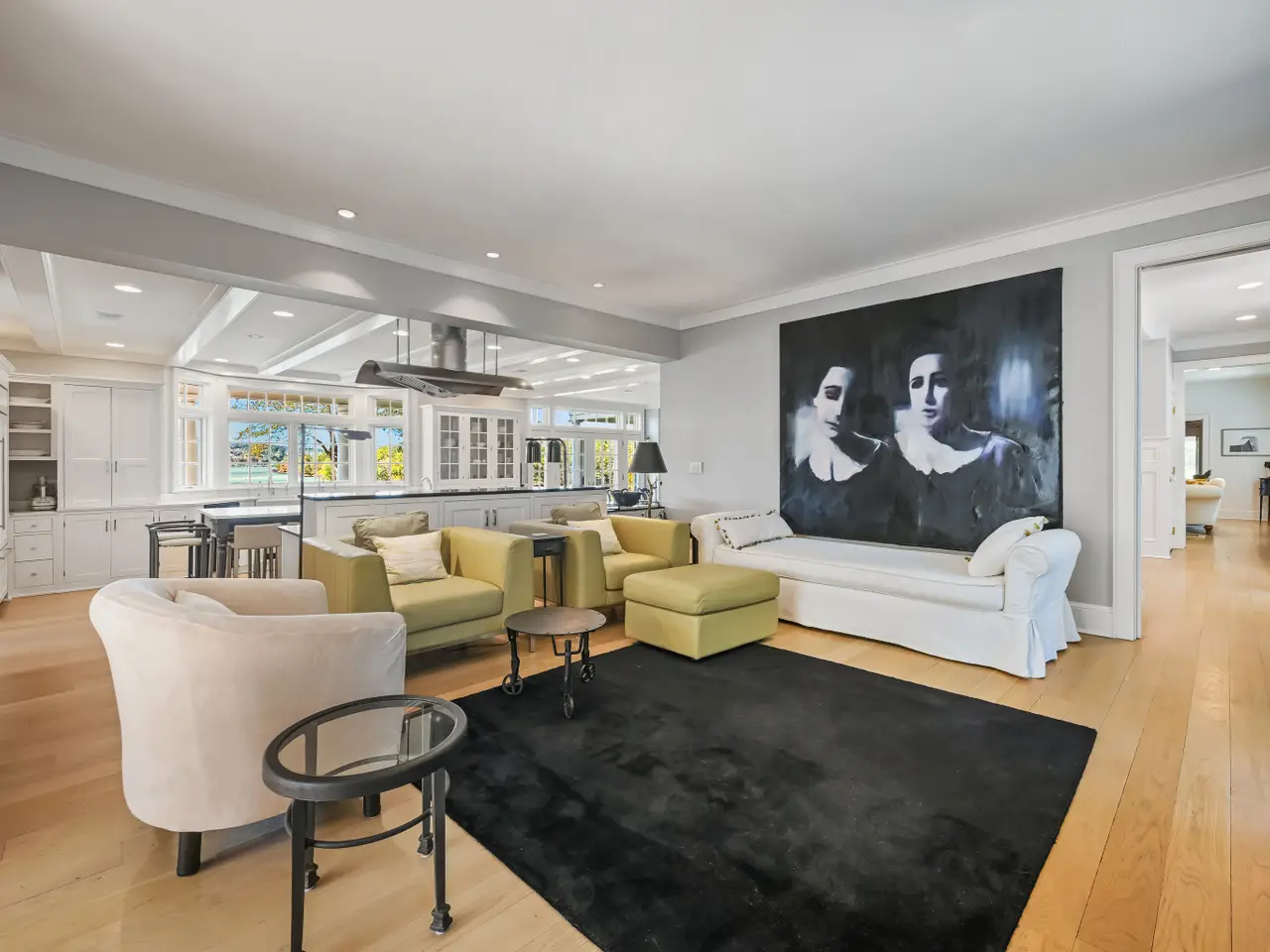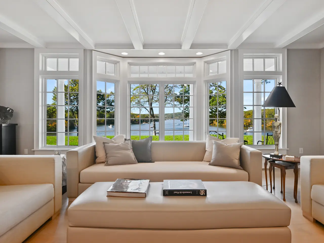 Architect-designed and inspired by Palladio's symmetry and Mount Vernon's timeless colonial grace, the essence of classic balance, symmetry, and luxury. A center-columned portico anchors the perfect proportion between two grand wings, while the interiors reveal artistry at every turn-gleaming wood floors, custom millwork, and walls of windows framing Hamburg Cove's deep-water yacht basin-where sails and yachts drift across shimmering water lusters reflecting a symphony of mystical moorings that capture what is widely considered the most breathtaking panorama on the Cove. Two magnificent semi-rotunda sunrooms at each end bathe the space in natural light, blending formal entertaining and cozy private havens that are elegant yet casual and comfortable. The chef's kitchen features a large center island and commercial-grade appliances. Two primary suites-one on each level. A large guest apartment rests over three of the six garages. The finished lower level includes a gym, billiards, and a kitchen. Landscaped grounds embrace a hardscape-wrapped pool, private expansive lawns, and stone walls-all overlooking a nightly display of fiery sunsets. The property includes one of the deepest private docks in this area-and beyond-with direct access to the Connecticut River and Long Island Sound. This remarkable waterfront residence combines architectural elegance, coastal serenity, and a setting of rare natural beauty-an extraordinary lifestyle between Boston and New York.