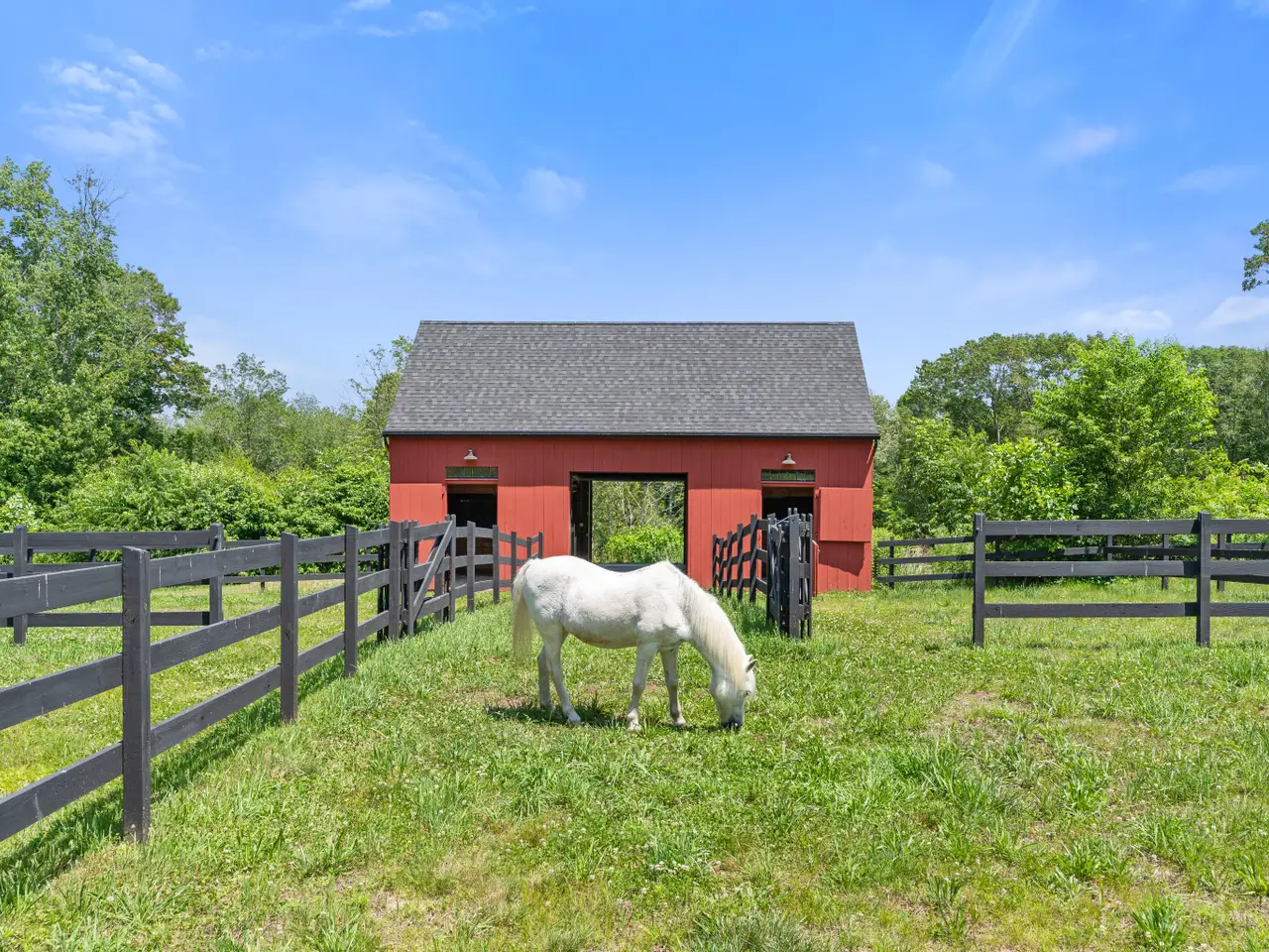 LUXE MODERN FARMHOUSE w/4-STALL BARN on OVER 10 ACRES! Nestled deep within a private enclave of fine homes, this expansive 4-bed, 3.5-bath residence offers over 5,100sf of artfully designed living space. At 31 Birch Hill Road, you don't just live...you exhale. The covered front porch sets the tone for the beautifully coordinated aesthetic that awaits just beyond. A light-filled floor plan is accentuated by 9' ceilings, gorgeous hardwood floors, & elevated millwork. Foyer opens to formal living room flowing into home office w/fireplace. A true chef's dream, the kitchen is anchored by a Viking range, matching hood, & seamlessly integrated SubZero refrigerator door & drawer arrangement. Soapstone countertops pair exquisitely w/custom cabinetry providing high design & practical storage. The oversized island doubles as a prep station w/informal dining counter. The space effortlessly continus into adjoining family room, w/2nd flireplace, & spacious dining area. Walls of windows & French doors offer glimpses of surrounding scenic landscape. Main level continues w/2nd family room/den, half bath, laundry room, & access to attached 3-car garage. Upstairs, the primary bedroom is a peaceful retreat, including lounge room, spacious sleeping area, 2 walk-in closets, & ensuite bathroom w/soaking tub, walk-in shower, & dual vanities. 3 additional bedrooms, w/1 featuring ensuite bathroom access, & another full bath servicing upper level. Adding flexibility for the future, a walk-up attic remains unfinished, yet offers exciting potential for additional living space. Whether envisioned as a studio, guest/in-law suite, or home office, this blank canvas awaits your personal touch. Function meets indulgence outside, where you'll find a pergola-covered brick patio for summer evenings watching fireflies glitter over the treetops. This home is complimented by a picture perfect 22'x36' post and beam barn, complete w/4 stalls opening to fenced paddocks, ideal for equestrian pursuits or as a versatile structure for hobbyists & collectors alike. Nature lovers & outdoor enthusiasts will find immense value in the abuting Johnston Preserve, comprising over 1,700 acres of protected land & extensive River-to-Ridge trail system. Beyond your immediate surroundings, enjoy proximity to numerous lifestyle & community amenities, including Fox Hopyard Country Club, ranked by Golfweek in 2024 as the #4 best golf course in CT, offering members a private pool, tennis/pickleball courts, & casual to fine dining overlooking the hillside landscape. Chester-Hadlyme Ferry, Devils Hopyard Air Field, & Hamburg Cove are just a few further highlights as to why the region continues to draw discerning homeowners seeking a refined rural lifestyle within reach of cultural & commercial hubs. Other notable features include professionally landscaped grounds, irrigation system, whole house generator, home audio system, hardie board siding, to name a few. This residence offers more than just a place to live - it provides a setting for life to unfold. Whether your dreams include space for pets to roam, weekend gatherings under a clear starlit sky, or simply the peace of stepping out your door into serenity without isolation, this property delivers on every level. A special offering not to be missed.
