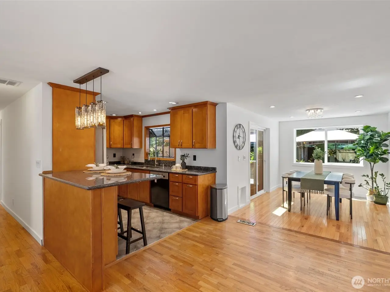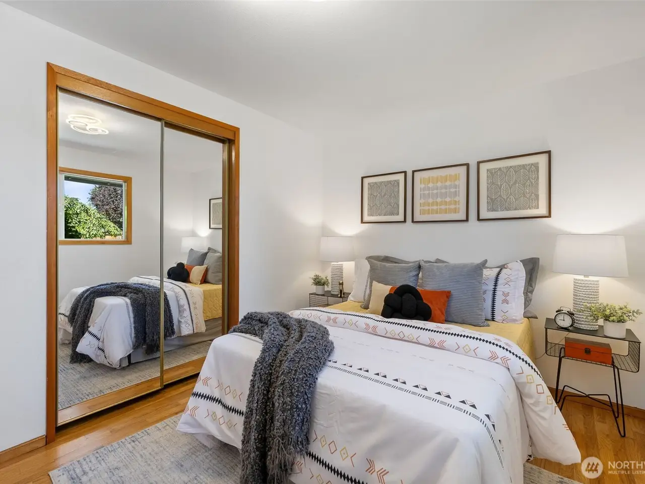 Tucked at the end of a quiet cul-de-sac, this beautifully renovated rambler offers rare flexibility & charm. With 3 bedrooms, 3 full baths, and a full second kitchen, it's perfect for multigenerational living or income potential--rent one side and live in the other! The main home features 2 beds, 2 baths, spacious primary suite has a jetted tub & walk-in closet. Nice updated kitchen. Studio suite is loaded with charm! Steam sauna and bidet in bathroom! New kitchen! Enjoy privacy in the fenced backyard with afternoon shade, an Italian plum tree, covered patio, and shed. Attached garage, heat pump w/AC, & extra space upstairs for an office or storage. Large driveway, over a 1/4 acre lot, potential for a detached ADU. Easy access to I-5 & 405!