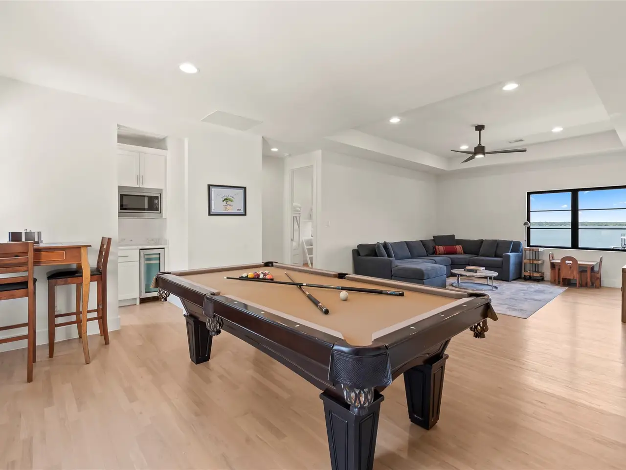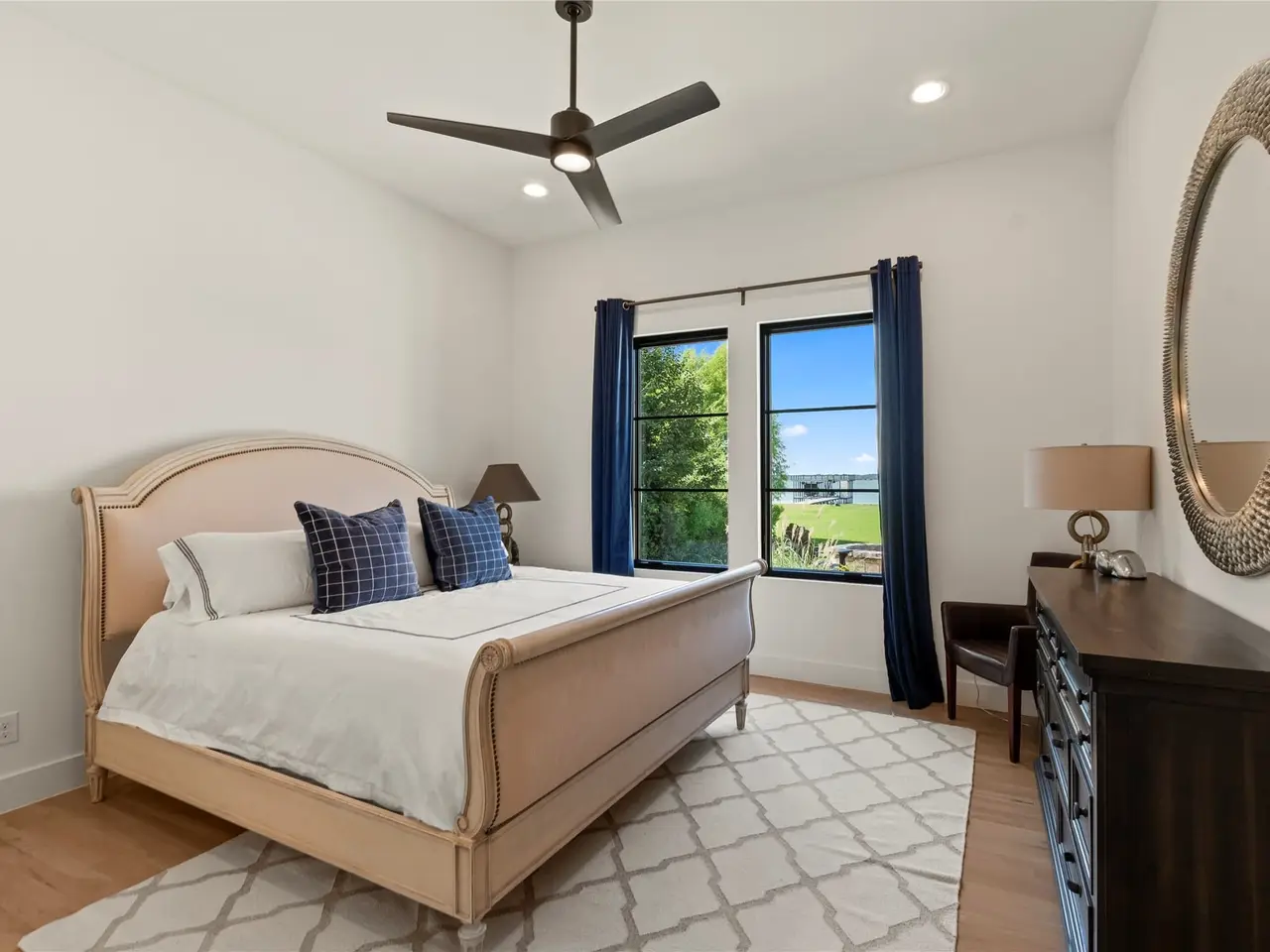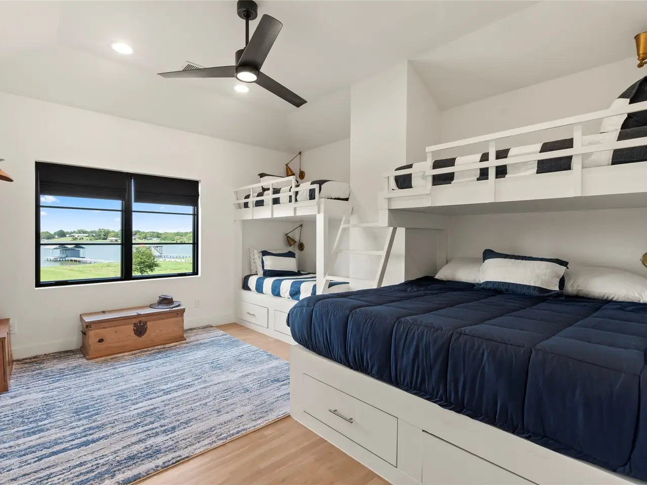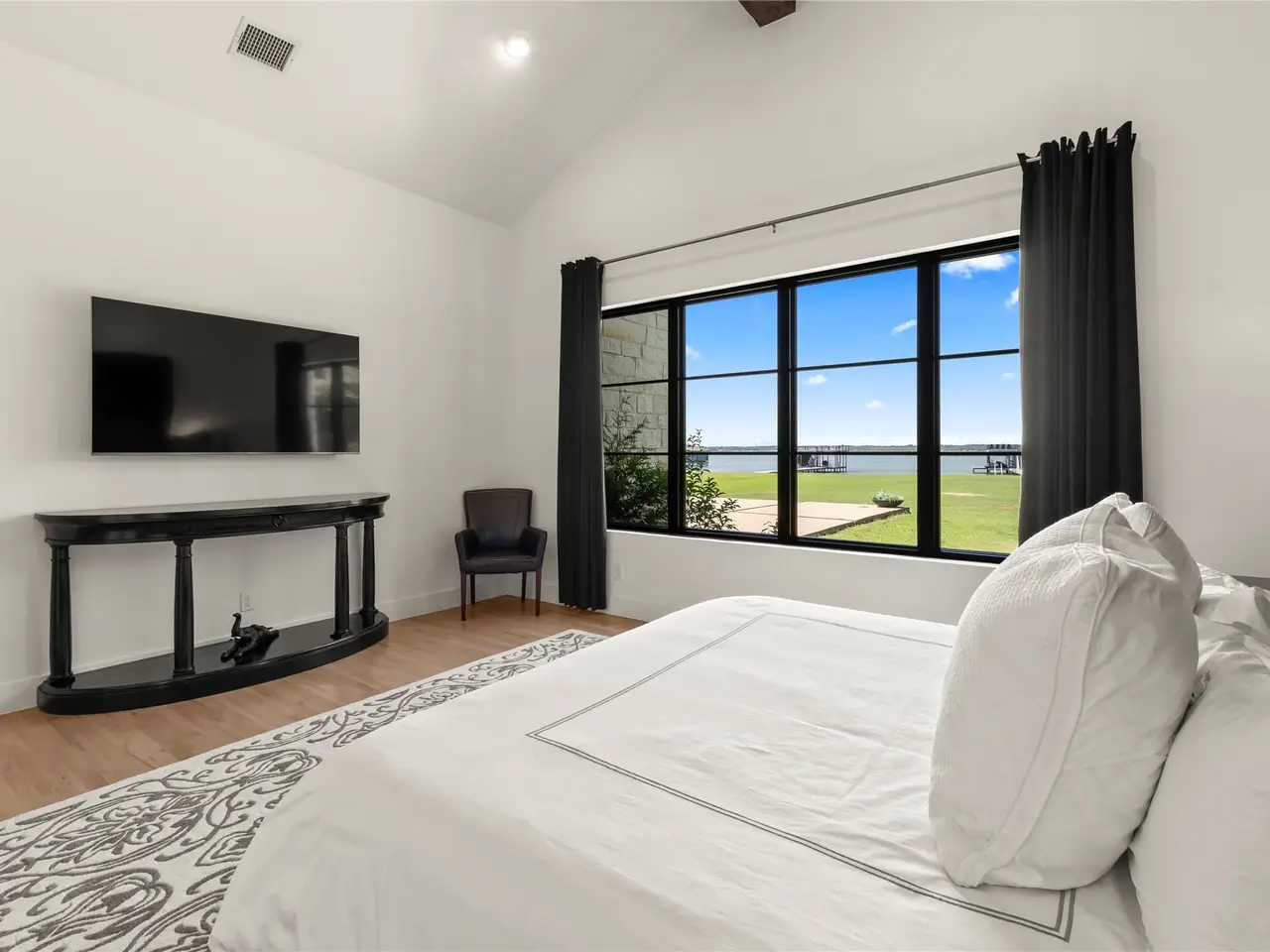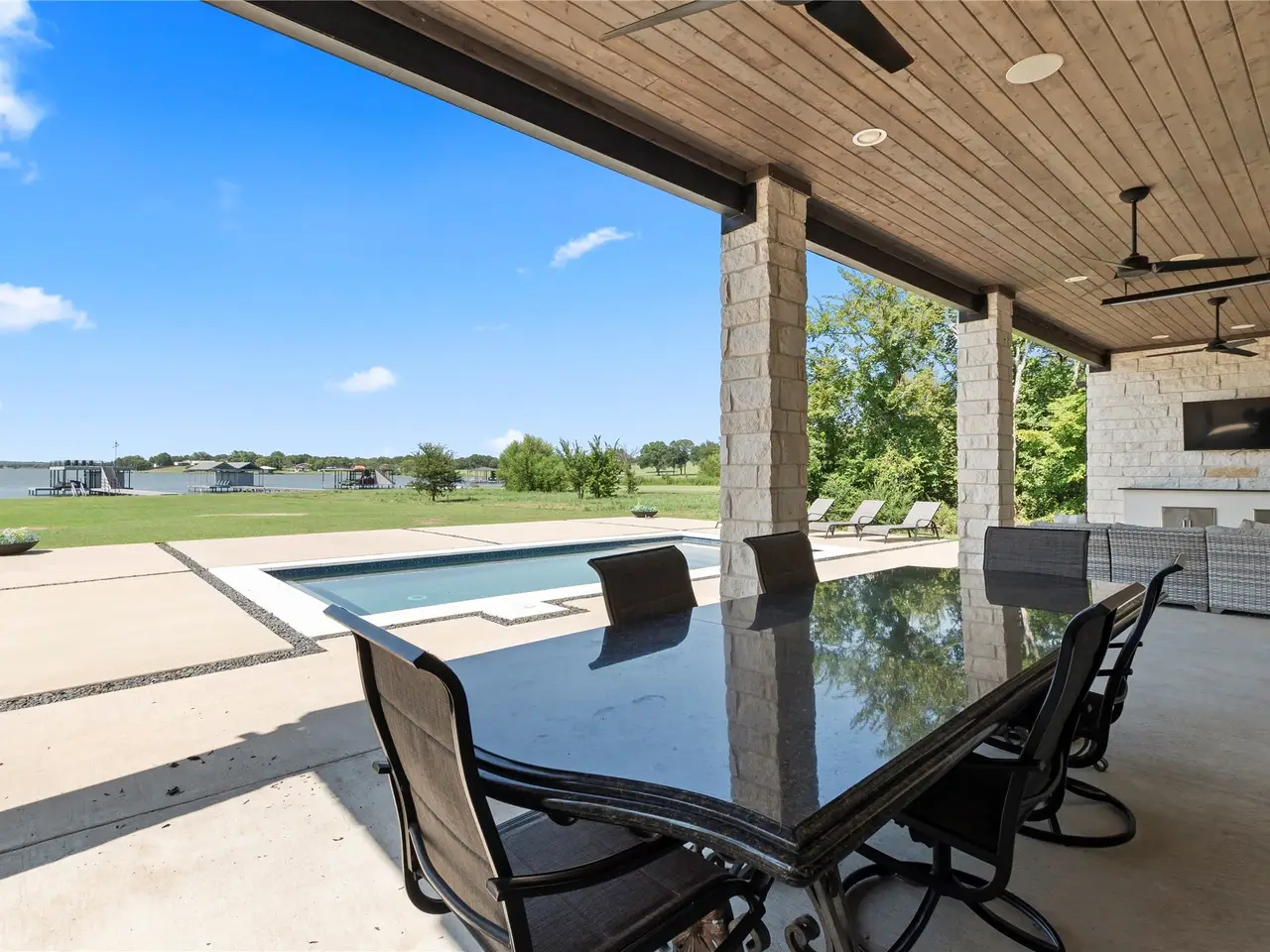 Nestled on 3.46 acres with 131 feet of open waterfront, this extraordinary estate is one of only 6 estate size homesites in the exclusive gated 505 Ranch just 45 minutes from Downtown Dallas. This premier community with 56 waterfront home sites lends lakefront luxury with ranch-style living across 505 pristine acres on the shores of Cedar Creek Lake. A long, wooded driveway leads to a striking modern lake home featuring open-concept great room flooded with natural light through tall windows that frame panoramic water views. A stone fireplace, built-ins, wood floors, and wood-beamed ceilings add warmth and character, while the state-of-the-art kitchen is a chef’s dream, featuring high-end appliances, a gas range, double ovens, and an expansive island with wine fridge and ice maker. The main level hosts two lake-view primary suites with baths along with a spacious utility room and a built-in workspace. Upstairs, the bonus room invites relaxation and entertainment with a large sectional, pool table, and wet bar equipped with a sink, fridge, and microwave. Two custom-designed bunk rooms, both with ensuite baths and water views, provide ample space for guests. Step outside to a large covered patio featuring a mounted TV, ceiling heaters, and a Coyote grill. Stunning pool with both heater and chiller, a stone firepit, and a lush lawn leads to private boathouse with composite decking, covered seating, two jet ski lifts, a boat lift and party deck. Estate size lot owners have option of keeping a horse on the property and the equestrian center. As part of 505 Ranch, residents enjoy exclusive access to over 400 acres of unmatched amenities including an equestrian center, guest cottages, polo field, pickleball courts, skeet range, hiking and ATV trails, stocked fishing ponds, a clubhouse, pool, sandy beach, and full-time ranch staff with concierge services. Whether you’re seeking a serene retreat or an active lifestyle, this rare offering delivers the best of both worlds.