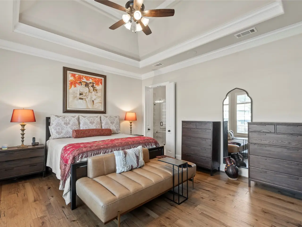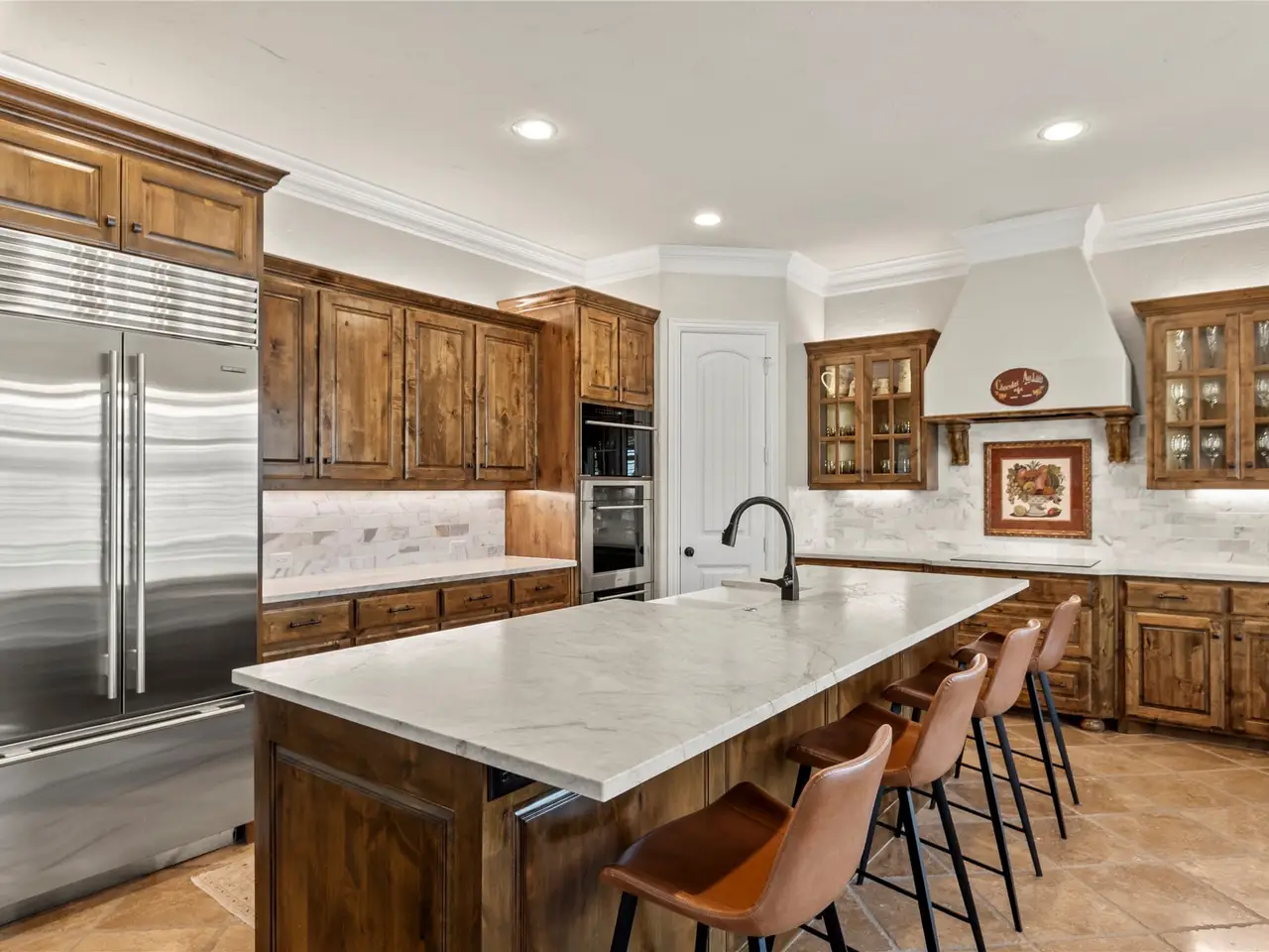 Step inside to lakefront luxury in one of the most sought after communities on Cedar Creek Lake.This property features elegance, charm and well thought out finishes. Built by well known custom homebuilder Whiddon Homes with sophistication in mind. Extensive remodel completed in 2021 boasting leathergranite countertops throughout, plantation shutters, updated bathrooms, Travertine tile, hardwood, andcarpet, Sub-zero refrigerator and wine chiller, Cove dishwasher, Wolf induction cooktop and microwave arejust a few of the high end features. The primary bedroom with a water-view and ensuite bath are downstairswith an additional bedroom and full bath downstairs as well. Upstairs youll find two additional bedroomswith water views and a shared bath, second living area, game room and another large media room with aprojector for entertaining guests --- includes surround sound in living area, master bedroom, patio and theupstairs game room. The large covered composite decked patio offers a serene setting enjoy your morningcoffee or an evening glass of wine. Newly installed boat dock with party deck includes a single slip boat slipand custom lift for personal water craft. Lovely landscaping, new roof, gutters, window screens, dock, deckand freshly stained garage doors all completed in 2024. Generac generator installed in 2021, HVAC unitsreplaced in 2020 with a 10 year warranty on most parts. Oversized 3 car garage is temperature controlledwith a split AC unit, epoxy flooring throughout garage. Dusk to dawn lighting on the front of the home, dockand stairway. Watercraft, golf cart and some furnishings included. Seller to provide list of exclusions.Located in Pinnacle Club a guard gated community with restaurant, swimming pool, tennis, pickle ballcourts, play ground, 19 hole golf course and boat launch.