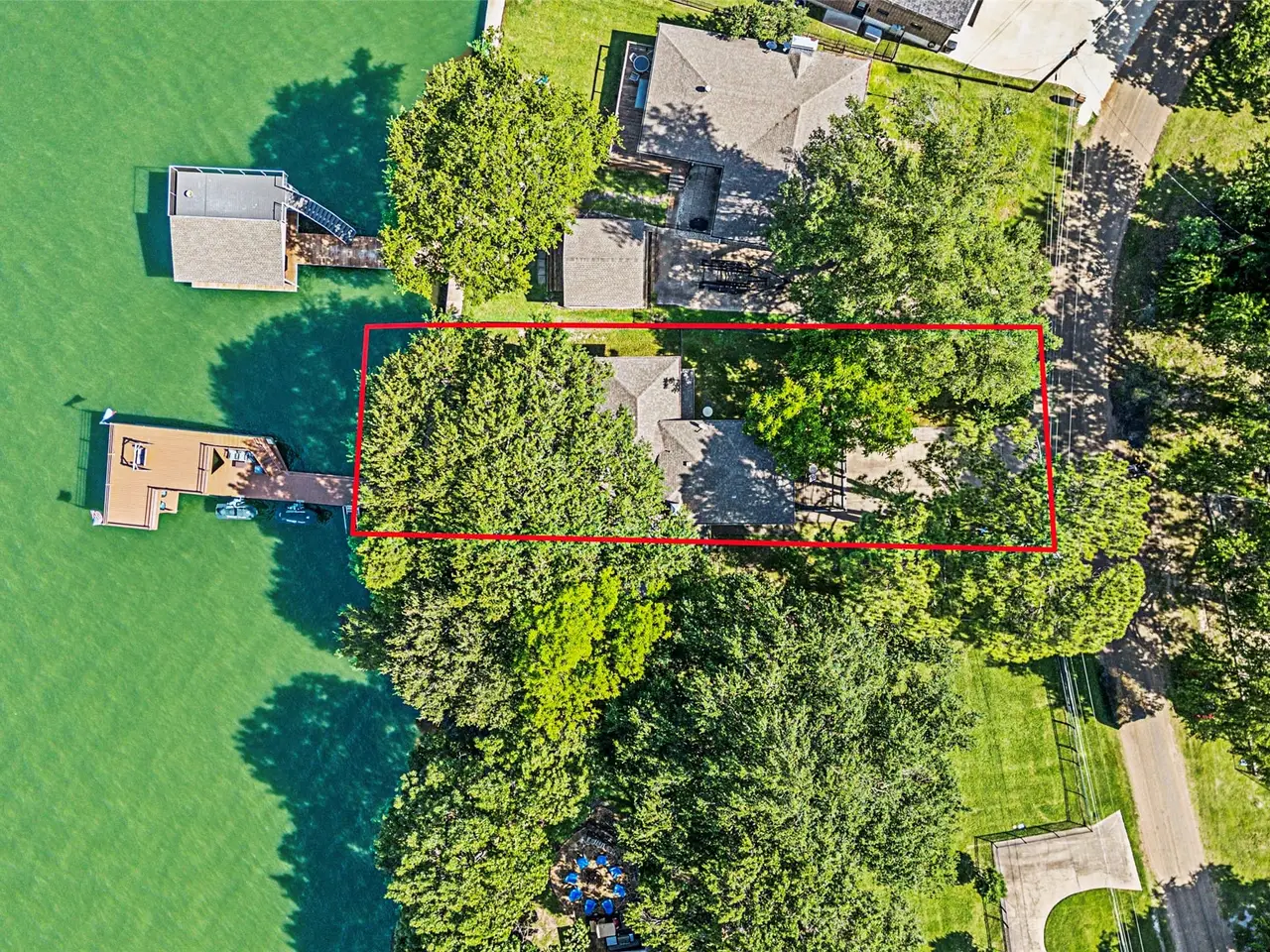 Recently updated dock with upper deck and boat storage area