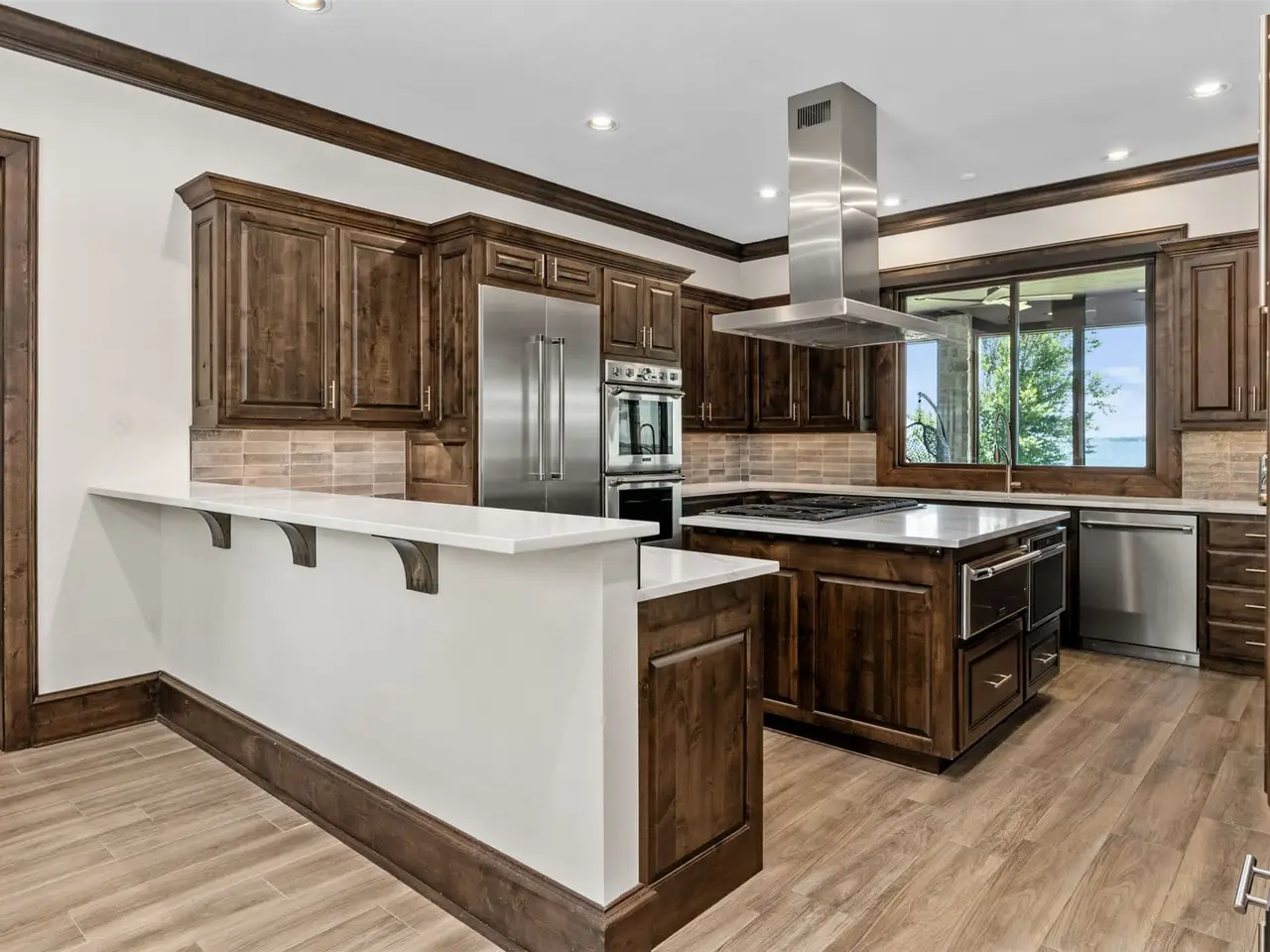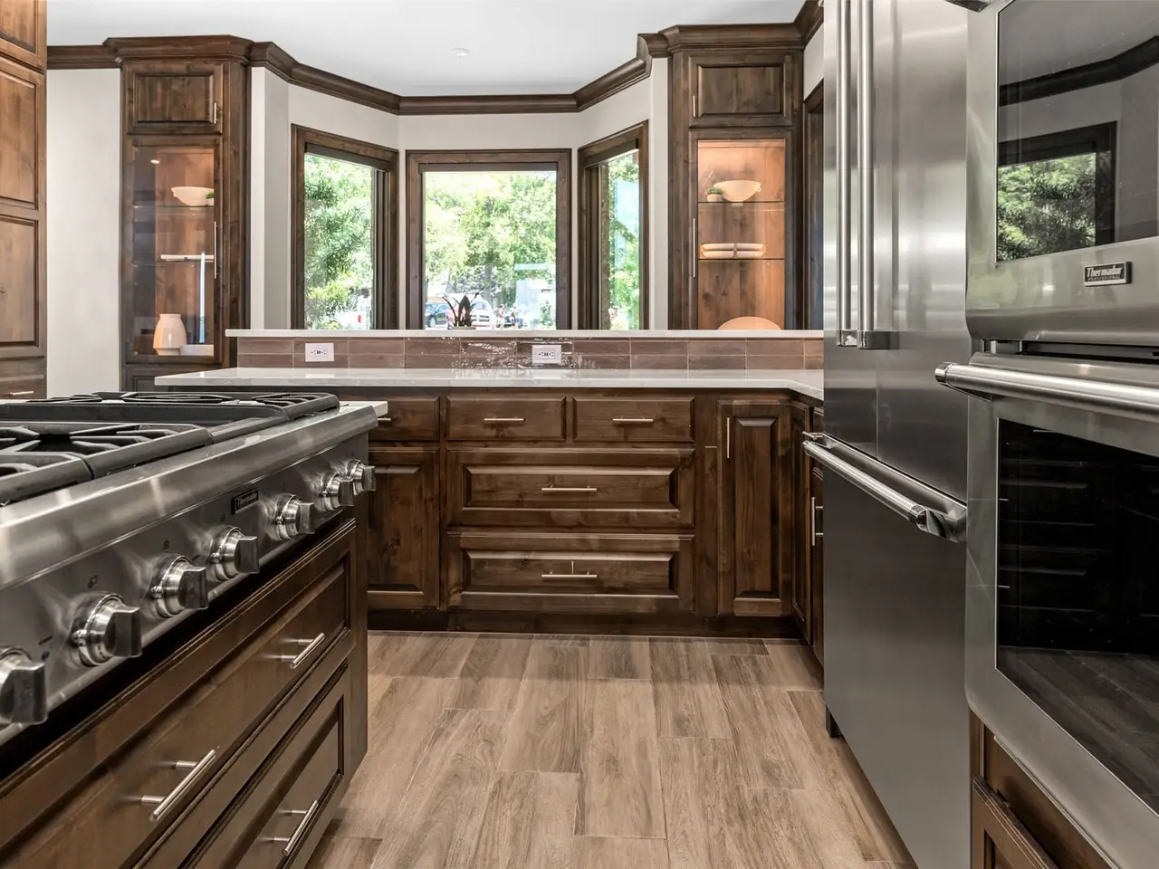 Chef's kitchen with elegant dining