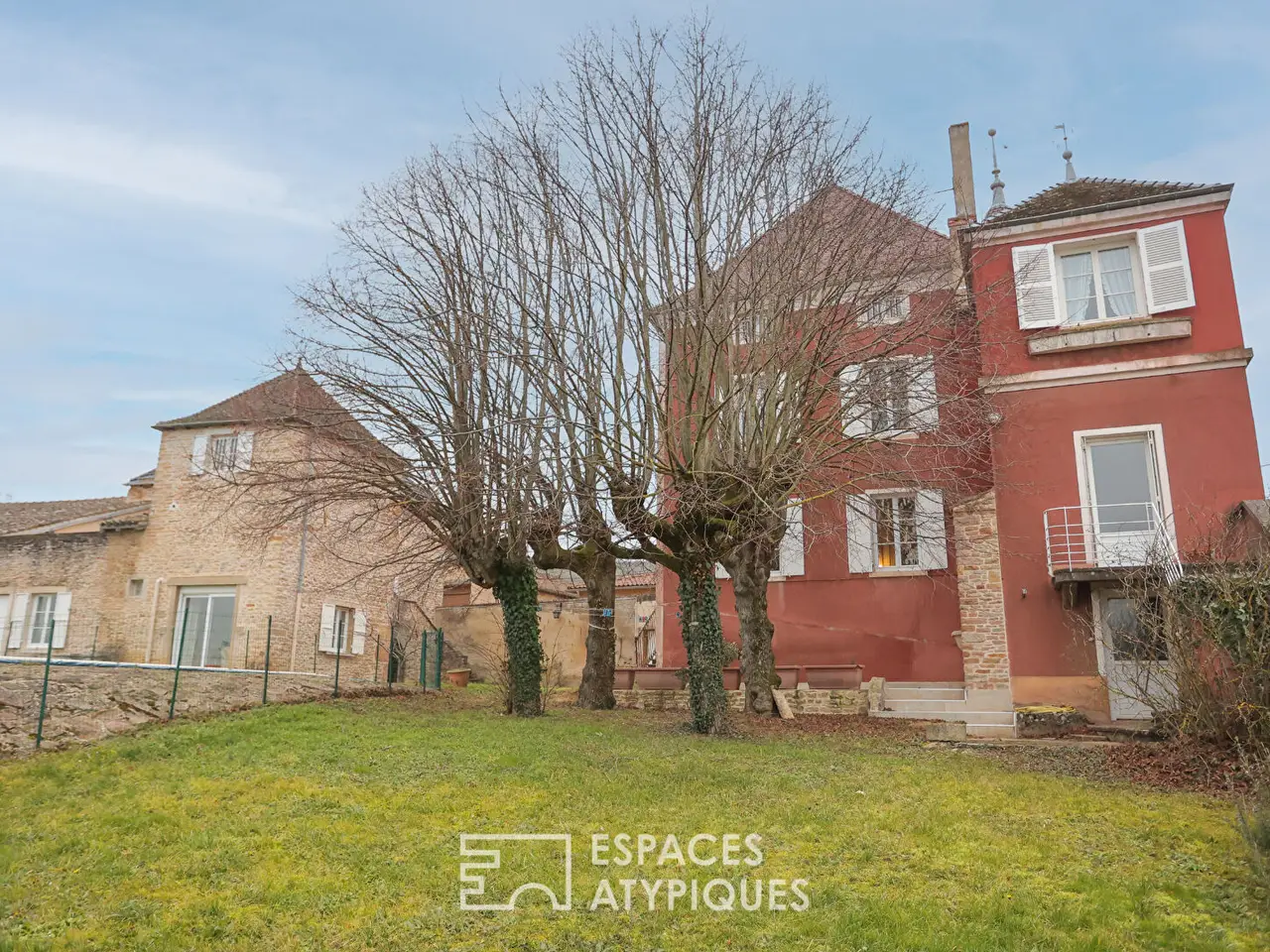 Nestled in an idyllic setting, in the heart of one of the most sought-after towns in the West of Maconnais, this rare real estate property consists of two charming houses offering 437sqm on a plot of 2552sqm with swimming pool.A true haven of peace, combining authenticity and character, this property offering two houses with the typical charm of the region will be ideal for a large family, a guest house project or a family reunion.A first mansion, a family home, consists of an entrance serving a separate living room, a dining room linked to a fitted kitchen, and its exterior access.A period staircase leads to the night area composed of three beautiful and bright bedrooms as well as an office and a bathroom.The third floor offers a games room, two bedrooms, an office and a shower room.A cellar completes this property.The second stone building is of an atypical composition with its volume, its different spaces, its roof terrace and its many development possibilities.On the ground floor, a kitchen-diner and a living room.Upstairs, a bedroom in a tower and its mezzanine. Another access leads to two other bedrooms, a bathroom and a magnificent roof terrace with a clear view allowing you to admire Mont Blanc.Finally on the upper floor, you will discover a huge living room with its fireplace and exposed framework contributing to the charm of the place.A garage, a cellar and a storeroom complete this property.The landscaped grounds, a true cocoon of tranquility, offer an enchanting natural setting, ideal for recharging your batteries throughout the seasons. Between shaded terraces, a wooded garden, swimming pool, and a clear view of the surrounding countryside, a change of scenery is guaranteed.Located a few minutes from amenities, this property benefits from a calm and sought-after environment while remaining close to major communication routes (TGV station, motorway 10 minutes away).Whether for a main residence or an atypical life project, this real estate tenement will appeal to lovers of elegance and authenticity. A rare address to discover without delay!ENERGY CLASS: D / CLIMATE CLASS: D. Average energy prices indexed for the years 2021, 2022, 2023 (subscriptions included): between EUR3,850 and EUR5,250.Information on the risks to which this property is exposed is available on the Georisques website for the areas concerned.Jean-Charles BUATOIS, 06.27.47.49.38. Commercial agent (EI), 911 278 737 RSAC. Bourg en Bresse.REF. 841EBAdditional information* 19 rooms* 10 bedrooms* 2 bathrooms* 3 shower rooms* 2 floors in the building* Outdoor space : 2552 SQM* Property tax : 2 428 €Energy Performance CertificateEPC : 211 kWhEP/m2.year* A 450GHG : 31 kgeqCO2/m2.year* A 80Agency feesThe fees include VAT and are payable by the vendorMediatorMediation Franchise-Consommateurswww.mediation-franchise.com29 Boulevard de Courcelles 75008 ParisInformation on the risks to which this property is exposed is available on the Geohazards website : www.georisques.gouv.fr