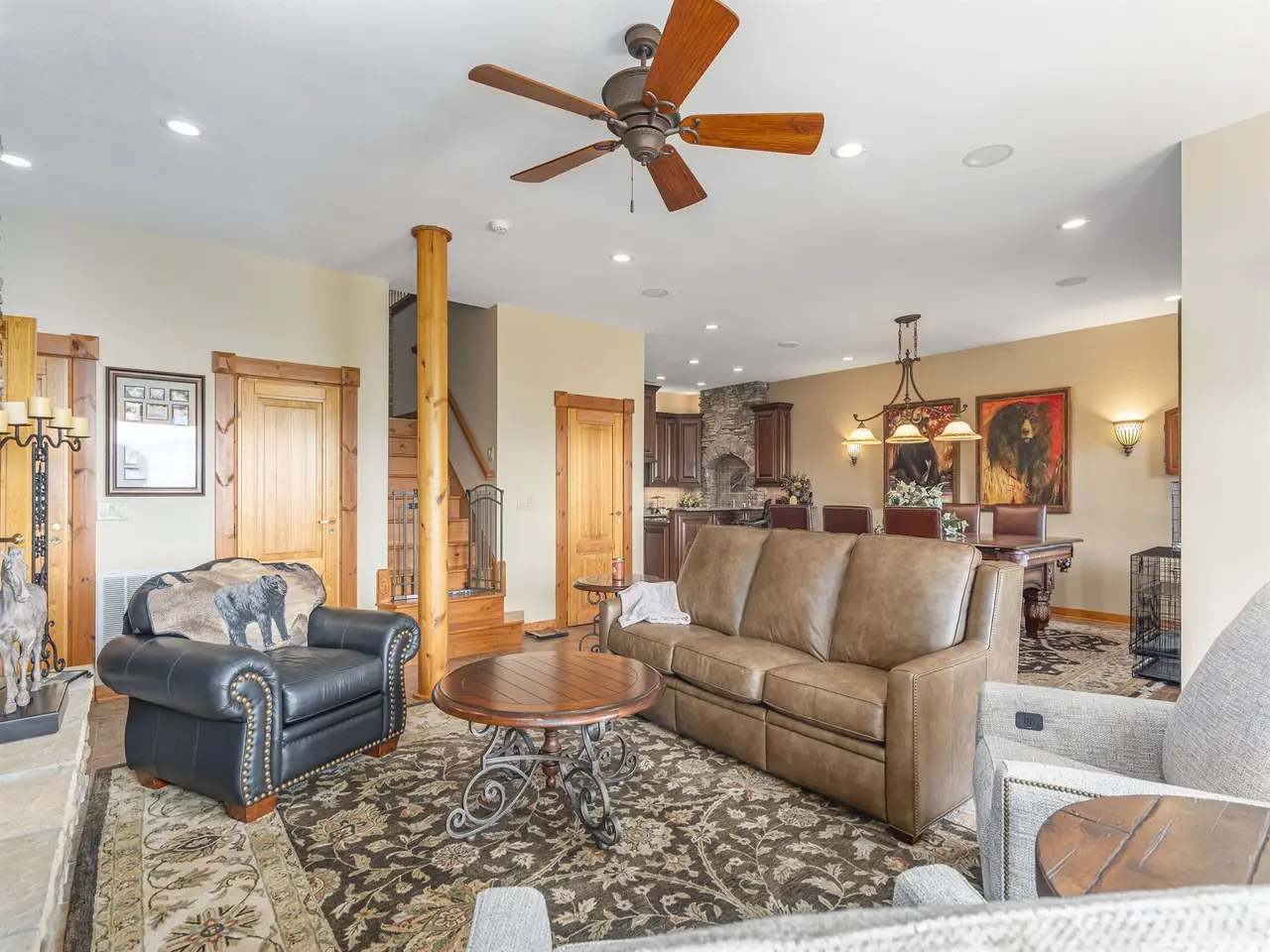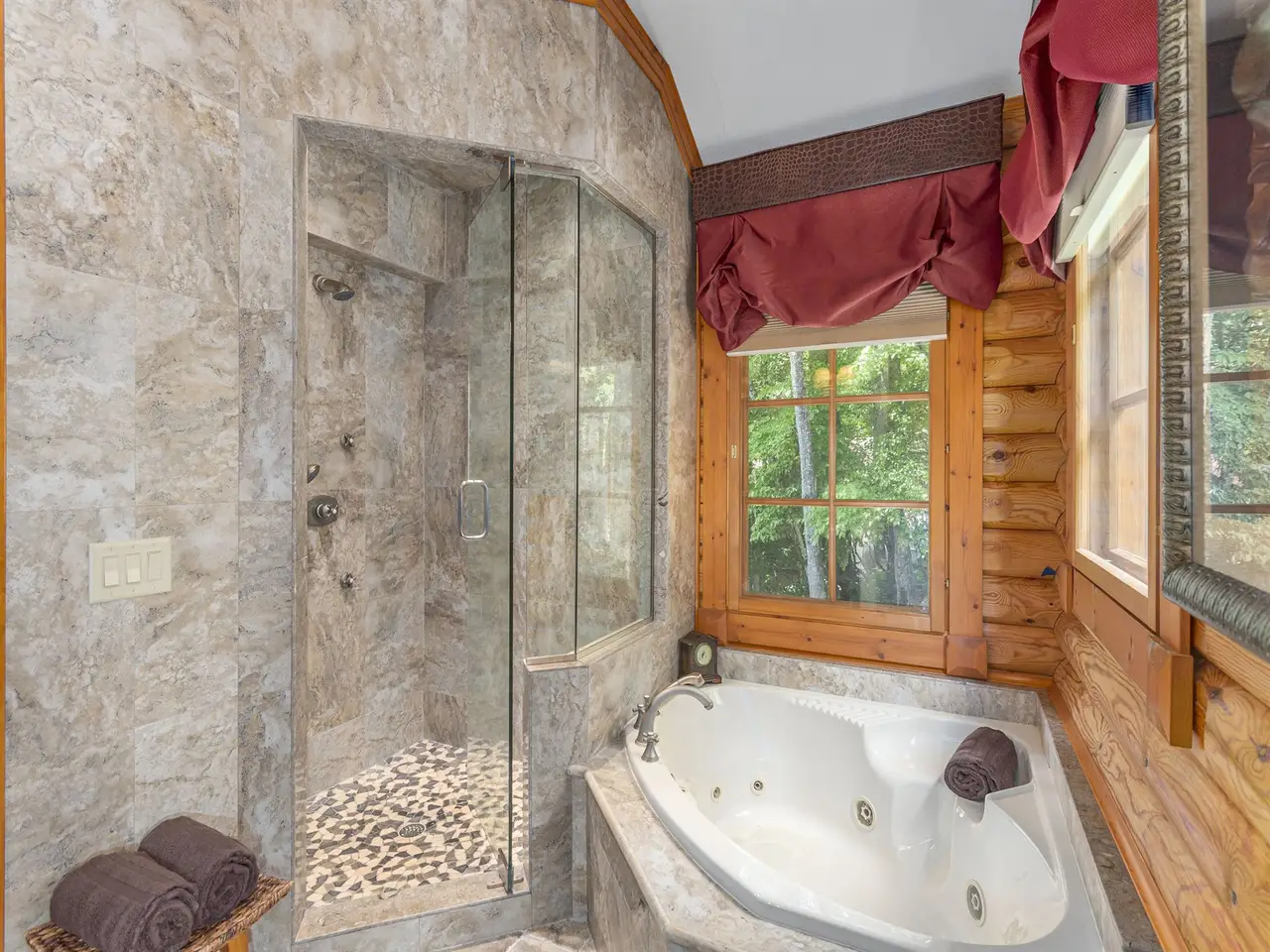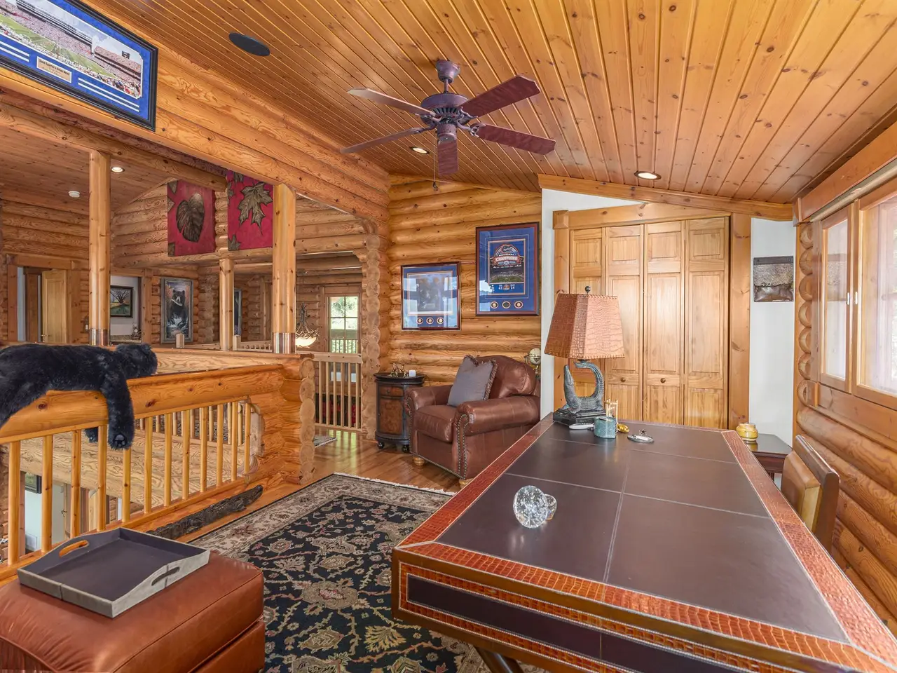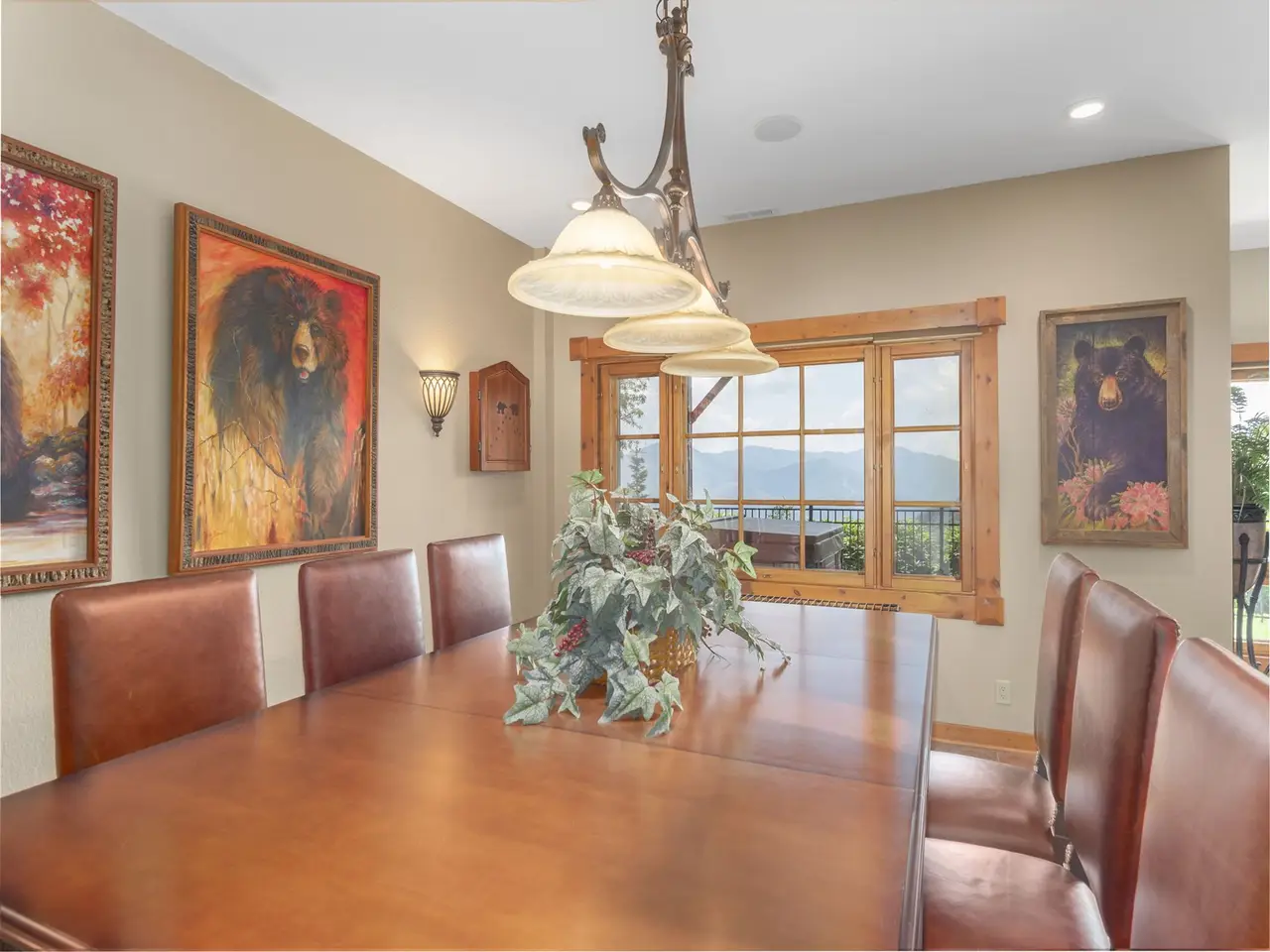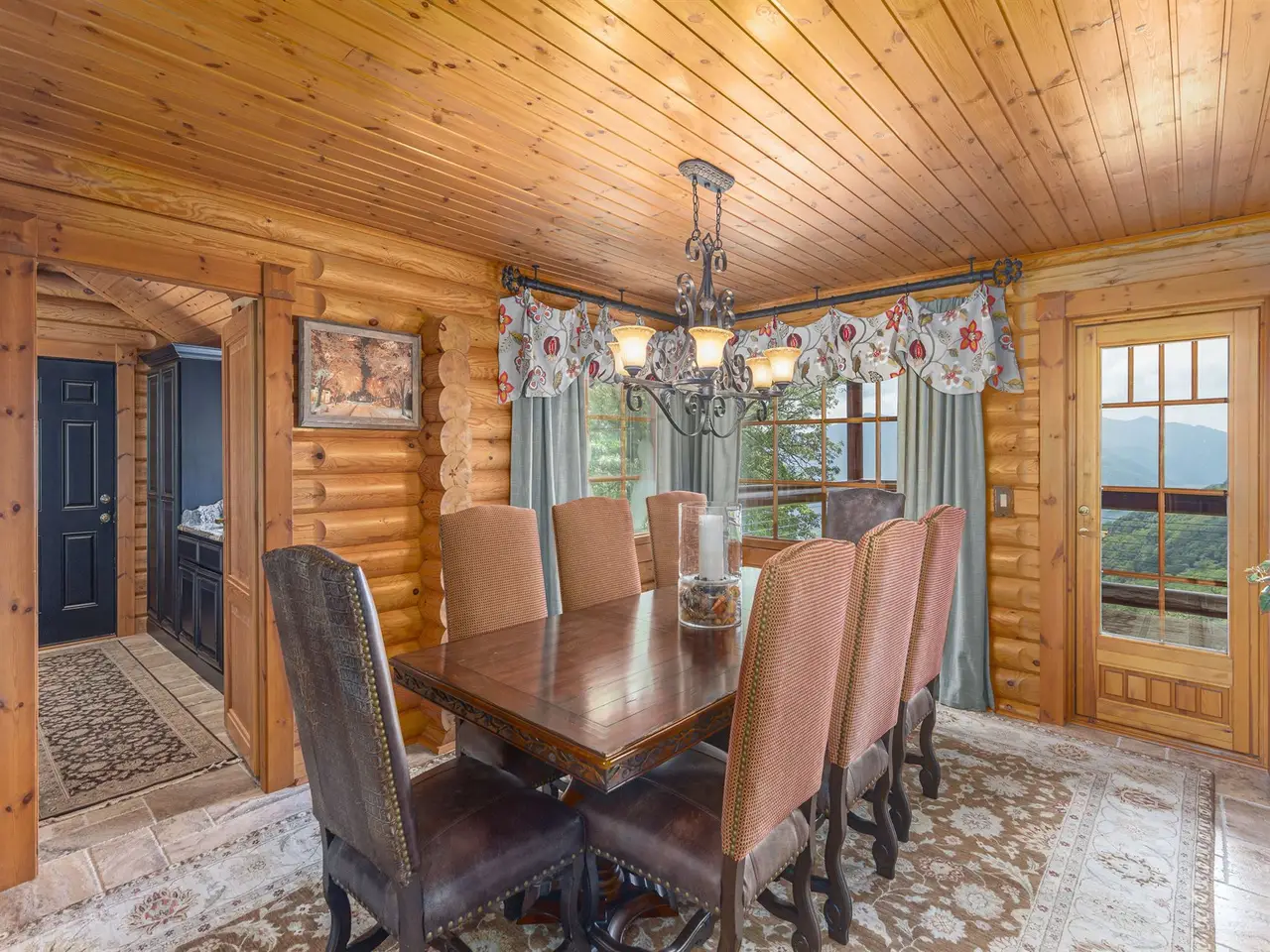 Discover this breathtaking Honka log home of Scandinavian design & precision nestled atop Maggie Valley in gated Laurel Heights. At 4800' elevation, enjoy cool temps and unparalleled long-range views from countless windows. Each of the three luxurious primary suites is a private retreat, boasting spacious rooms, walk-in closets and showers, and garden tubs for ultimate relaxation. For the culinary enthusiast, the main level chef's kitchen is seamlessly connected to the great room, which features a towering wall of windows framing magnificent south-facing views. Downstairs you'll find a second full kitchen, dining area, den, and a sprawling primary suite. The rec room/den is a great secondary entertaining space for gatherings. While mountain living fosters relaxation, the versatile upstairs loft serves as an ideal home office (or a spacious fourth sleeping room). Outside, the curated grounds are filled with exceptional, usable spaces to revel in the fresh mountain air.