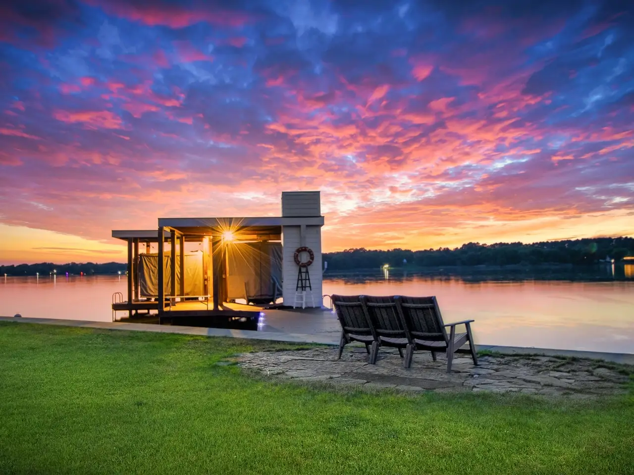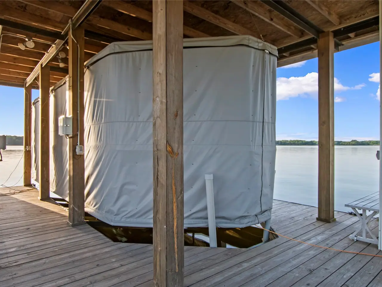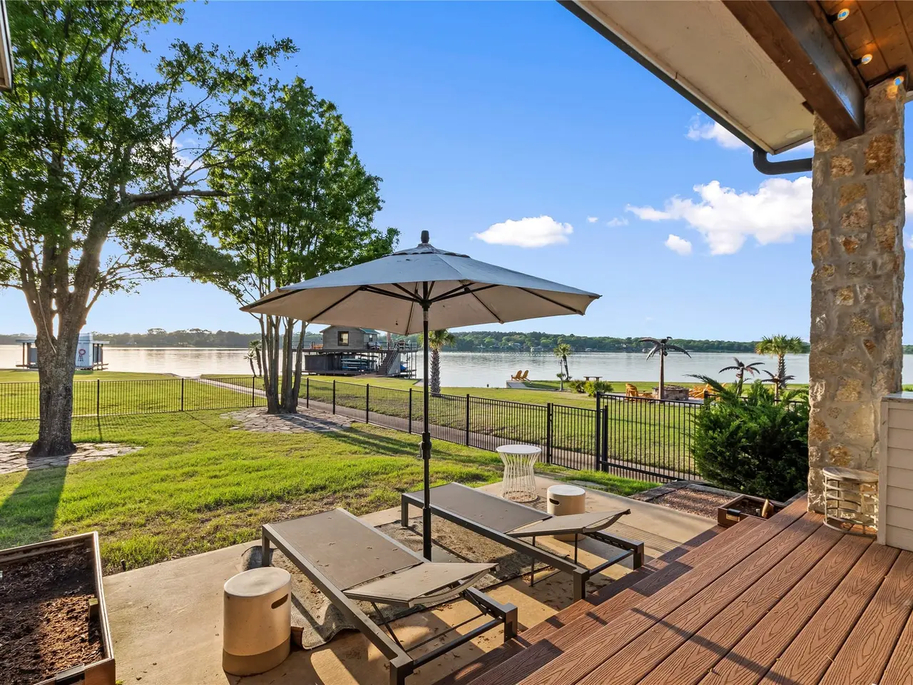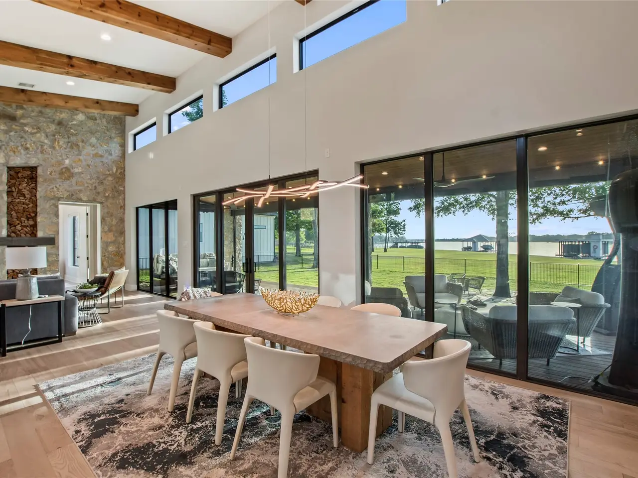 Welcome to your dream lakefront escape in The Bluffs, a prestigious gated community on Cedar Creek Lake. Situated on a beautifully landscaped acre lot, this modern retreat blends natural materials like stone, wood, and iron to create an inviting, luxurious atmosphere. Inside, the home is bathed in natural light thanks to soaring wood beamed ceilings and a dramatic wall of windows framing picturesque lake views. The chefs kitchen is a true showstopper, featuring a professional Thermador propane gas range, island seating, farmhouse sink, built-in ice maker, and a striking glass door wine cellar, perfect for entertaining. Genuine hardwood floors flow throughout, leading to a first floor lakeside primary suite with wood beam ceilings and spa like ensuite bath offering dual vanities, a walk in shower, and a relaxing soaker tub. Three more additional guest bedrooms, two with built in bunk beds for added flexibility. Outdoor living is just as impressive, with multiple entertainment areas designed for true lake life. A large covered composite deck with automatic screens provides the ideal setting to enjoy the view, mosquito free. The wrought iron fenced yard is perfect for kids and pets, while the private boathouse includes automatic lifts and covers for both a boat and personal watercraft, making lake access effortless. Residents of The Bluffs enjoy a waterside clubhouse, community firepit, and picnic areas. Located in a prime spot on the lake once home to a waterski school, this area is beloved for its smooth waters, fishing, and recreational fun. Sold furnished with a few exclusions. Watercraft available separately. Additional boat slip in community marina available for $55,000.00.