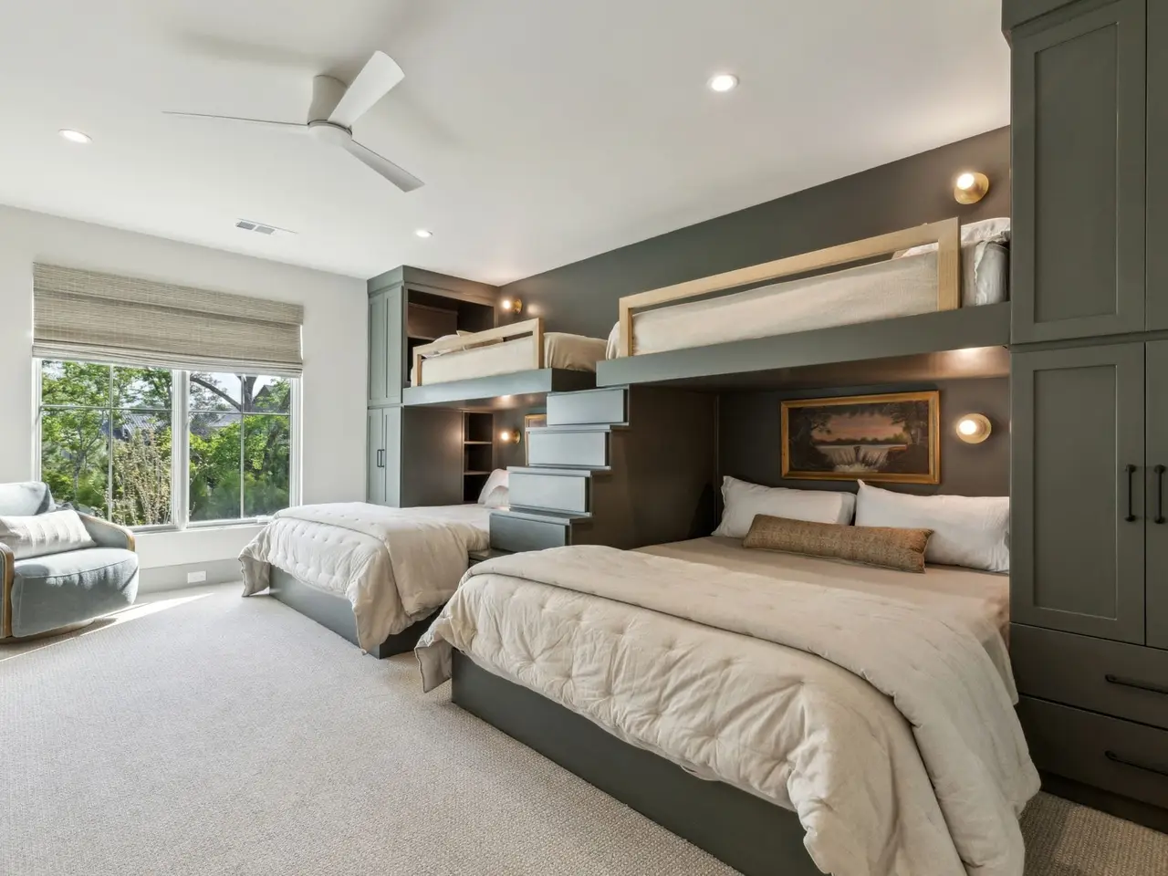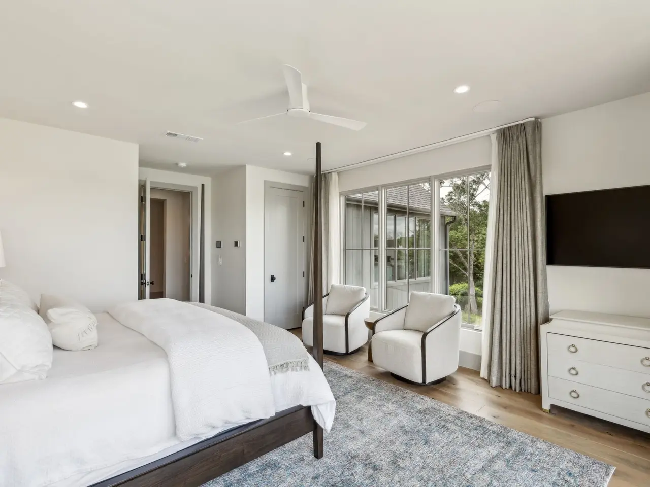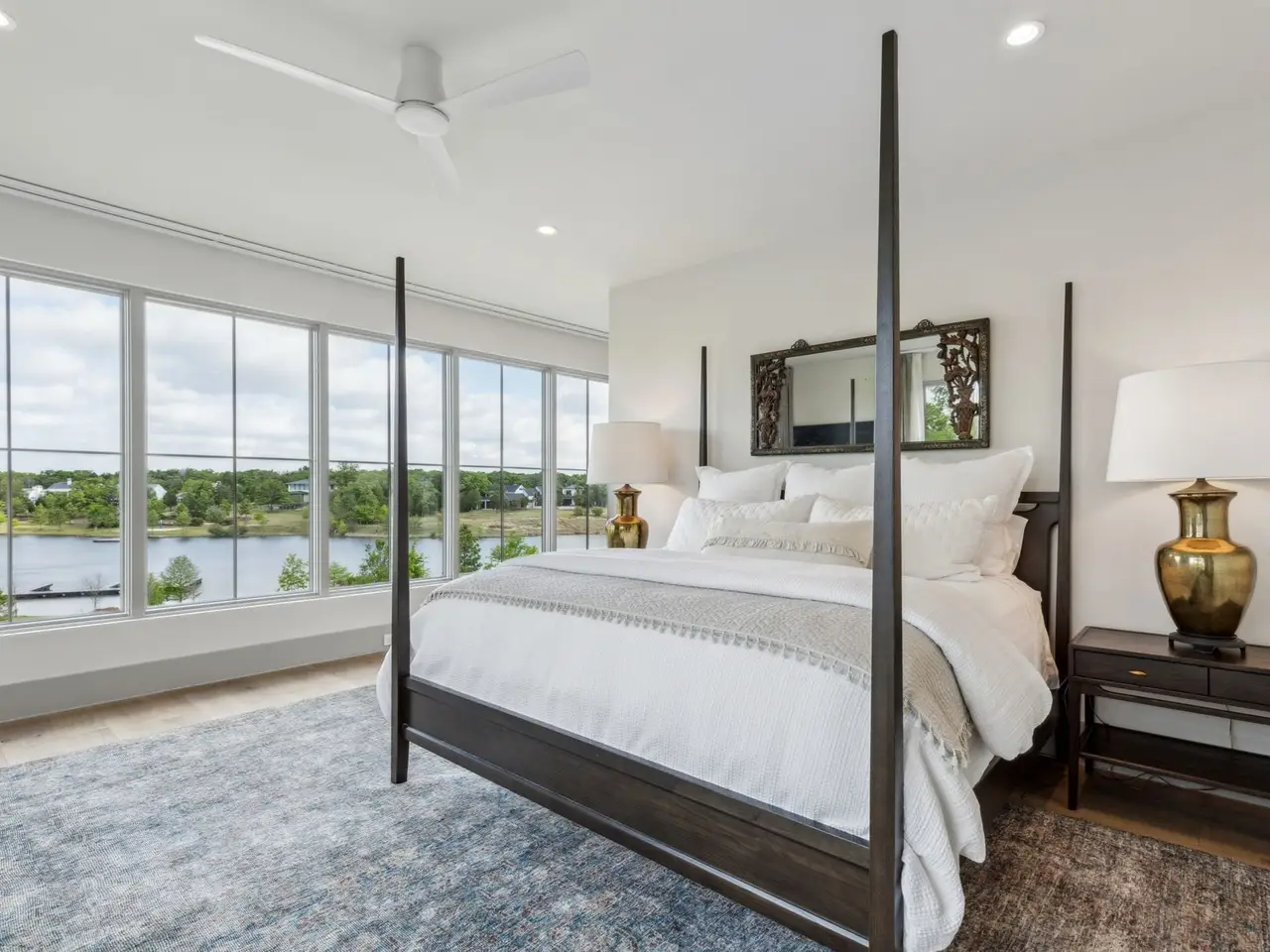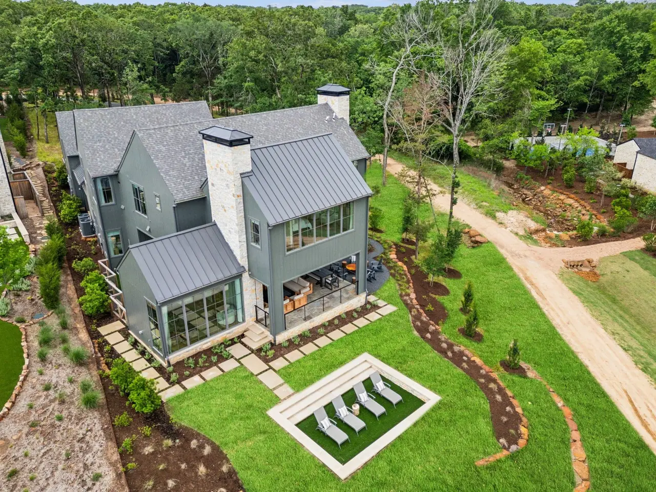 Tucked beneath a canopy of trees on a premium oversized lakefront lot in Long Cove, 13160 Woodsy Way blends luxury, comfort, and privacy in a beautifully designed retreat. With over 4800 square feet, plus additional bonus space above the garage, this custom oasis offers stunning lake views and direct access to the shoreline trail, perfect for long walks or golf cart rides. The open-concept layout connects expansive indoor and outdoor living spaces. A premium sound system runs throughout the home, including the large upstairs game room and covered outdoor porch with motorized screens, outdoor wood-burning fireplace, and built-in patio heaters, perfect for year-round entertaining. Gather around the outdoor fire pit or soak in the views from the sunning deck, all framed by a professionally designed landscape. Inside, the chef's kitchen features Taj Mahal quartzite countertops, premium appliances, custom cabinetry, a spacious walk-in pantry, and a large island ideal for entertaining. A marble-clad primary bathroom, Providence Lane custom drapery and window shades, Visual Comfort lighting, and a two-office setup, including one with incredible lake views, elevate the lifestyle even further. Each of the additional four large bedrooms features its own en-suite bathroom, with one bedroom designed as a bunk room accommodating two California King beds and two twin beds. Practical elegance continues with a spacious mudroom, custom cubbies, and herringbone brick flooring. An outdoor breezeway is designed to hold two golf carts and connects the home to a two-car garage and carport, and turfed dog yard for furry friends. Peace of mind comes built-in with full exterior video monitoring, lightning rods, a whole-house water filtration system, and a backup generator. Whether you're looking for the perfect weekend escape or a forever home, 13160 Woodsy Way delivers resort-style living in a private, wooded setting just steps from the lake.
